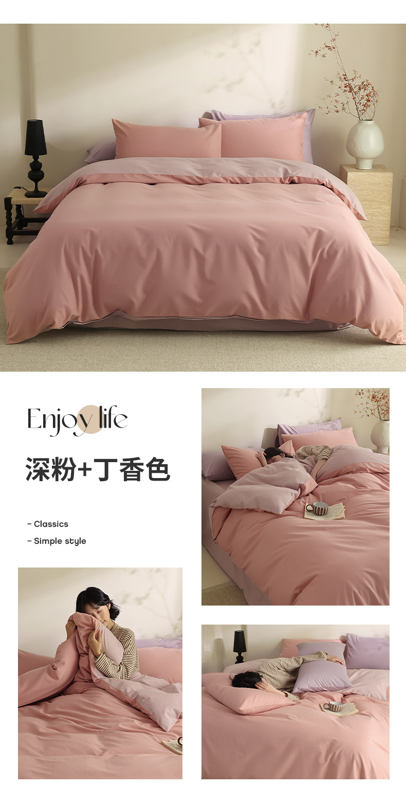 轩和家居 2024新款50S长绒棉磨毛单被套 深粉+丁香色