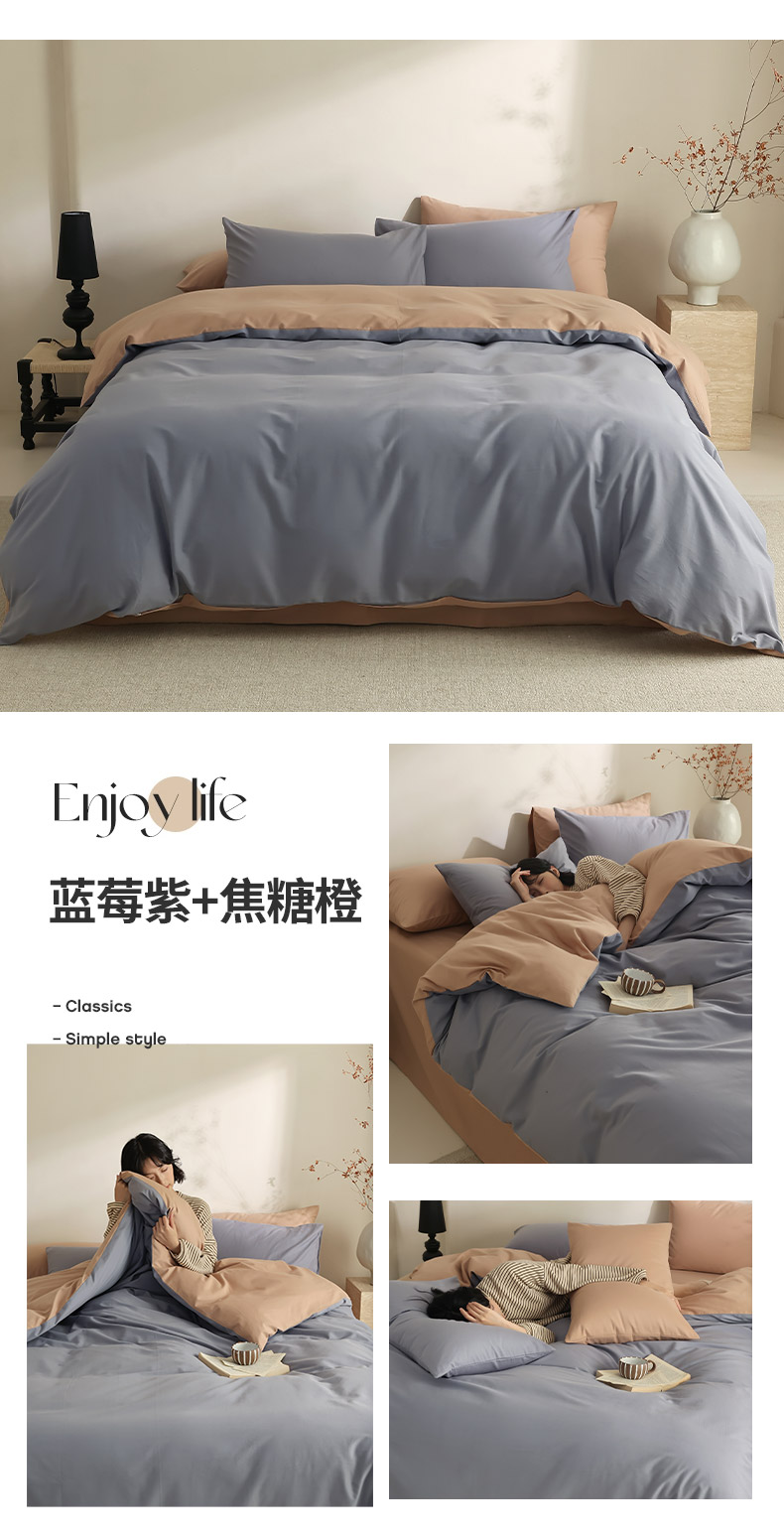 商品名称:轩和家居 2024新款50S长绒棉磨毛单被套 蓝莓紫+焦糖橙