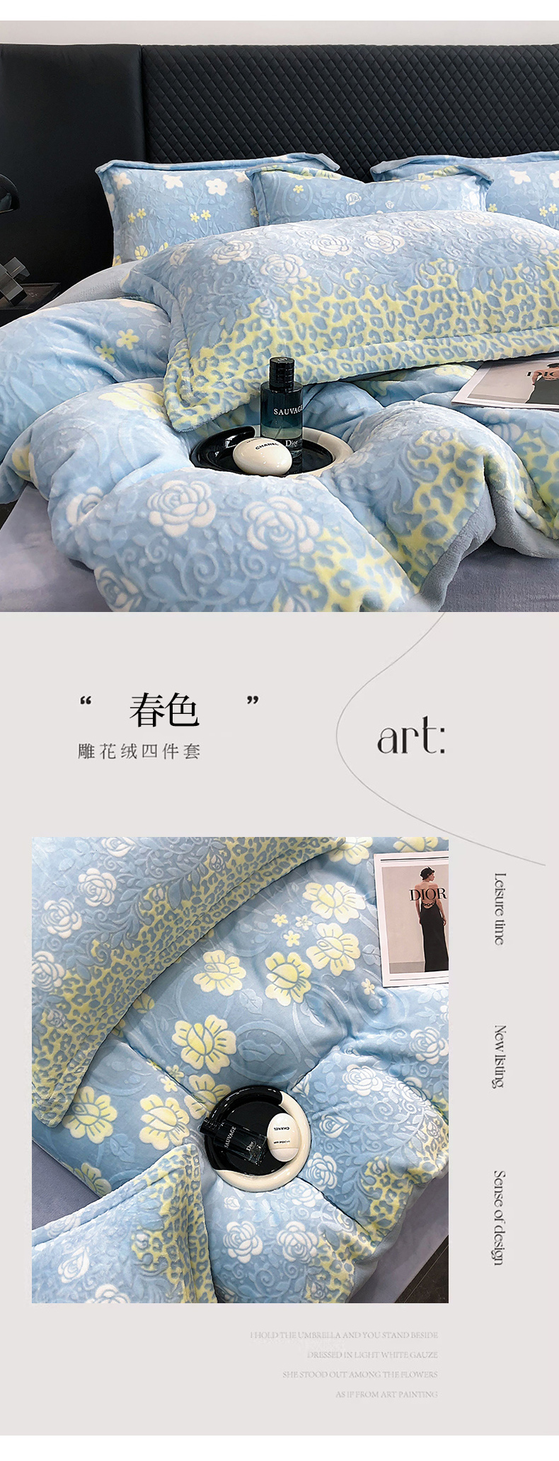 金喜 2024新款加厚保暖230克高克重牛奶绒四件套雕花绒四件套-牛奶绒雕花系列 春色