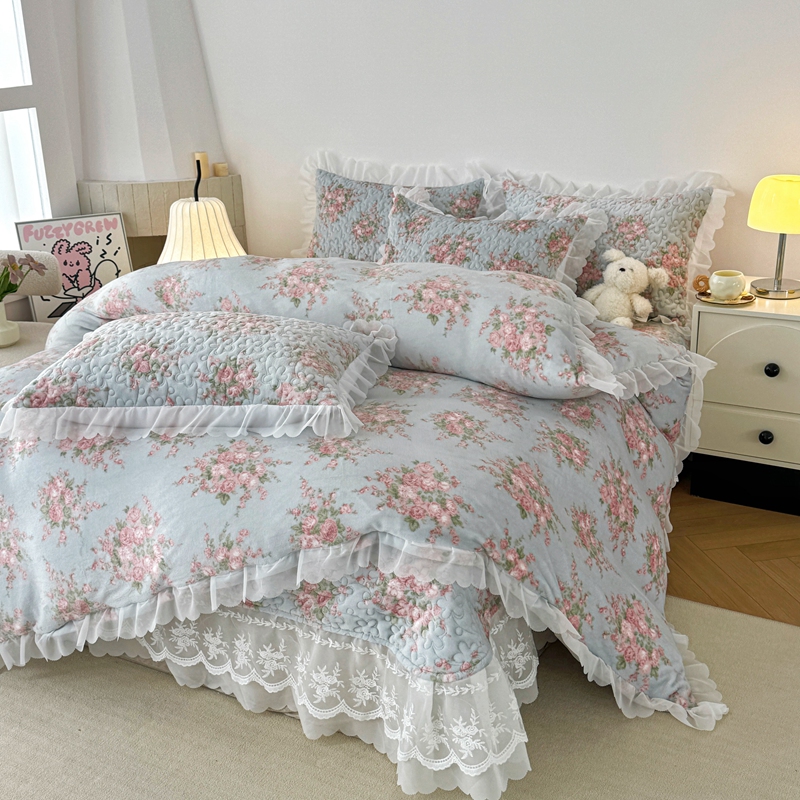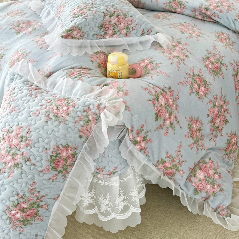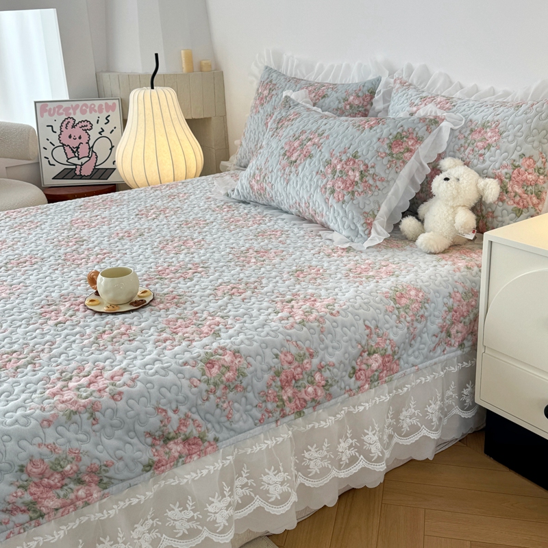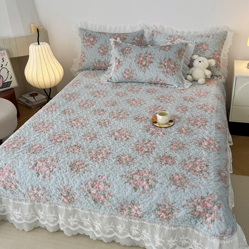 添越 2024小清新韩版蕾丝款花边纯棉夹棉床盖三件套全棉爱意时光蕾丝款,爱意时光蕾丝款