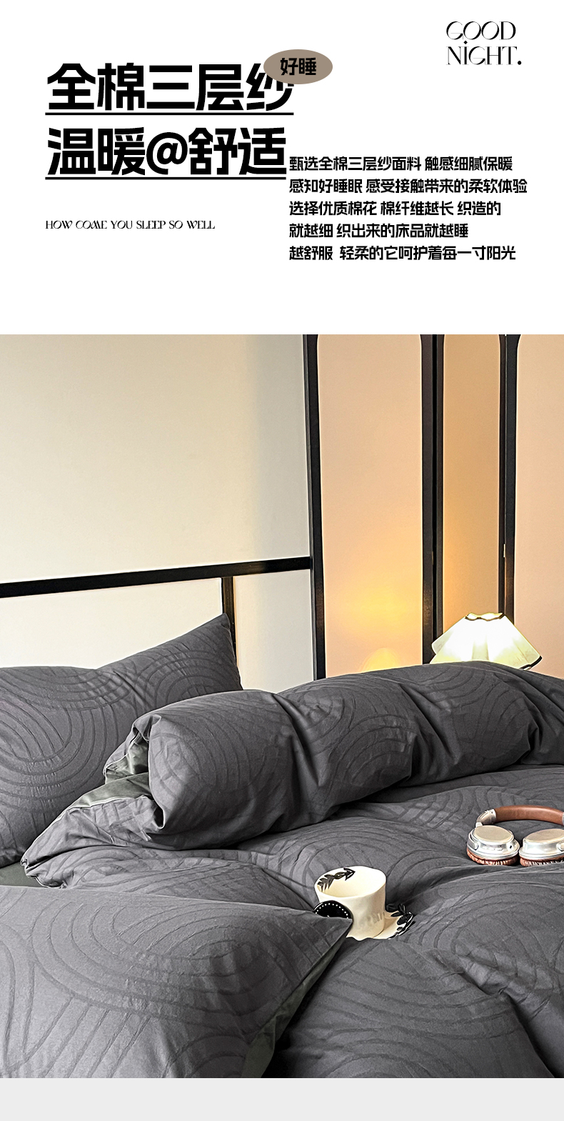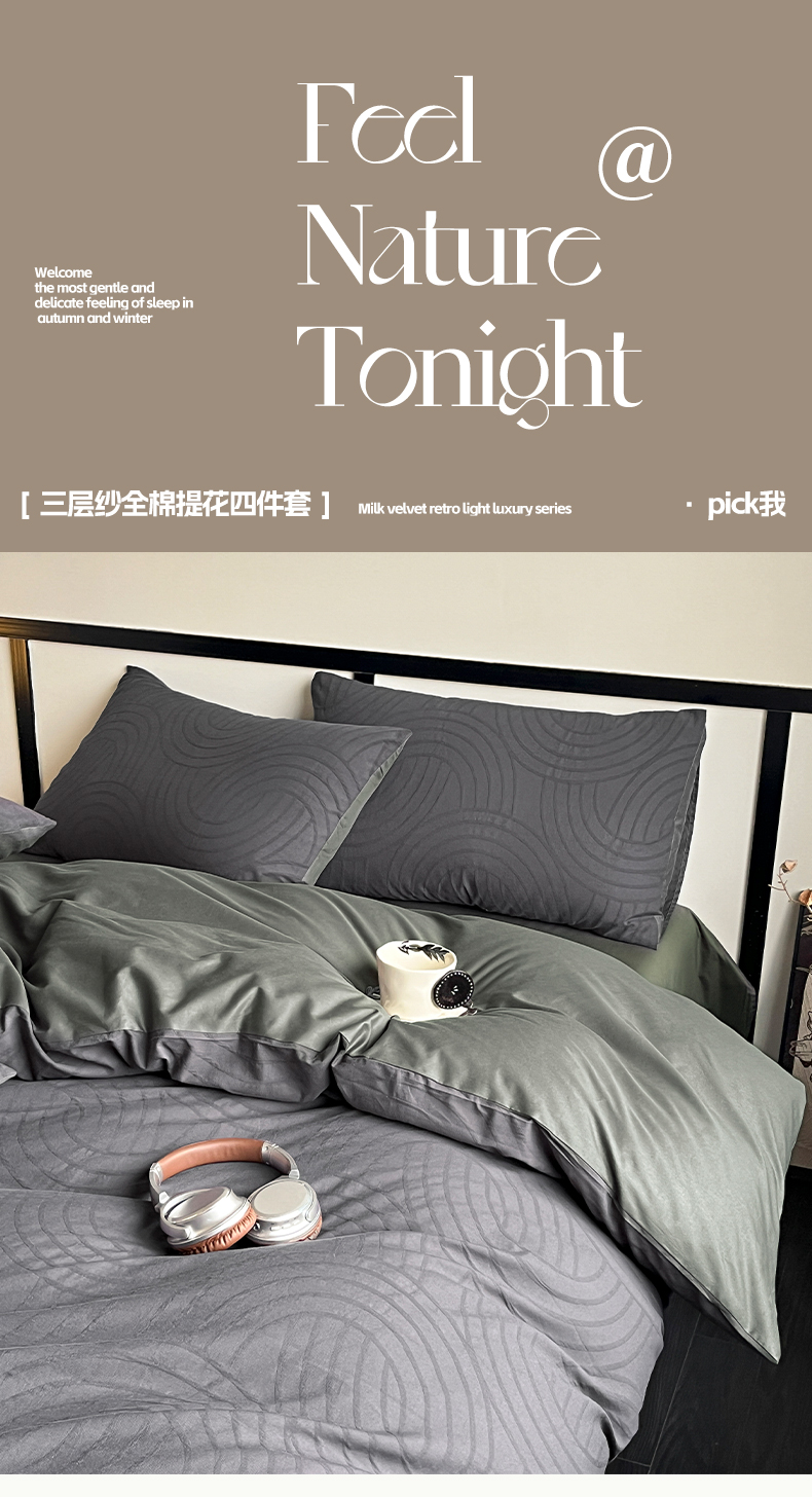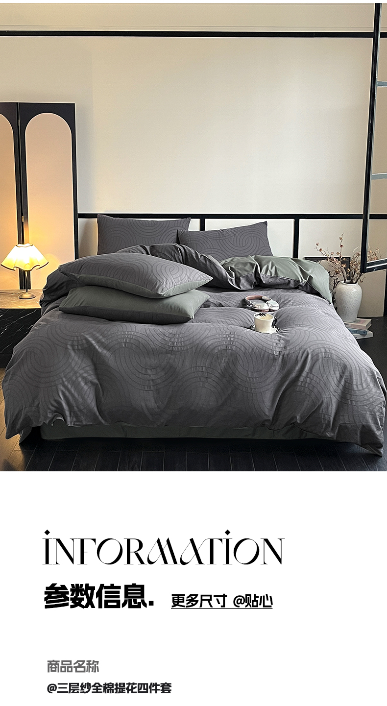 雅居纺家纺 2024新款100%全棉三层纱提花四件套 圆舞曲