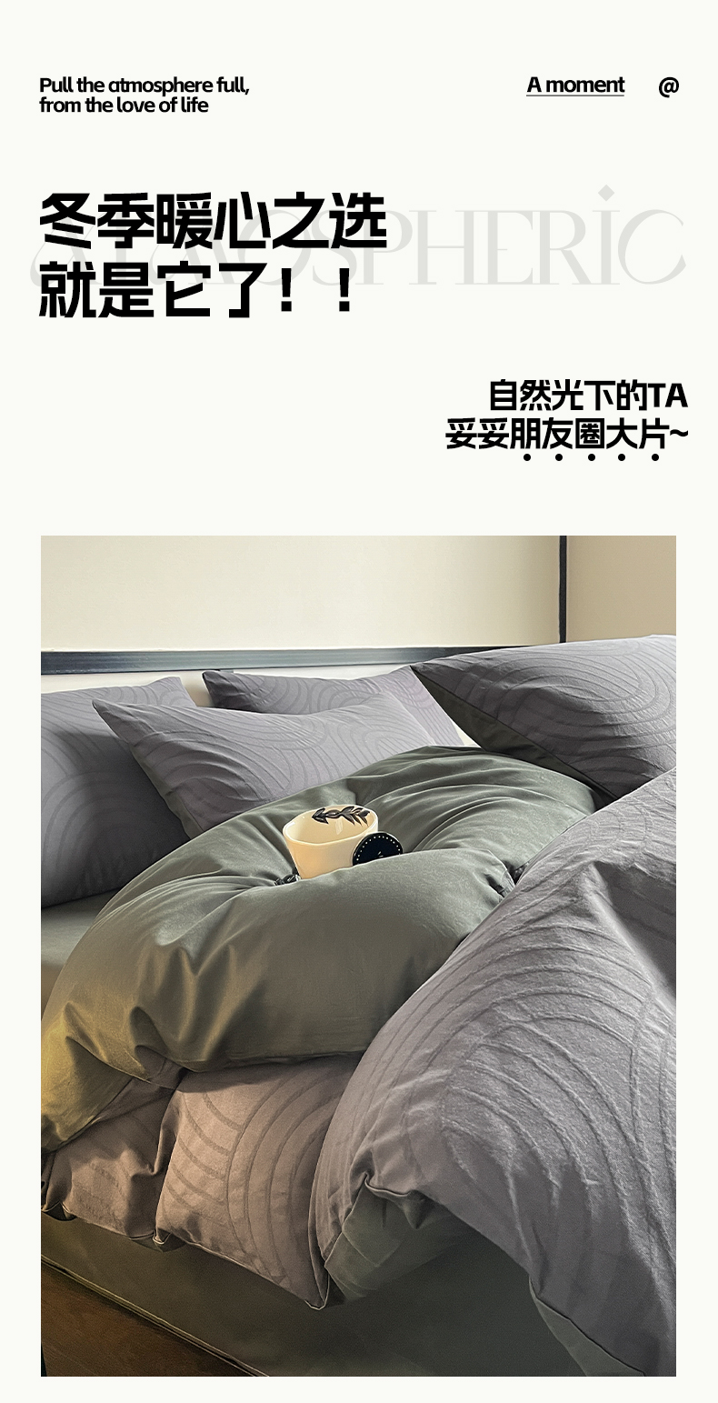 (总)雅居纺家纺 2022新款全棉华夫格普通款四件套,焦糖,米驼,奶油白,柔粉,深灰,雾蓝,月灰