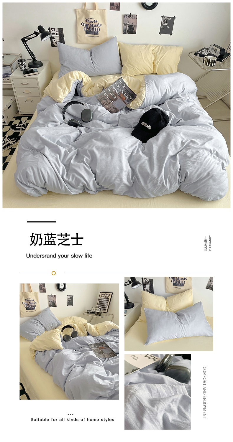 当前位置: 91家纺网 > 商品网购 > 床品套件 > 四件套 > 水洗棉四件套 > 思诺羽床笠 2025新款高克重微皱双拼水洗棉四件套 奶蓝芝士