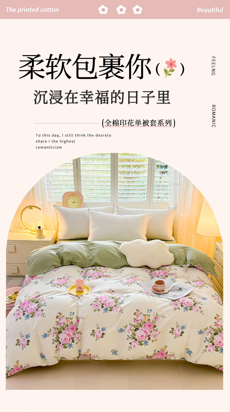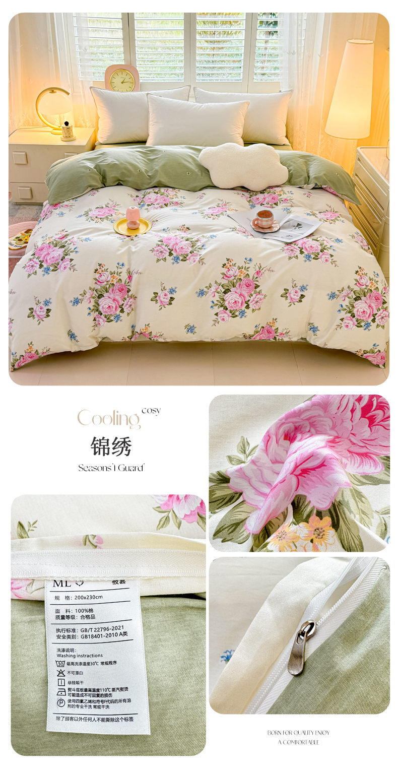 洺兰家居 2025年新款全棉A类全喷气印花小清新单被套 锦绣