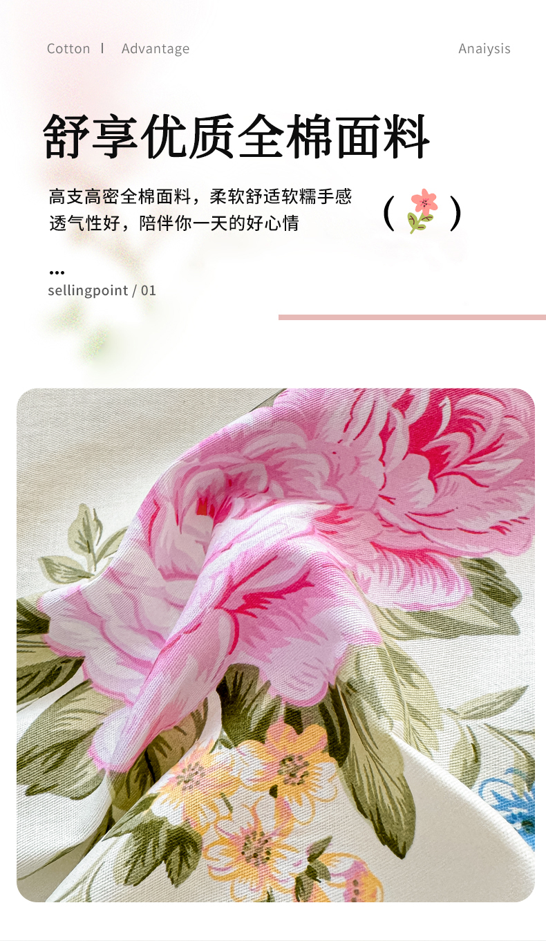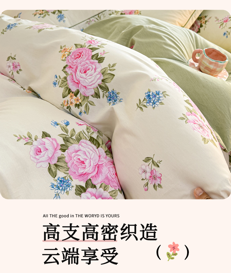 商品名称:洺兰家居 2025年新款全棉A类全喷气印花小清新单被套 锦绣