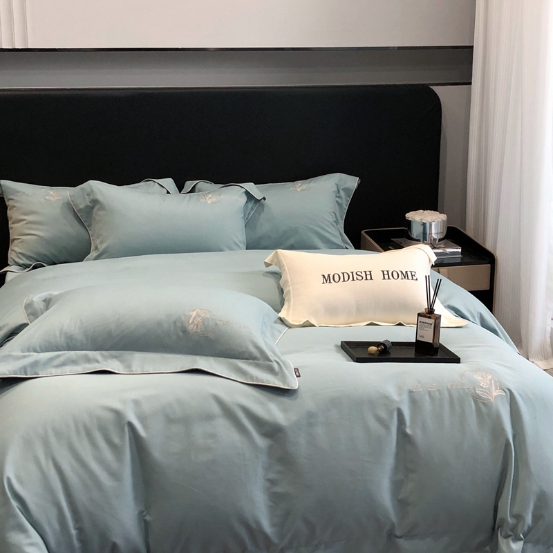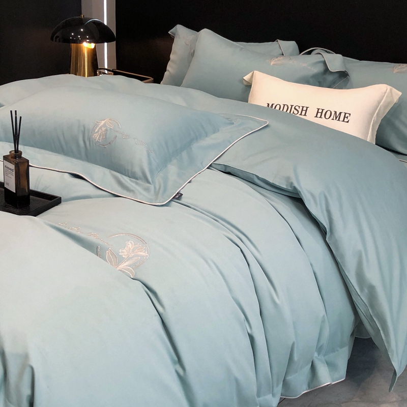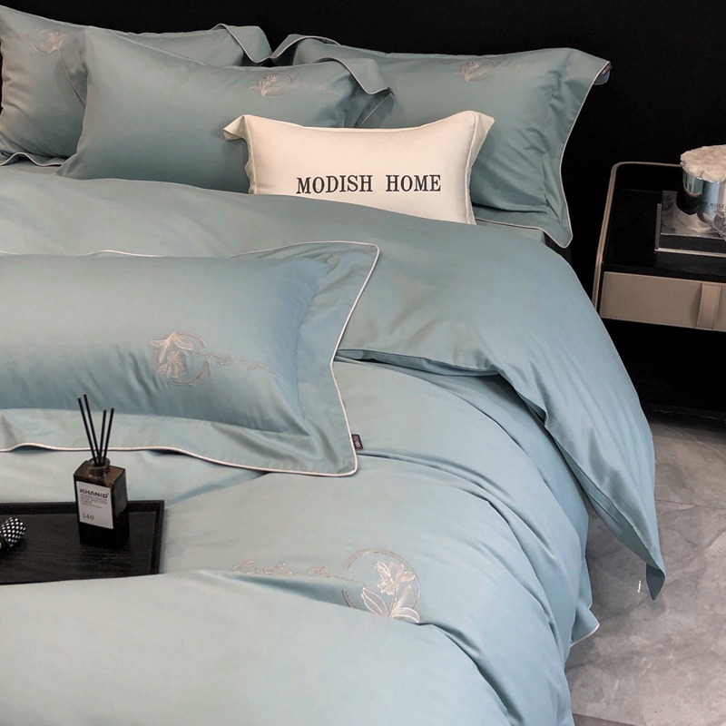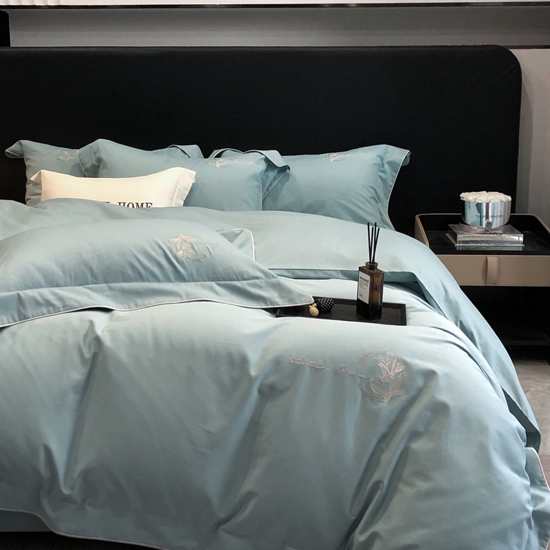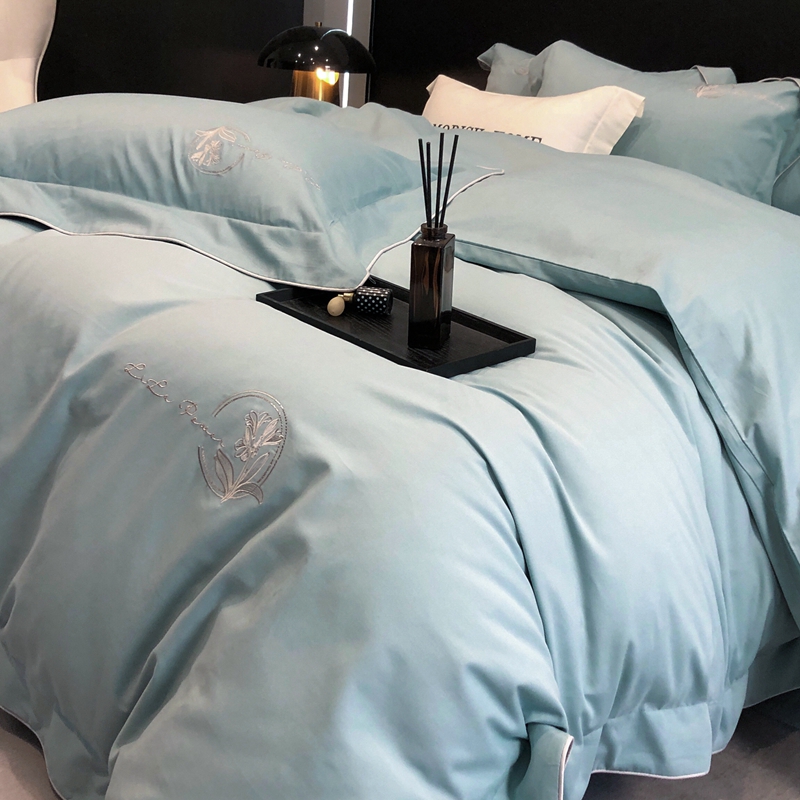 (总)玖玖爱家纺 2023新款120支贡缎长绒棉刺绣梦柔系列四件套,梦柔-香槟金,梦柔-香橙桔,梦柔-高级灰,梦柔-水蓝,梦柔-芙蓉玉