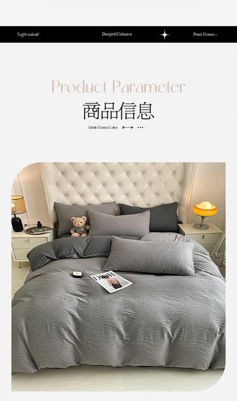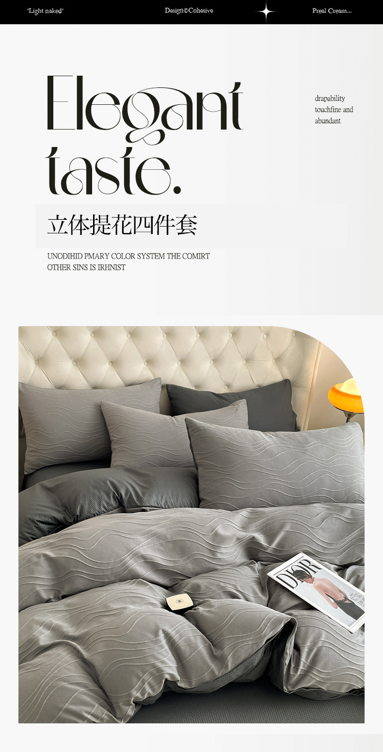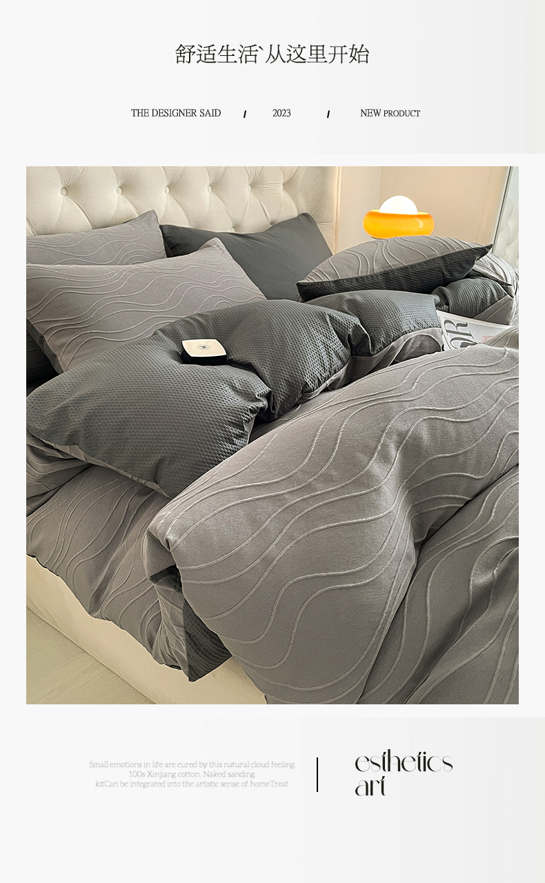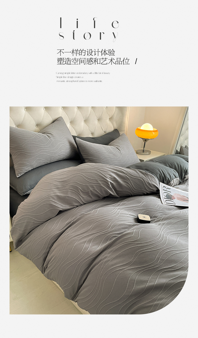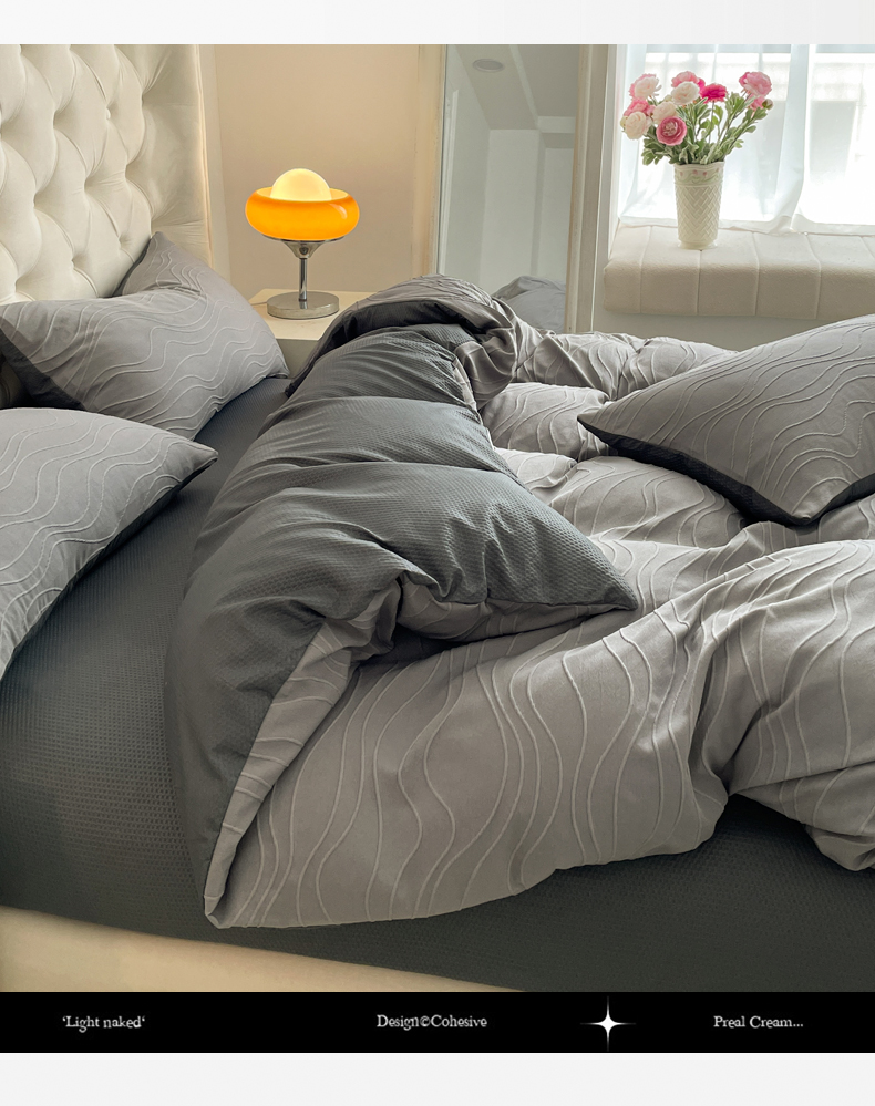 当前位置: 91家纺网 > 商品网购 > 床品套件 > 四件套 > 其它四件套 > 新款色织提花立体床上用品四件套轻奢时尚 提花立体波浪浅灰深灰