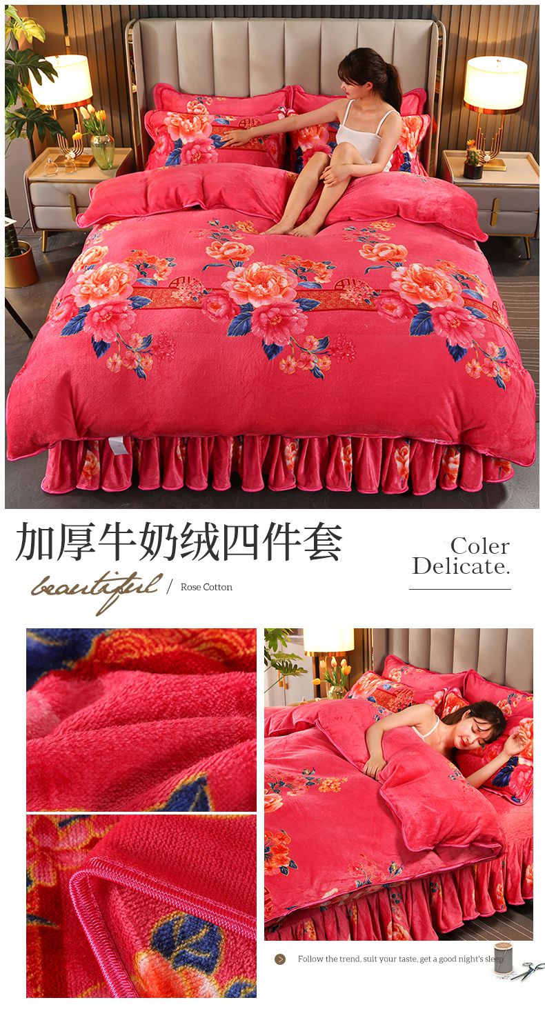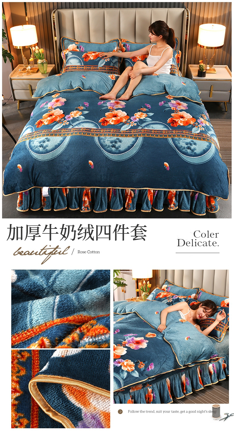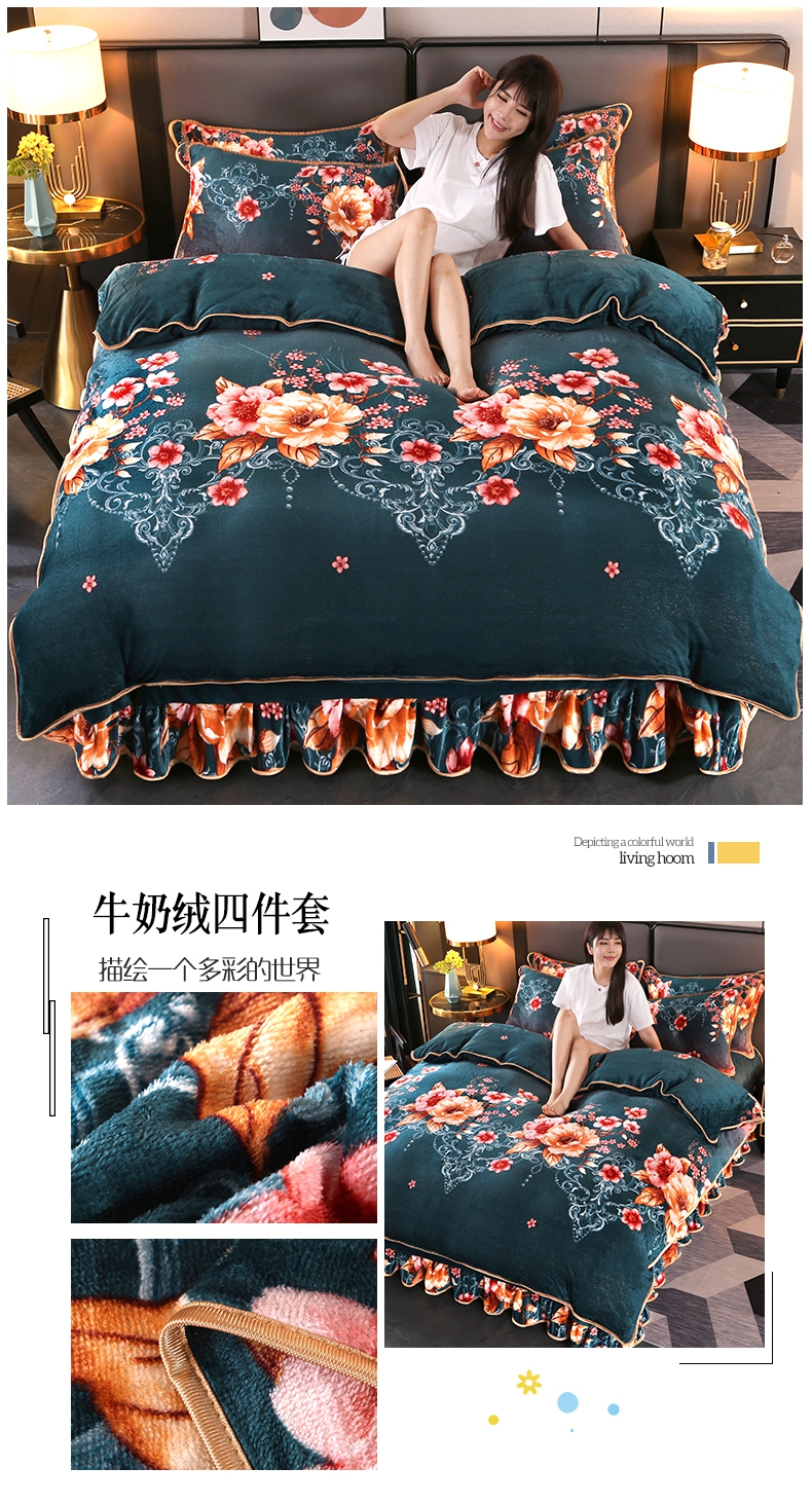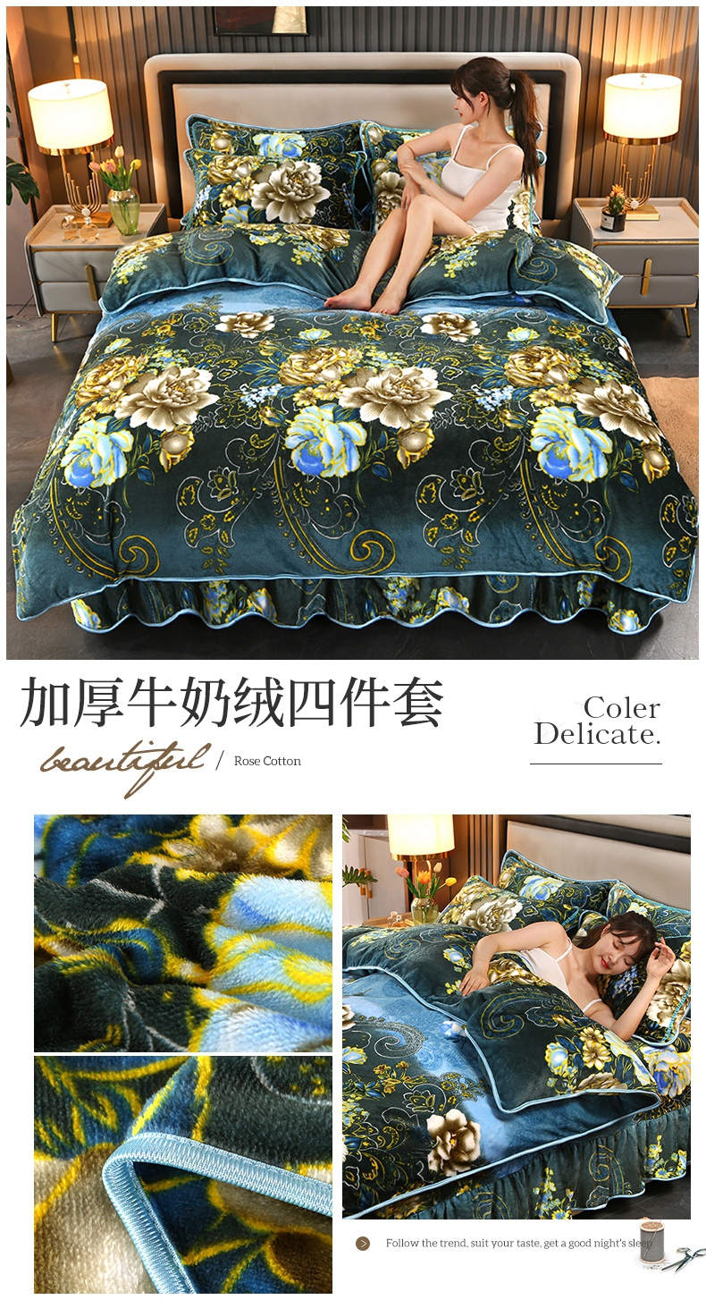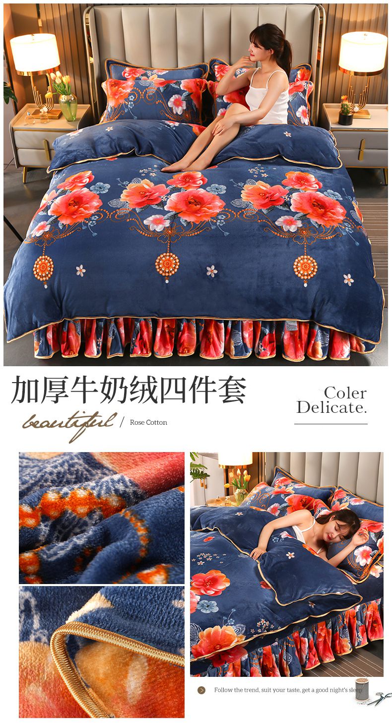 商品名称:(总)(买家秀 爆款不断货)A类母婴级牛奶绒四件套珊瑚绒四件套雪花绒四件套牛奶绒床裙四件套法莱绒床裙四件套