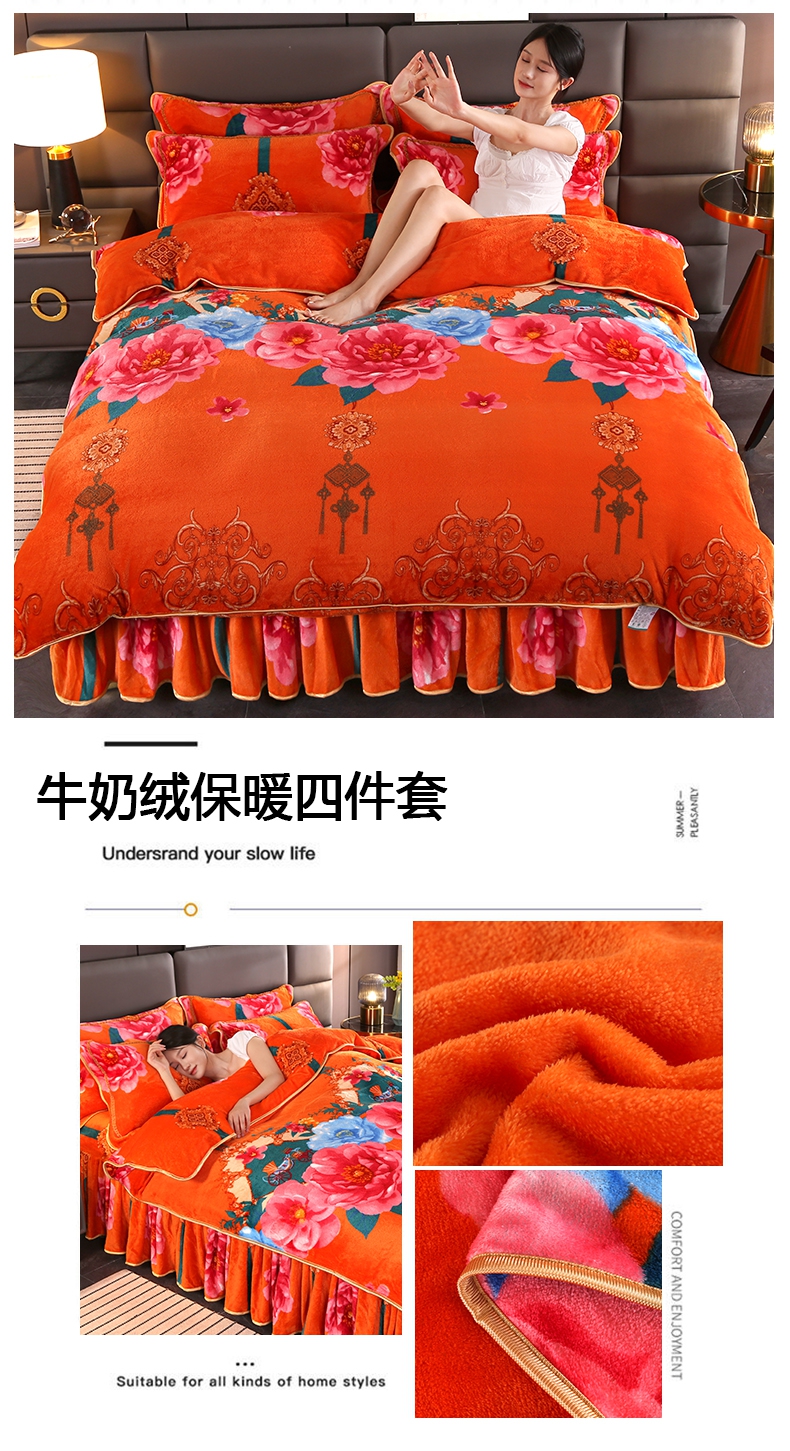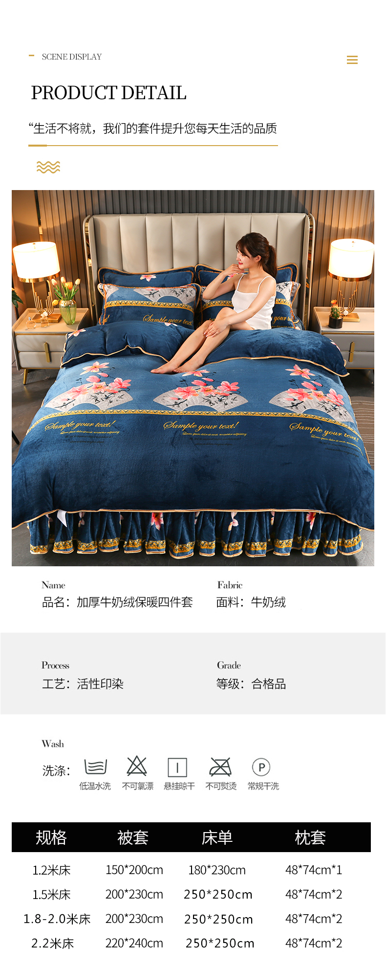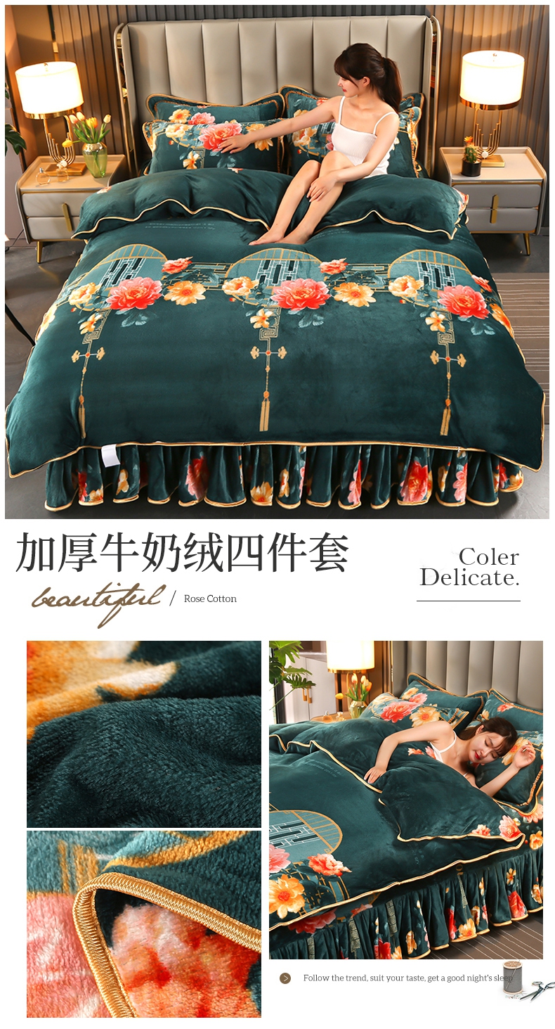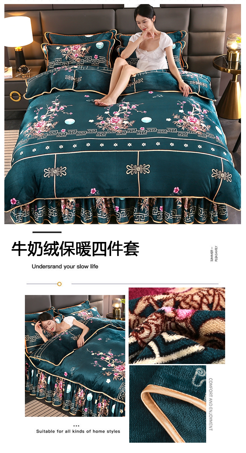 商品名称:(总)(买家秀 爆款不断货)A类母婴级牛奶绒四件套珊瑚绒四件套雪花绒四件套牛奶绒床裙四件套法莱绒床裙四件套