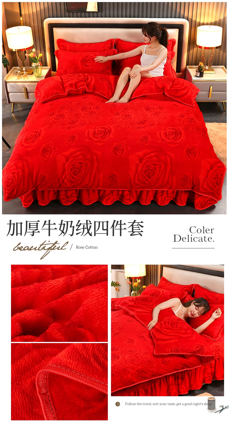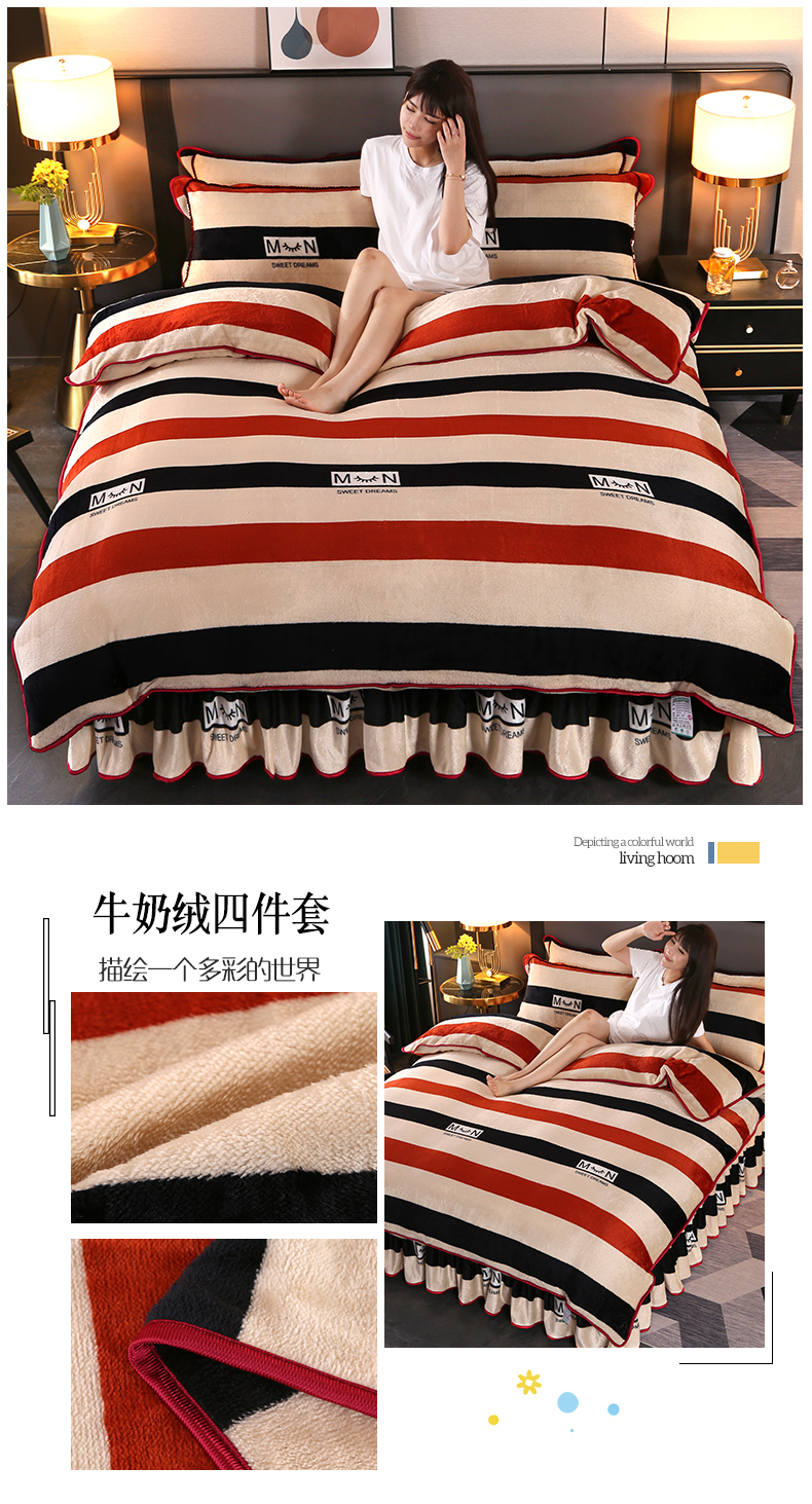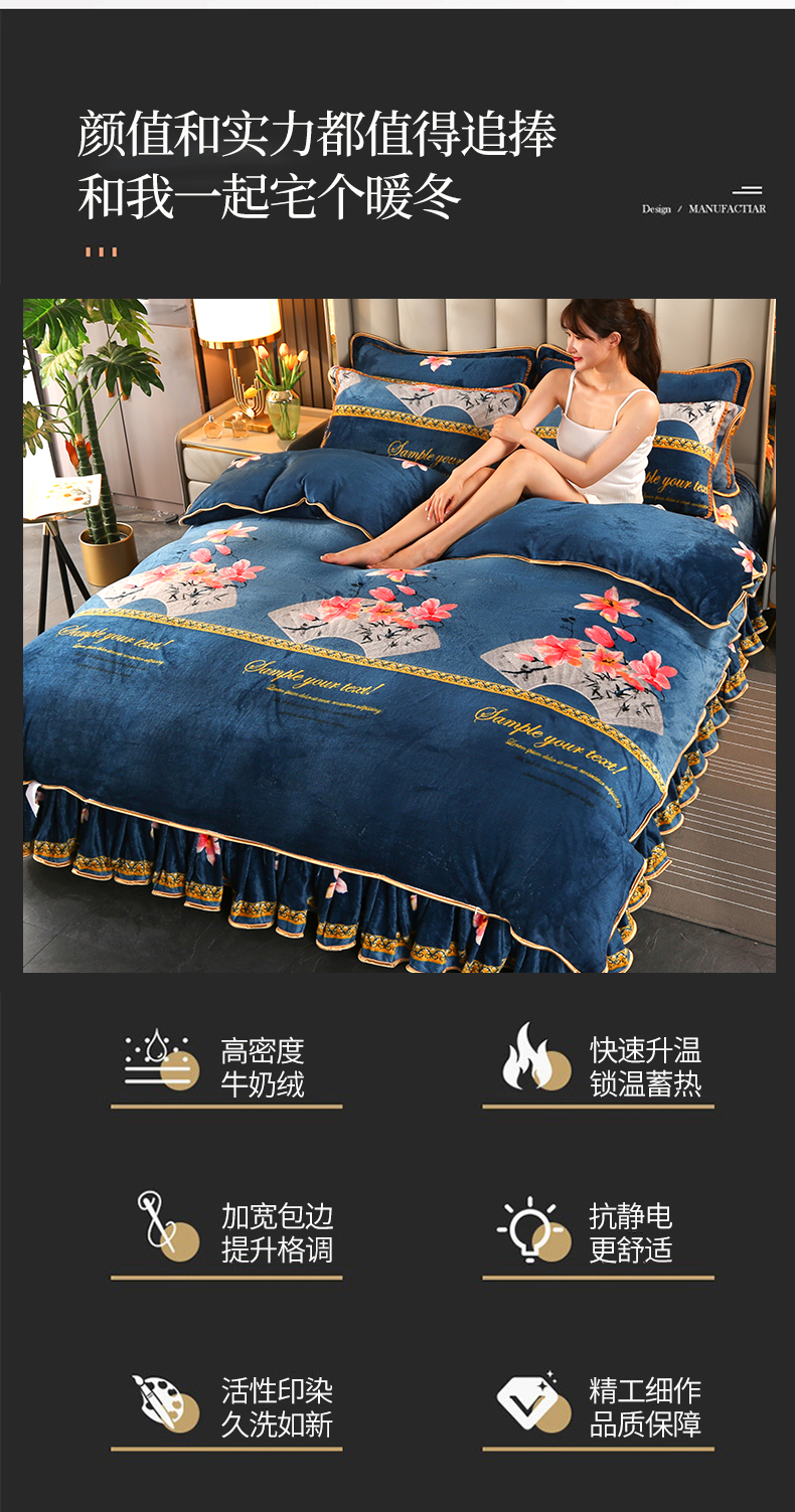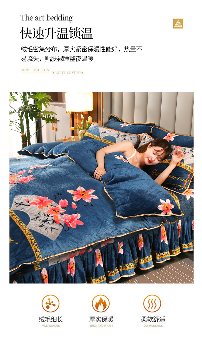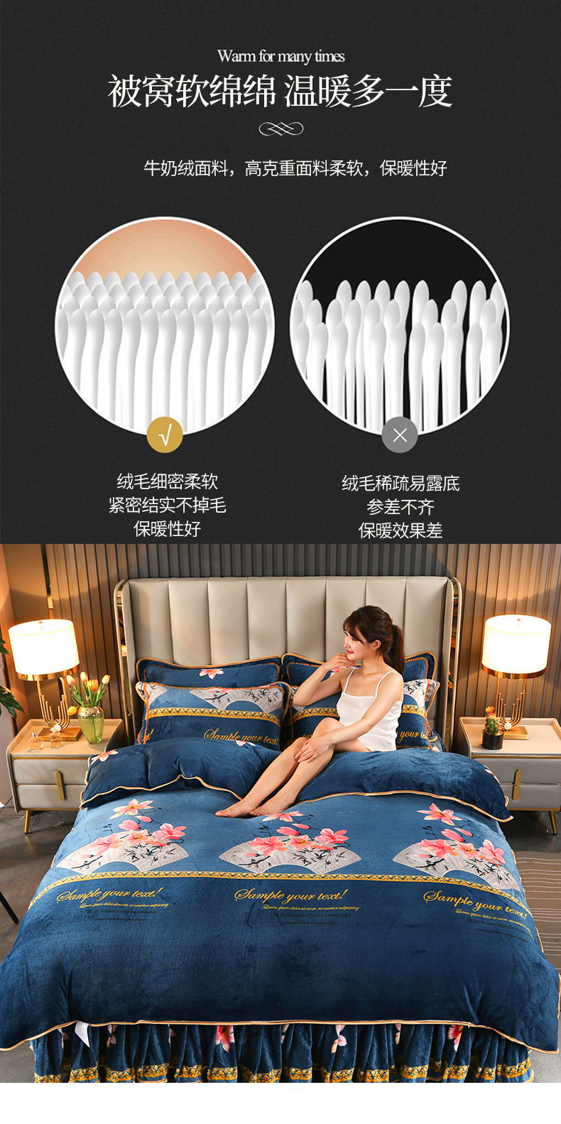商品名称:(总)(买家秀 爆款不断货)A类母婴级牛奶绒四件套珊瑚绒四件套雪花绒四件套牛奶绒床裙四件套法莱绒床裙四件套