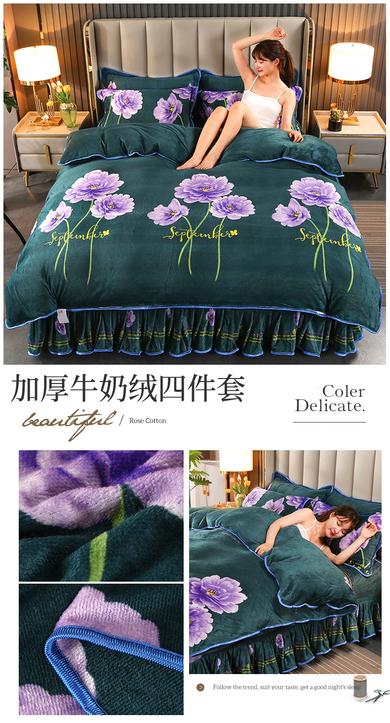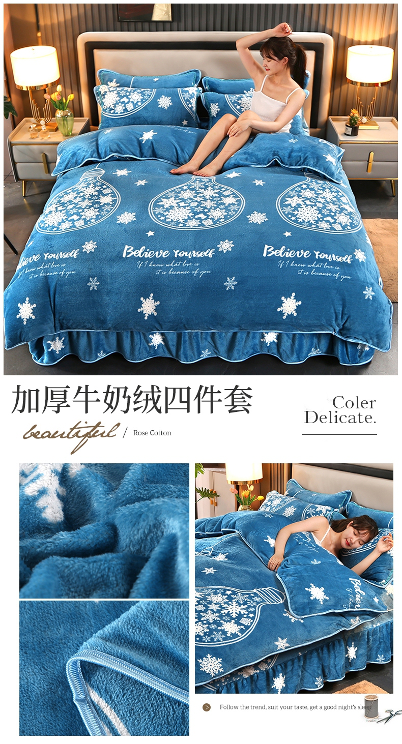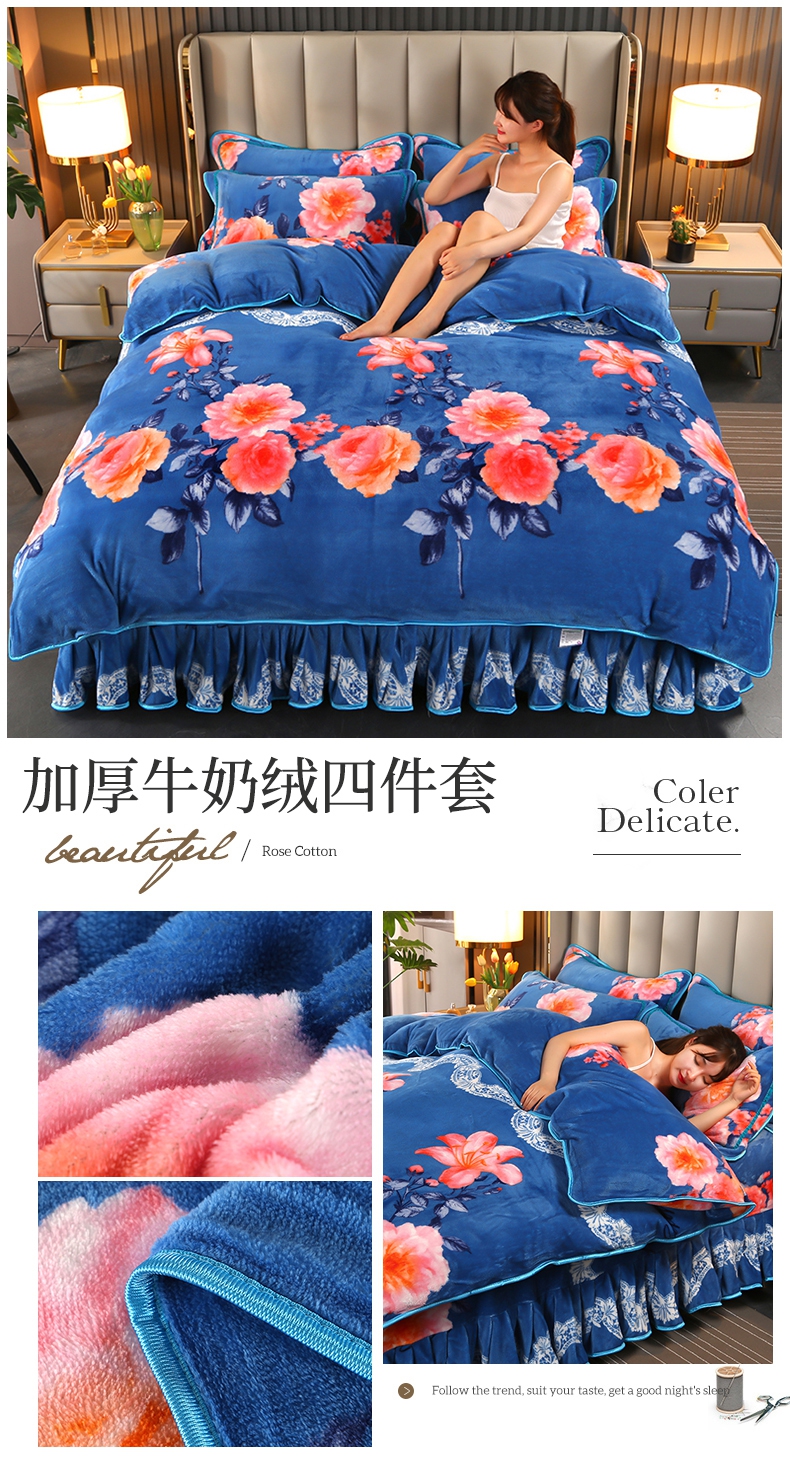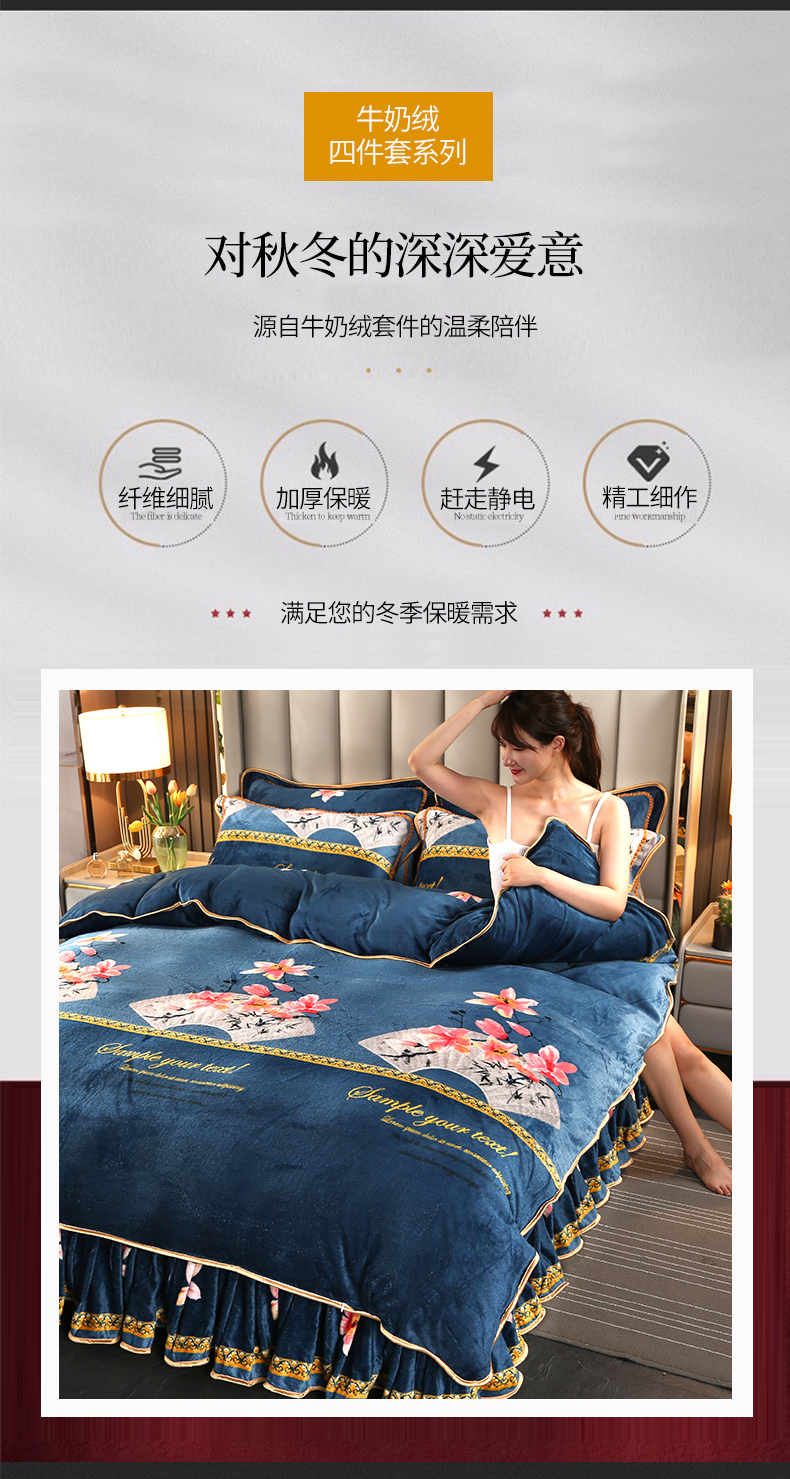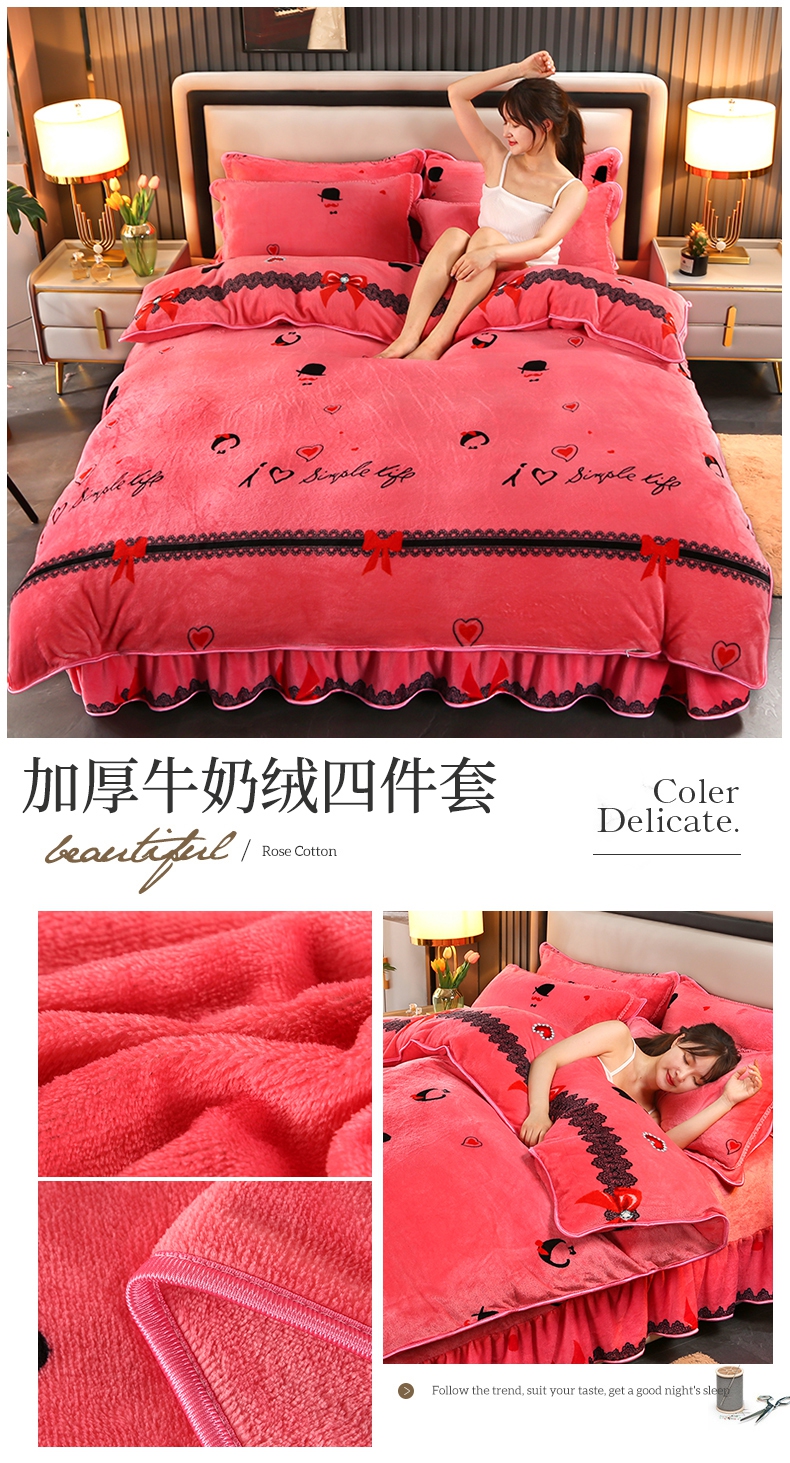 (总)(买家秀 爆款不断货)A类母婴级牛奶绒四件套珊瑚绒四件套雪花绒四件套牛奶绒床裙四件套法莱绒床裙四件套