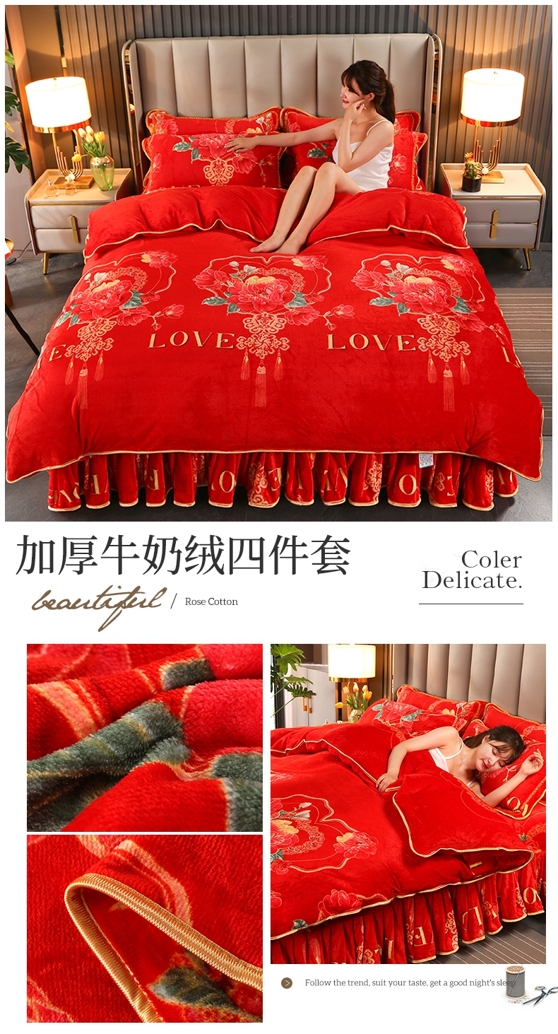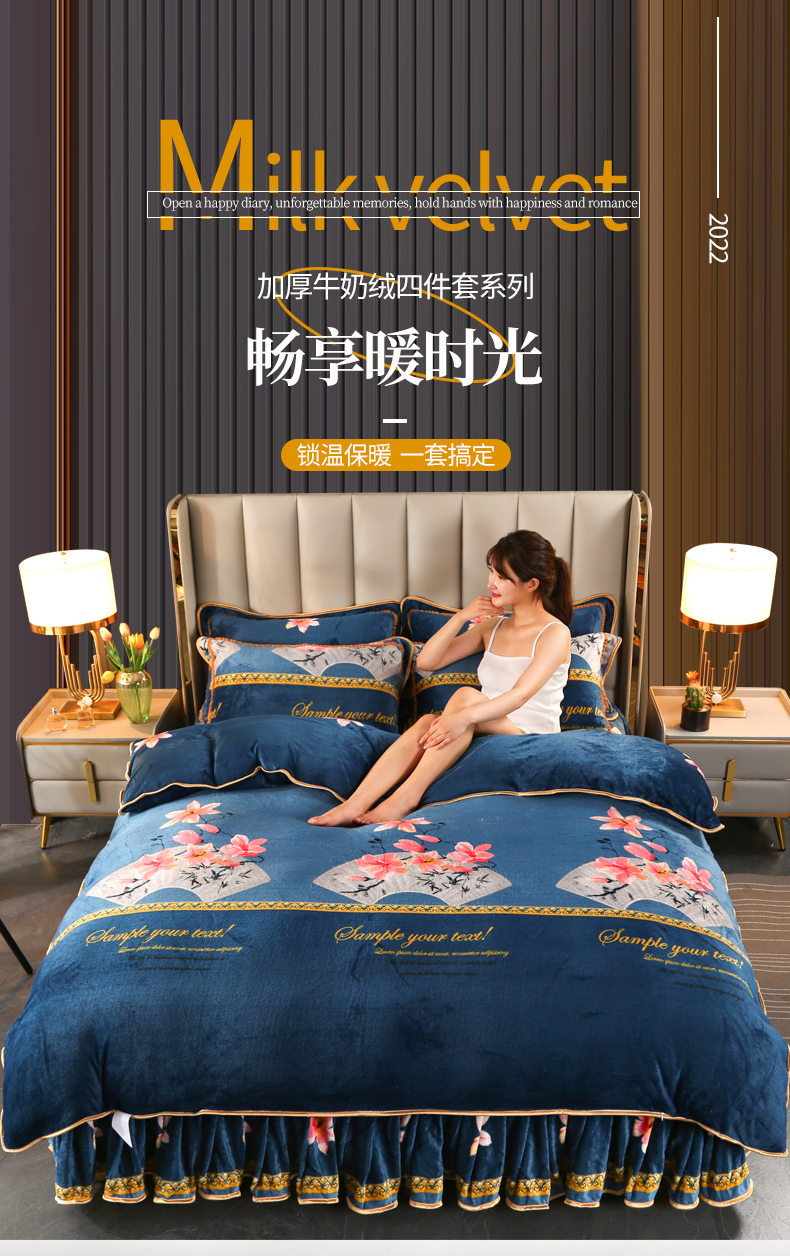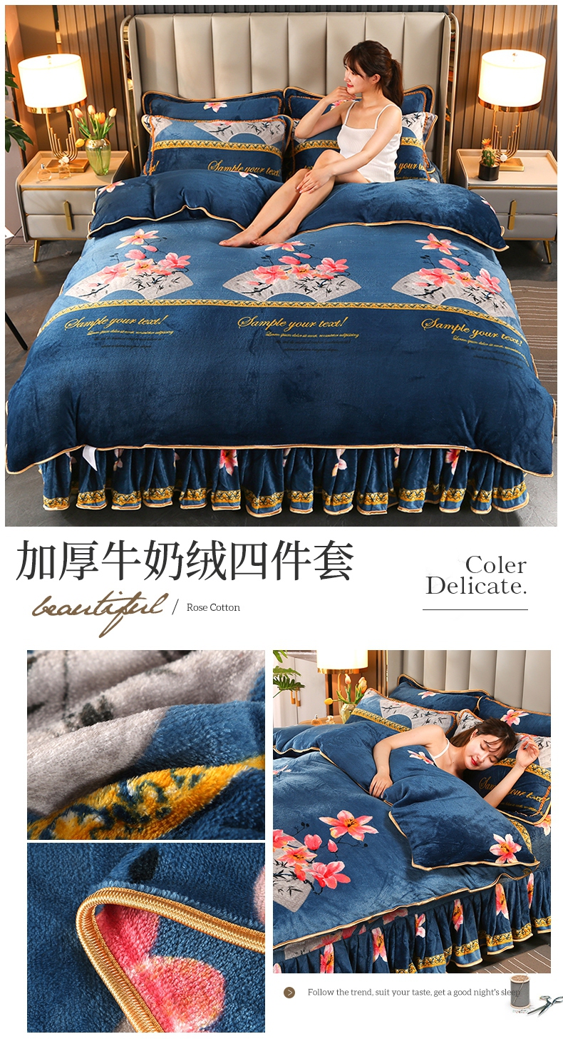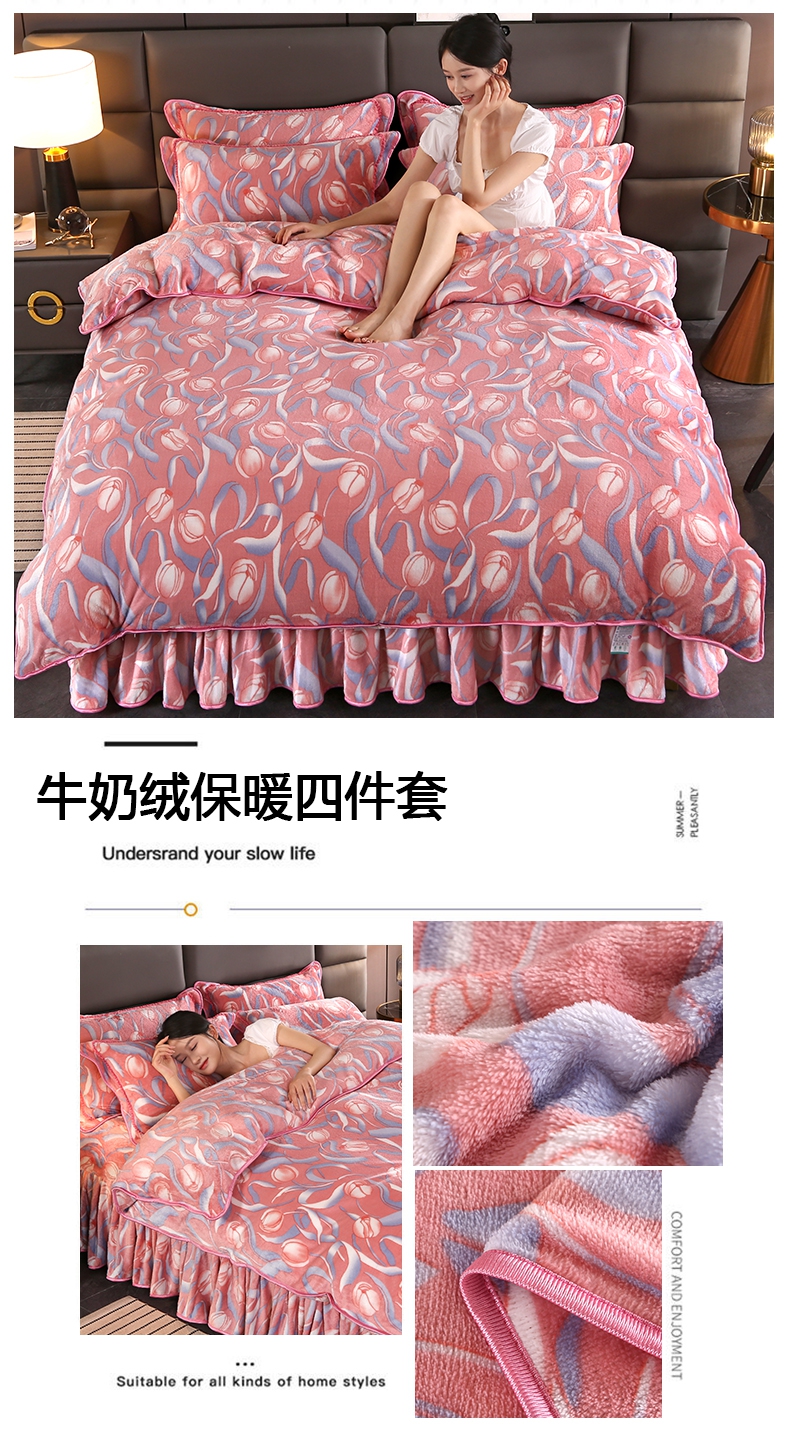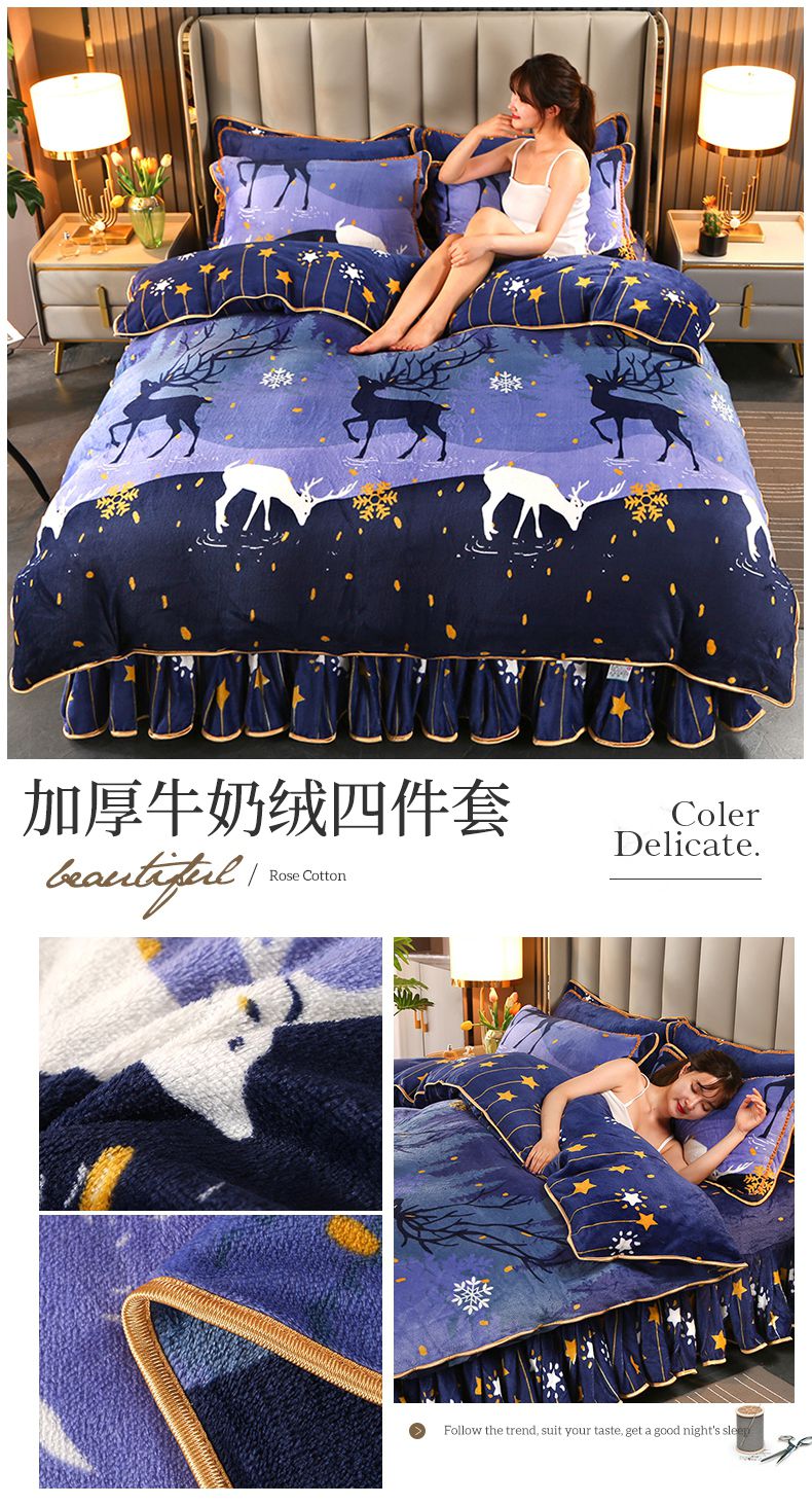 (总)(买家秀 爆款不断货)A类母婴级牛奶绒四件套珊瑚绒四件套雪花绒四件套牛奶绒床裙四件套法莱绒床裙四件套