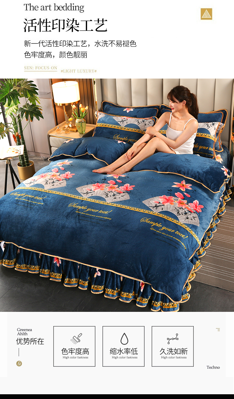 (总)小叮当家纺仓储工厂店 2025新款水晶绒夹棉床裙四件套,宝石兰,藏青,豆沙,粉玉,灰,酒红,墨绿,月光蓝