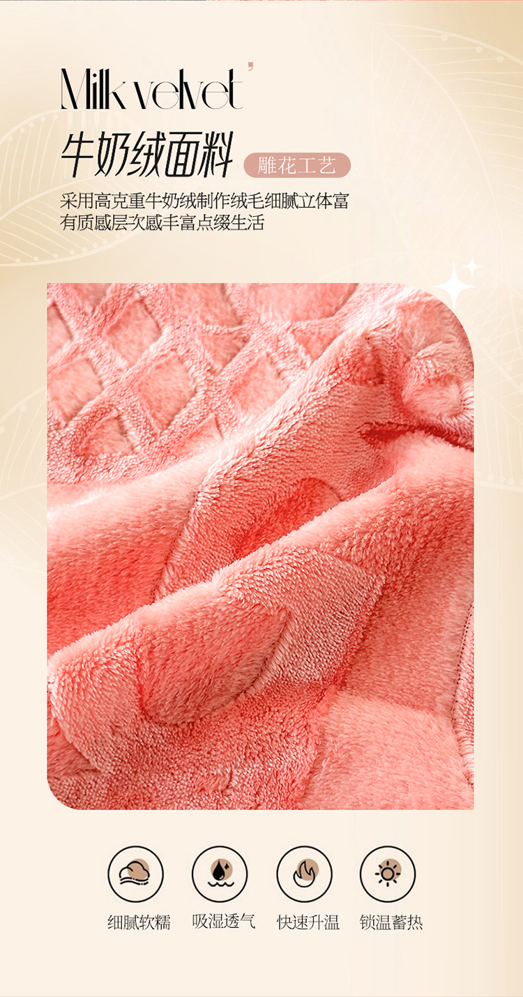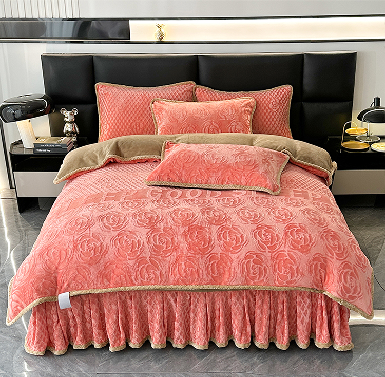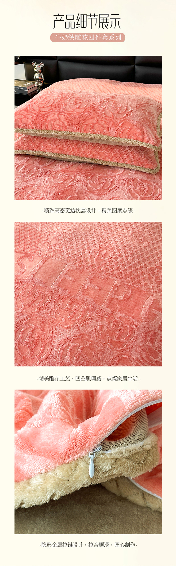 (买家秀爆款不断货)A类母婴级8D牛奶雕花绒四件套珊瑚绒四件套雪花绒四件套花卉雕花牛奶绒四件套北欧风 挚爱-浪漫粉