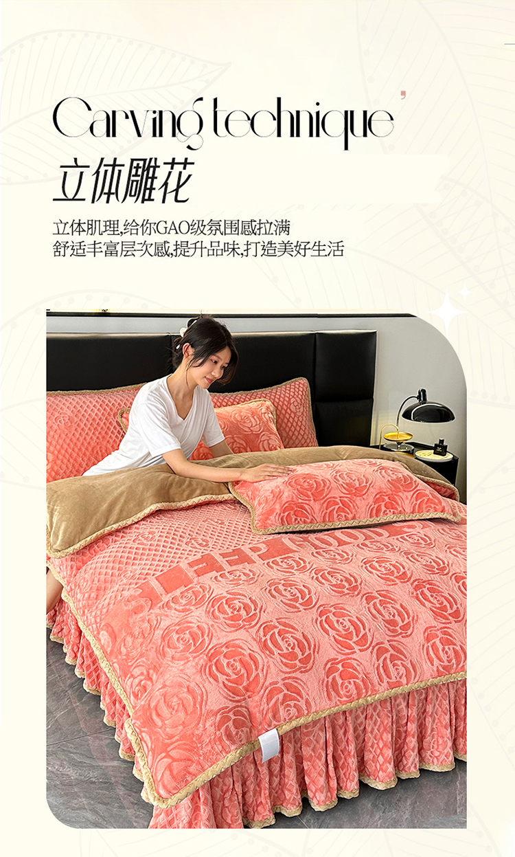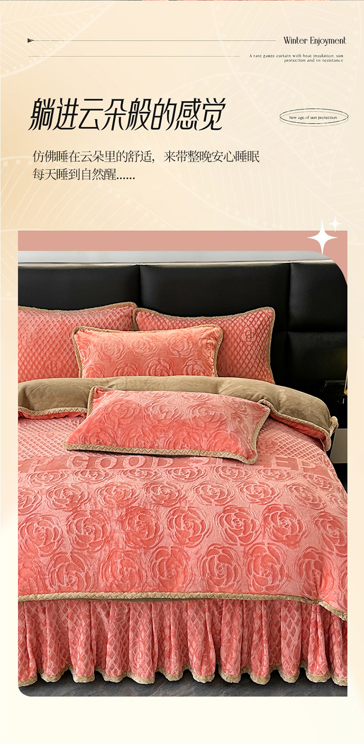 (总)小叮当家纺仓储工厂店 2025新款水晶绒夹棉床裙四件套,宝石兰,藏青,豆沙,粉玉,灰,酒红,墨绿,月光蓝