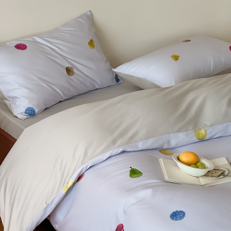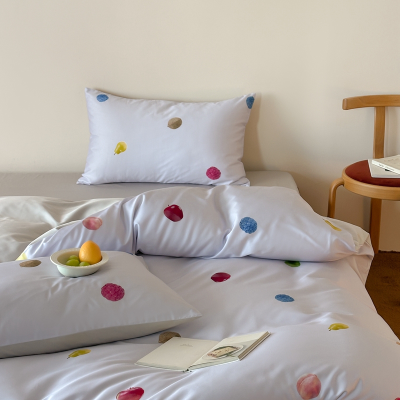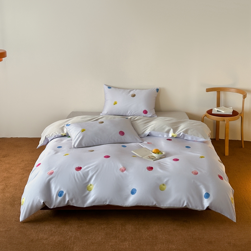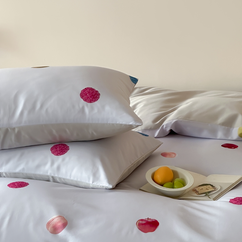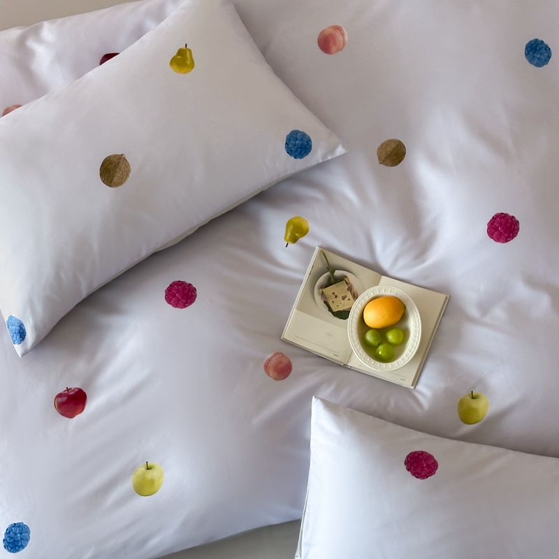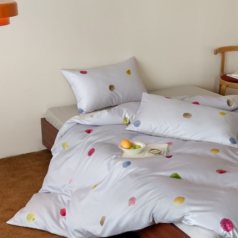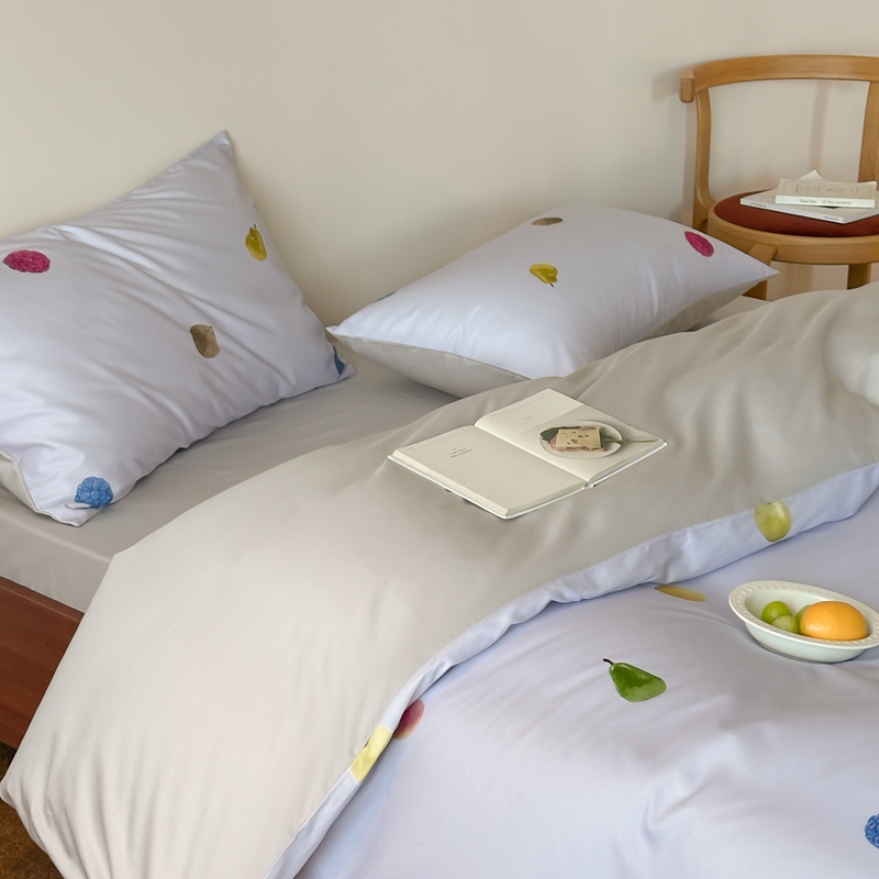 赫帛 2025新款60s缎纹数码印花长绒棉四件套-缤纷水果 缤纷水果-紫色