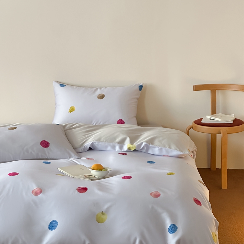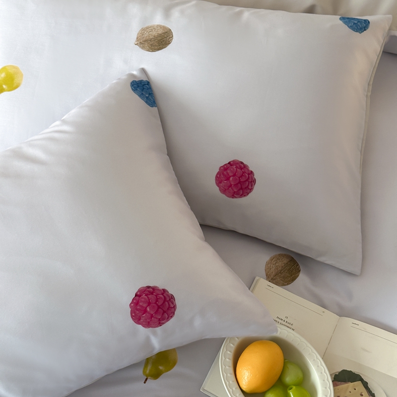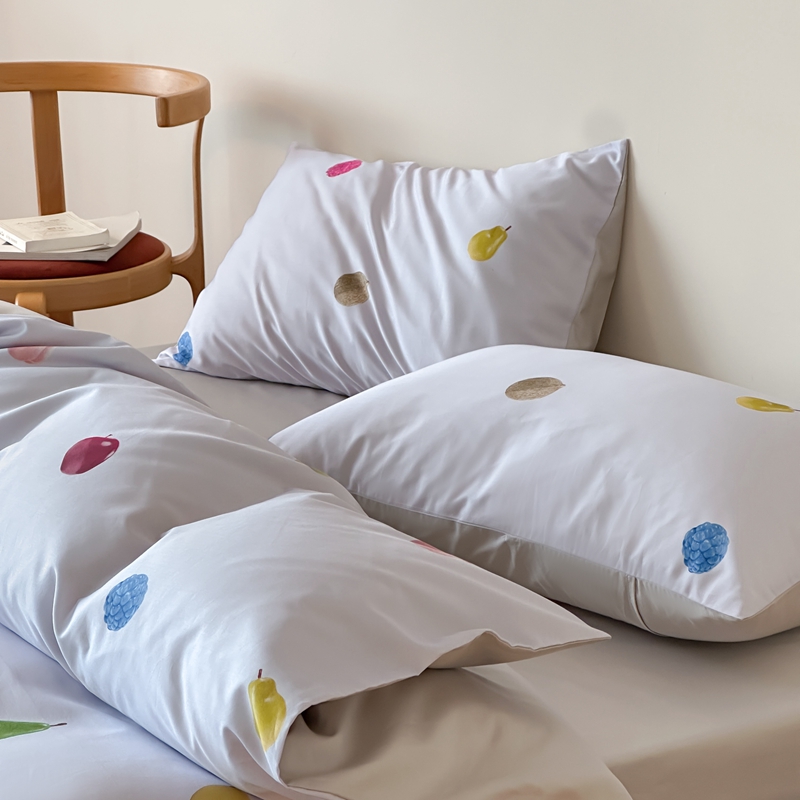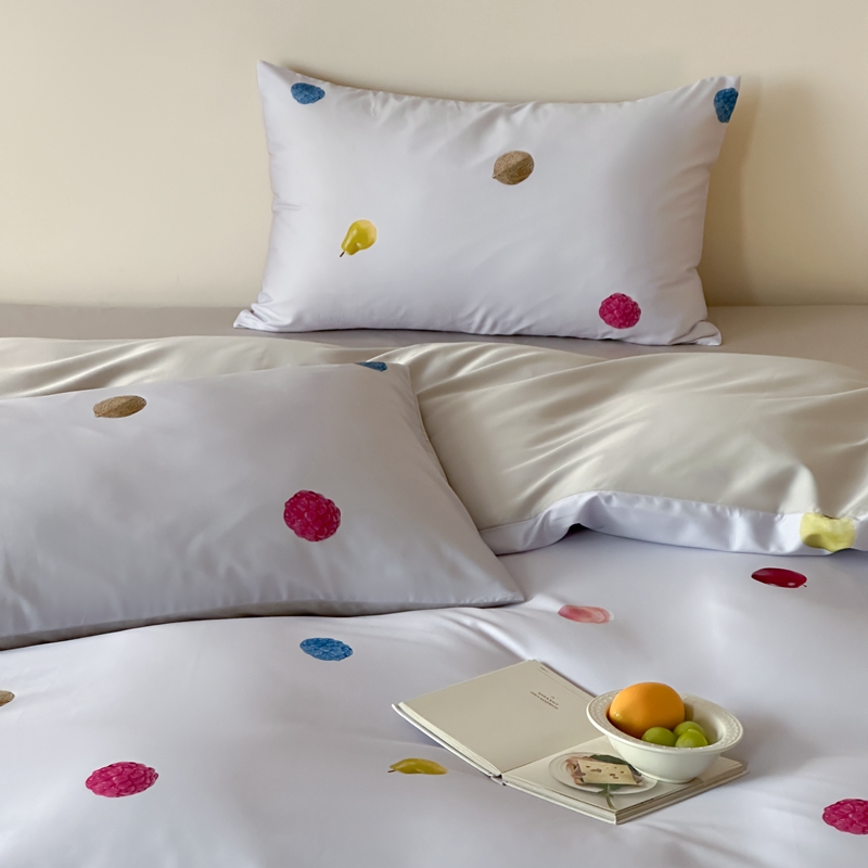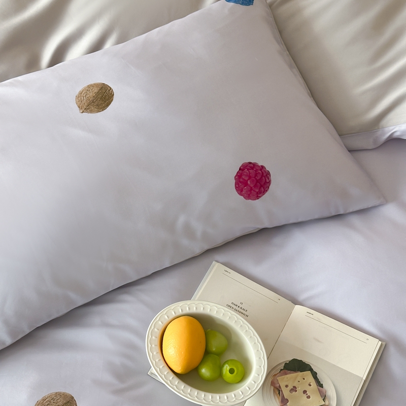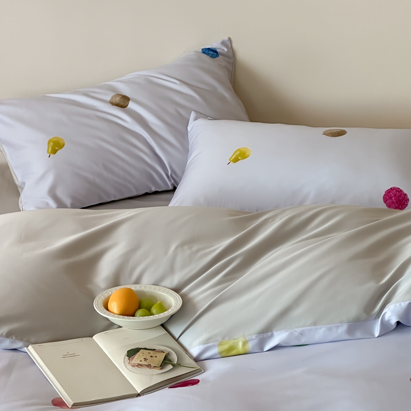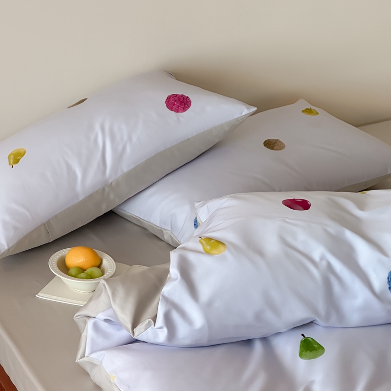 赫帛 2025新款60s缎纹数码印花长绒棉四件套-缤纷水果 缤纷水果-紫色