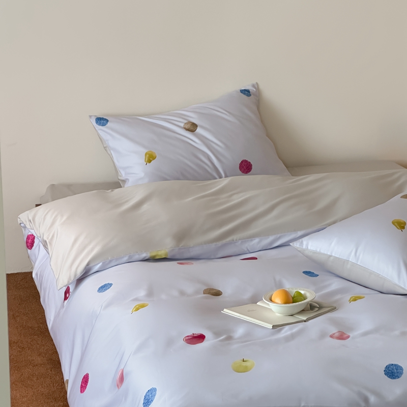 商品名称:赫帛 2025新款60s缎纹数码印花长绒棉四件套-缤纷水果 缤纷水果-紫色