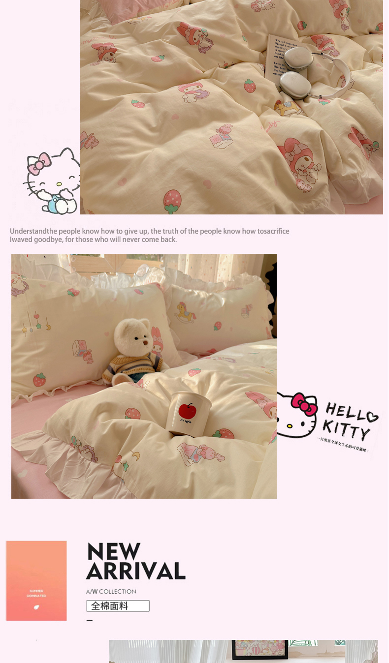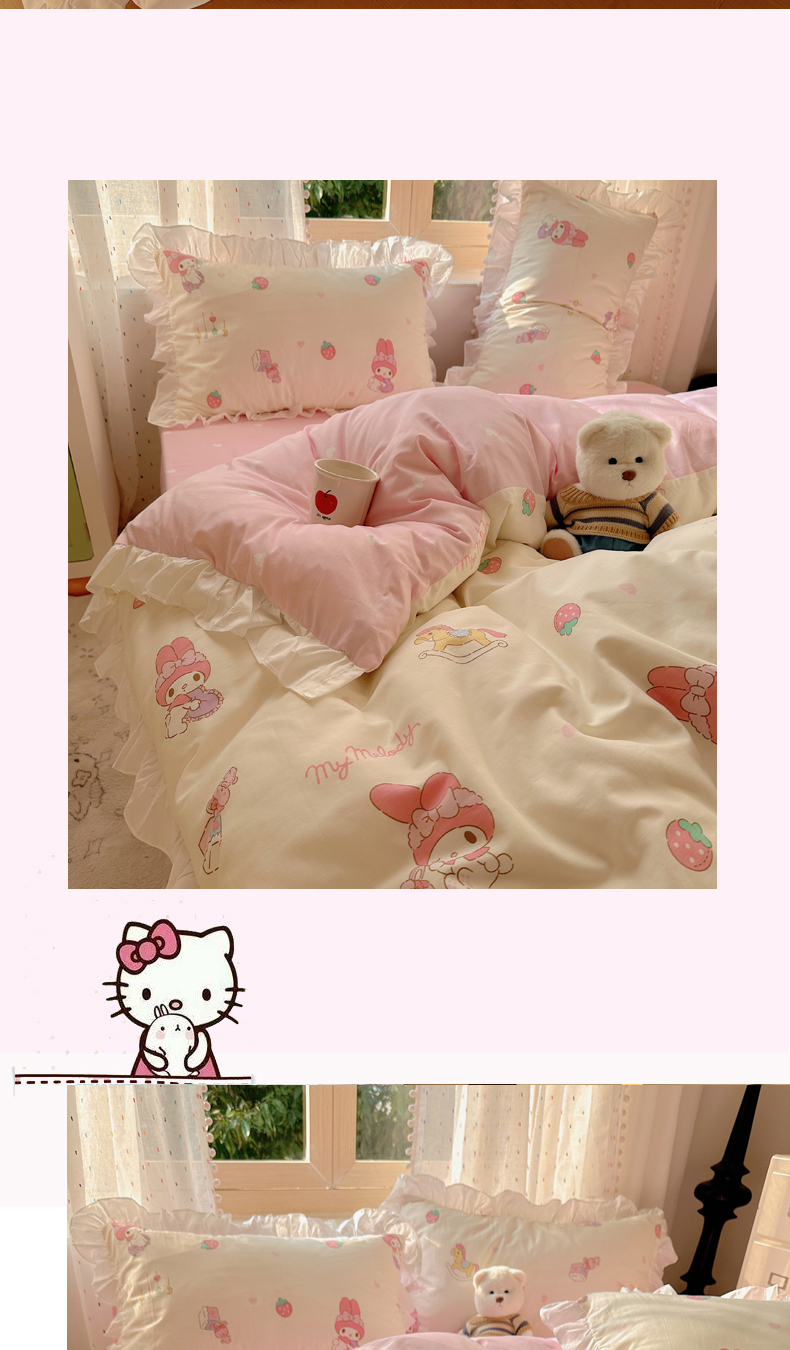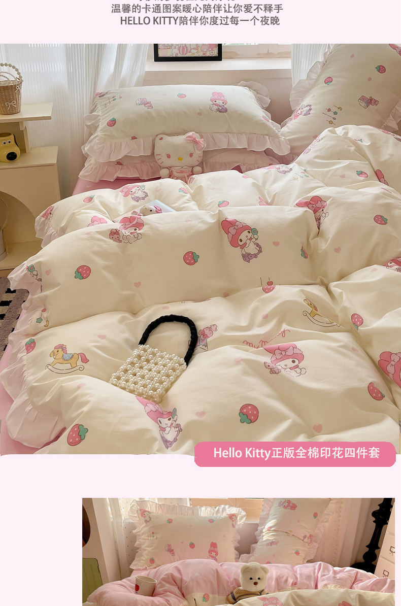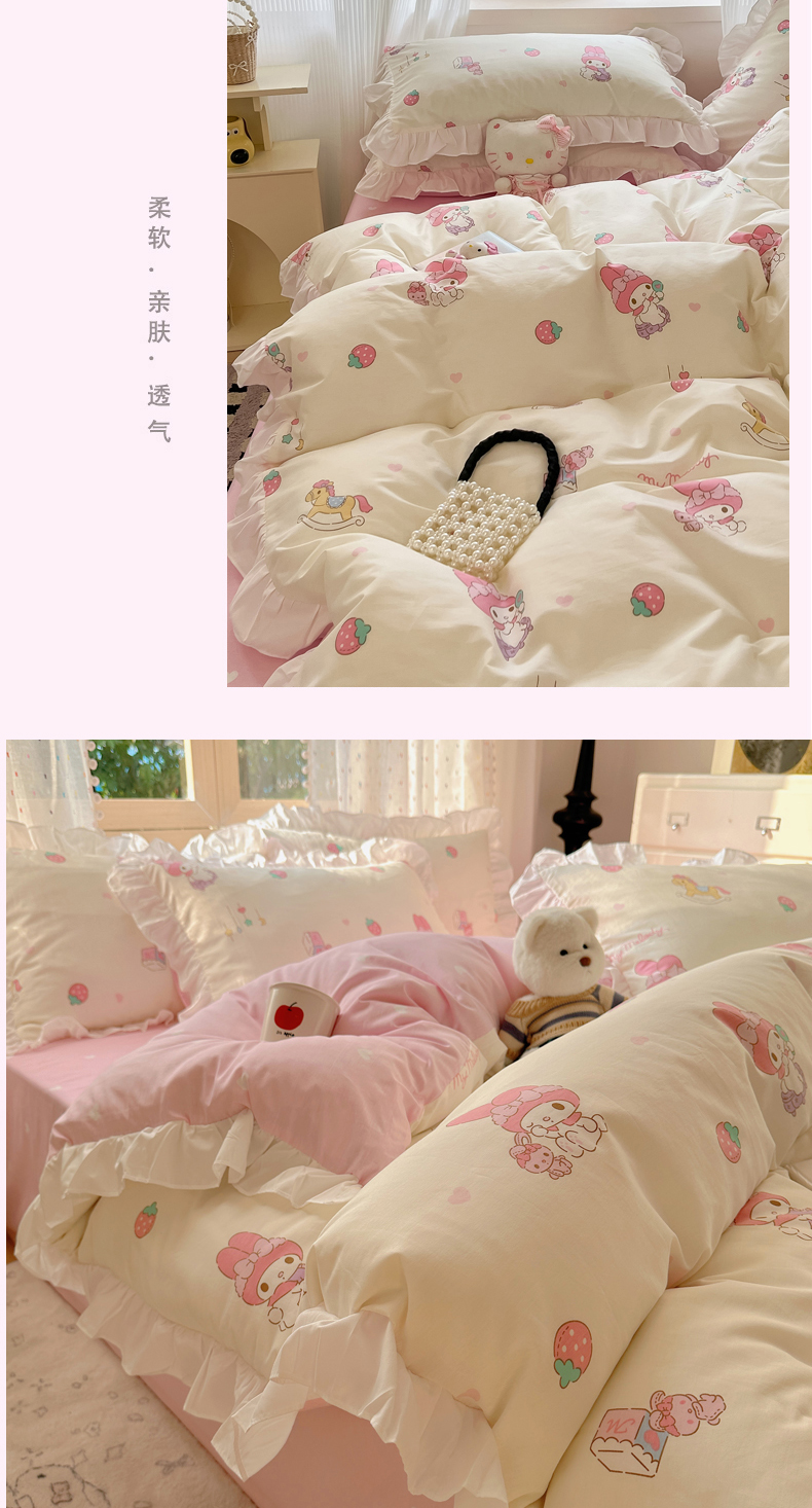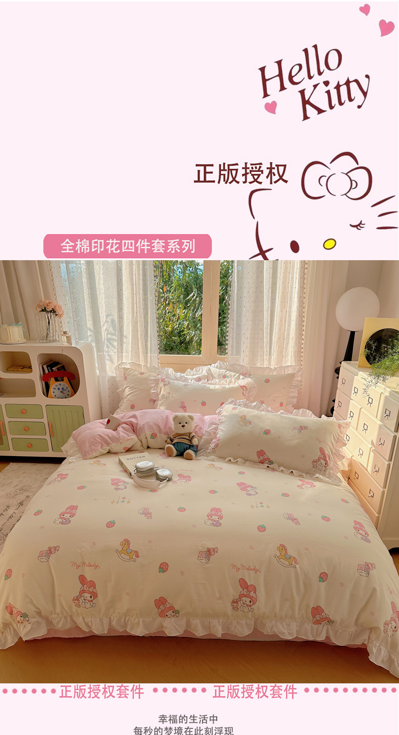 三朵家纺 2025新款全棉花边款三丽欧系列四件套 萌萌美乐蒂