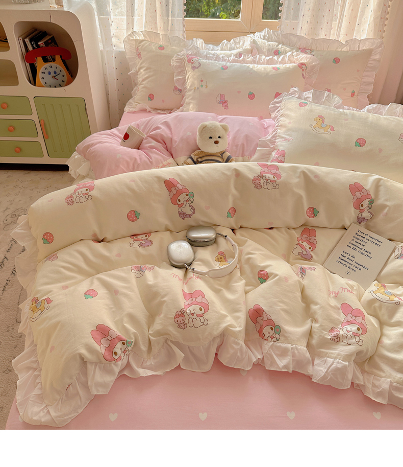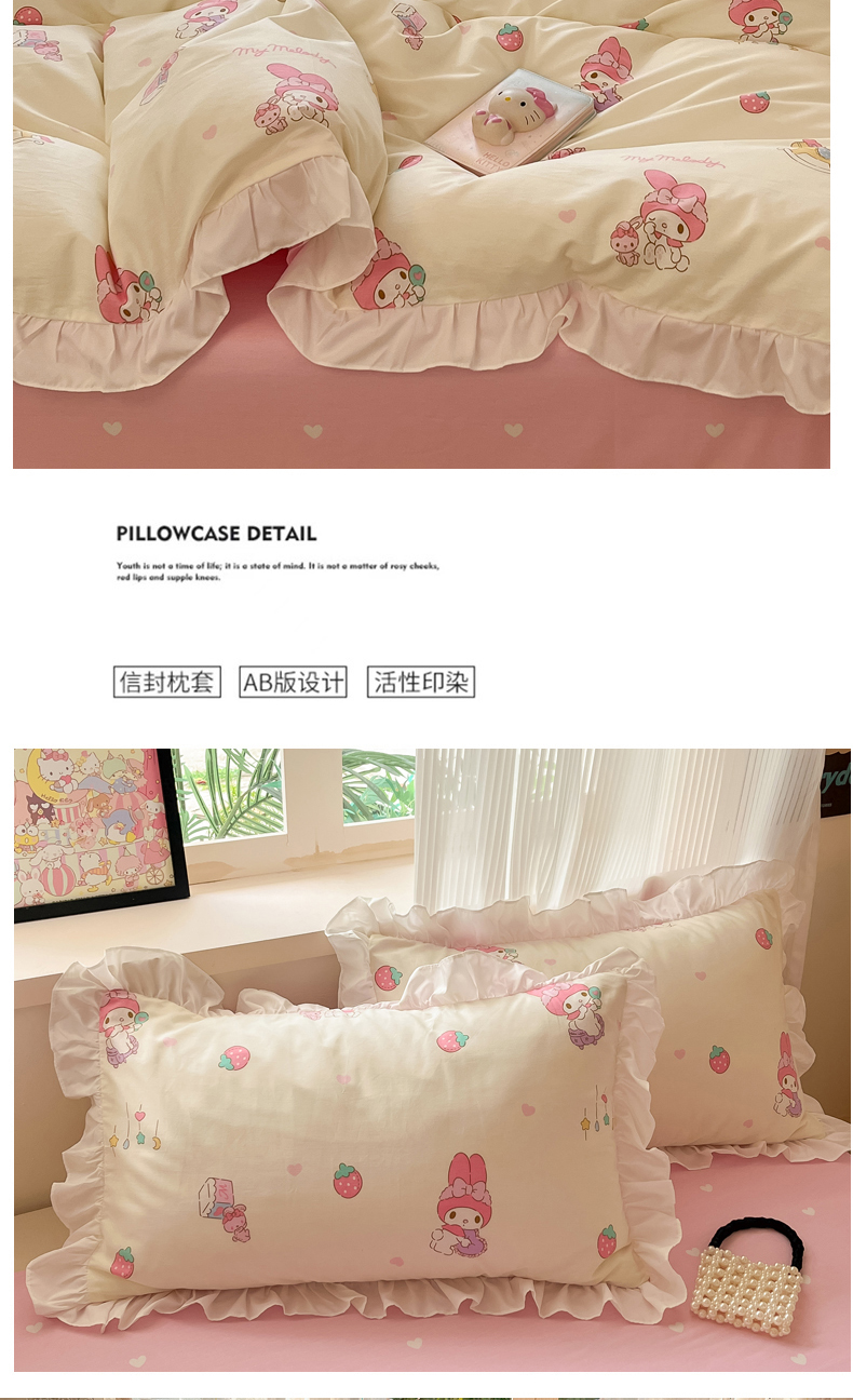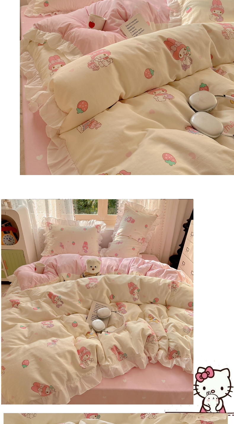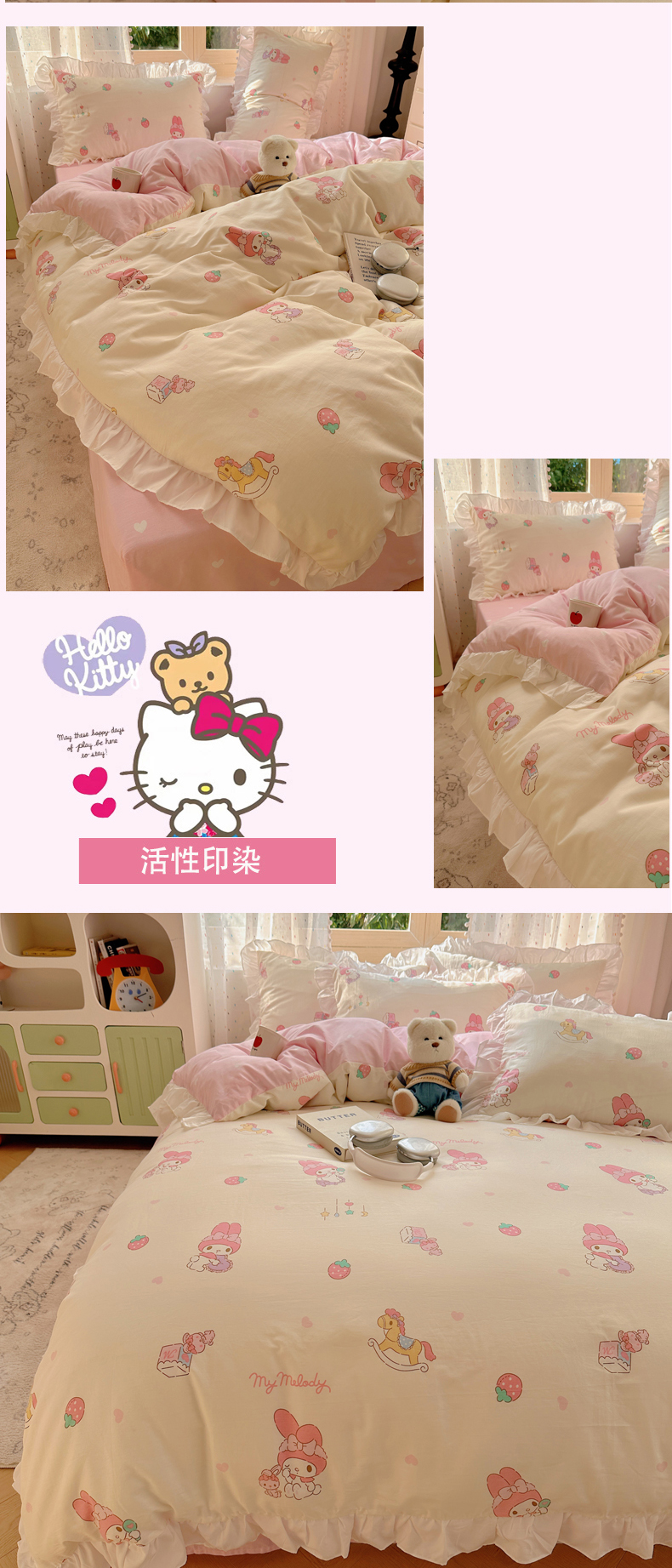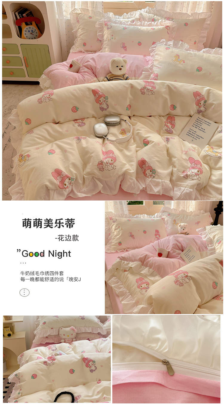 三朵家纺 2025新款全棉花边款三丽欧系列四件套 萌萌美乐蒂