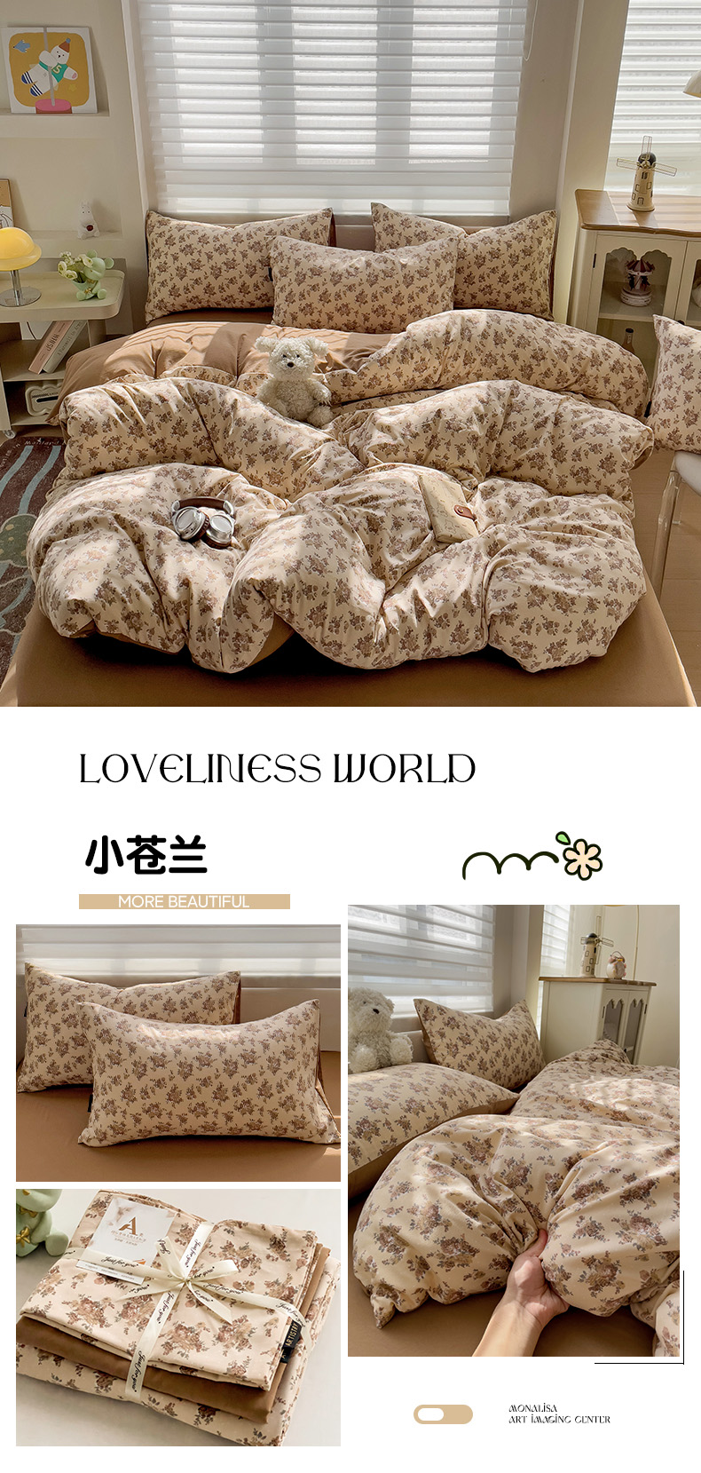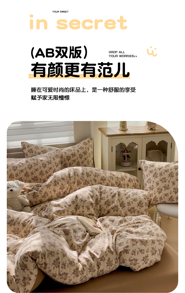 (总)娜娜 2026新款A类云朵锦花边四件套,动物世界-雾蓝,满天星-豆沙,满天星-浅紫,小雏菊-浅绿,小雏菊-玉色,樱花粉