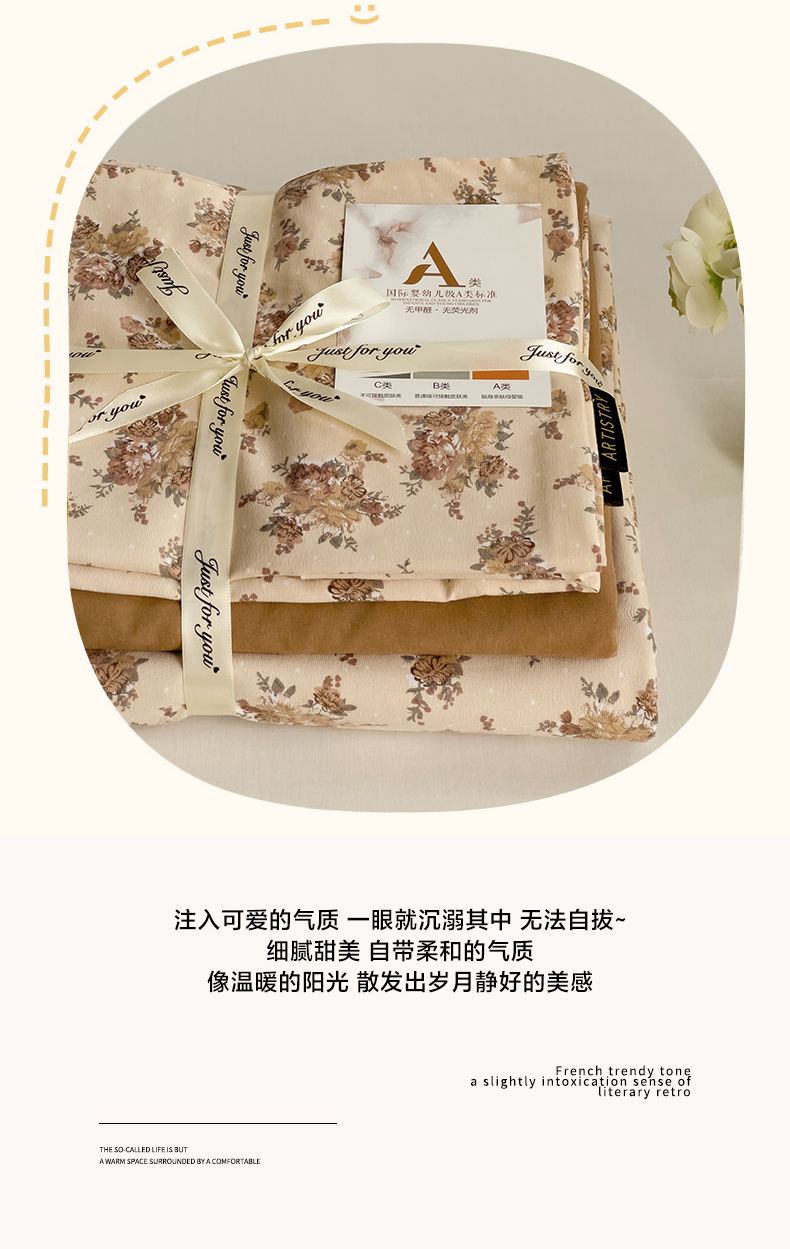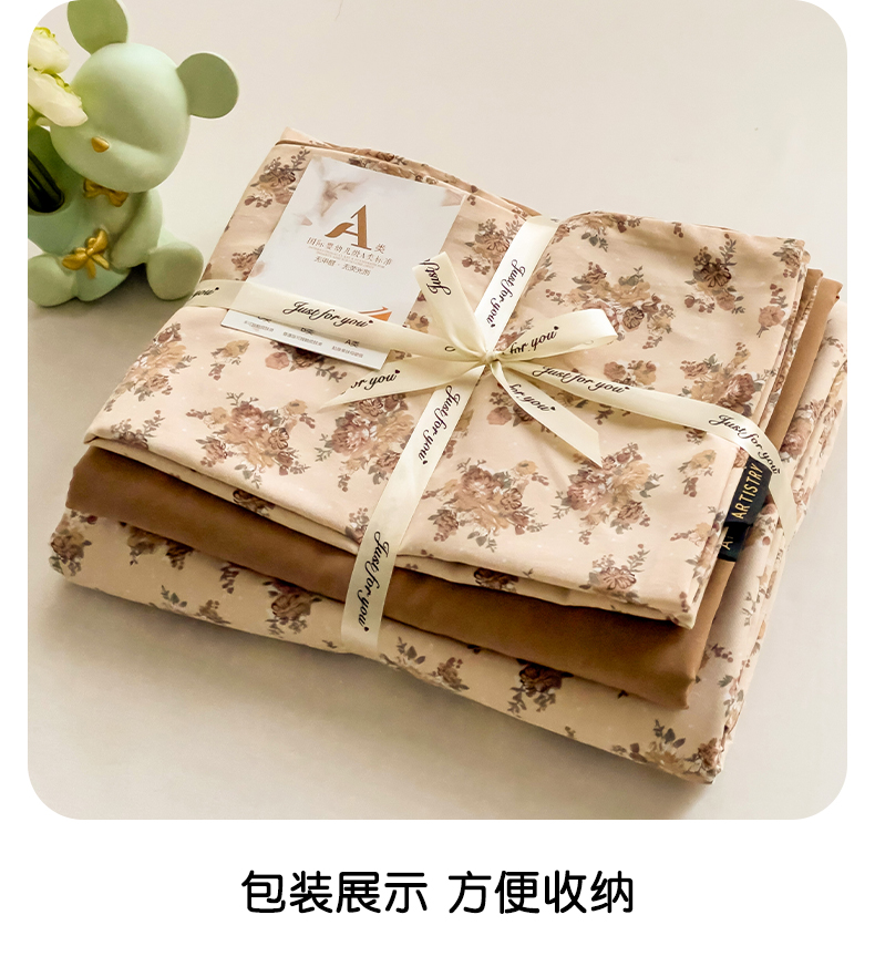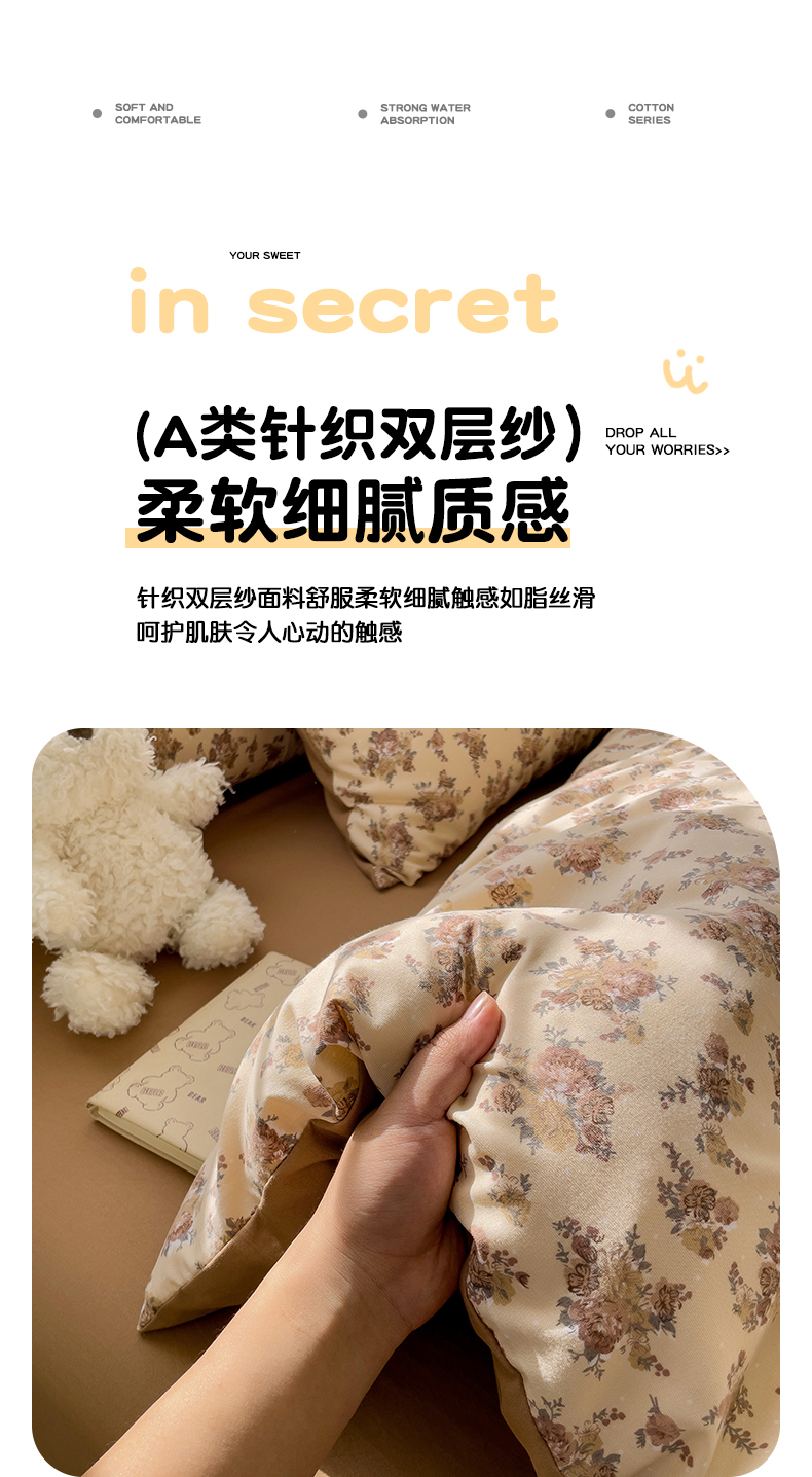 娜娜2025新款A类针织双层纱印花四件套 小苍兰