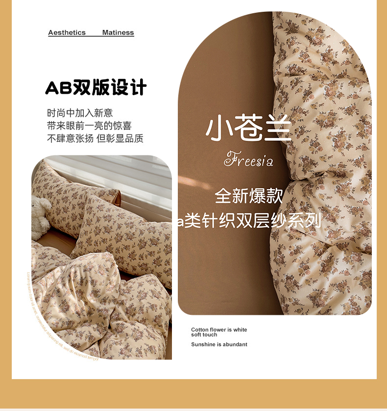 商品名称:娜娜2025新款A类针织双层纱印花四件套 小苍兰