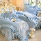 商品名称:2025秋冬新款230g全消光牛奶绒床裙款四件套纯色蕾丝花边刺绣蕾丝床裙款床盖款法式蕾丝公主粉奶油风四件套 甜心—婴儿蓝