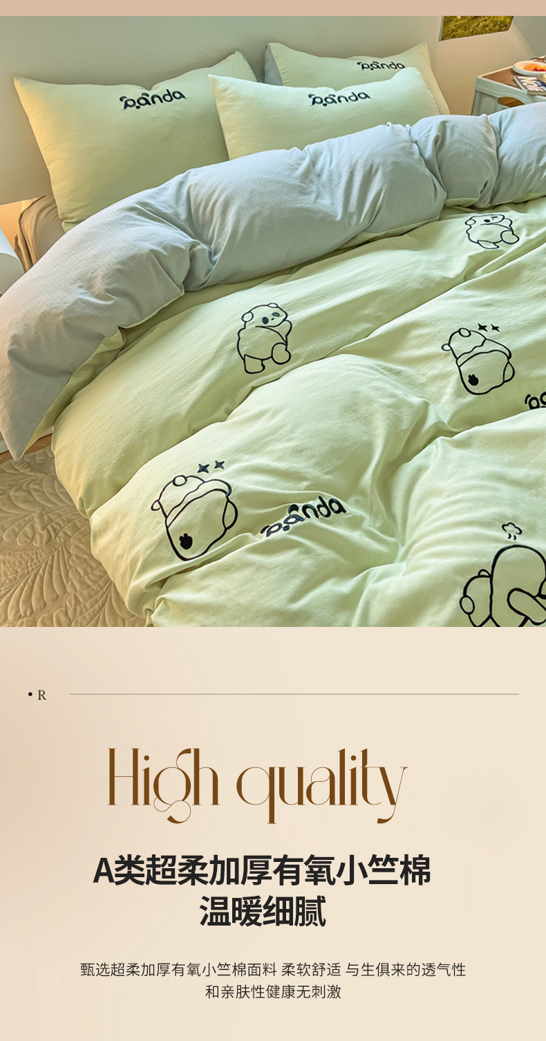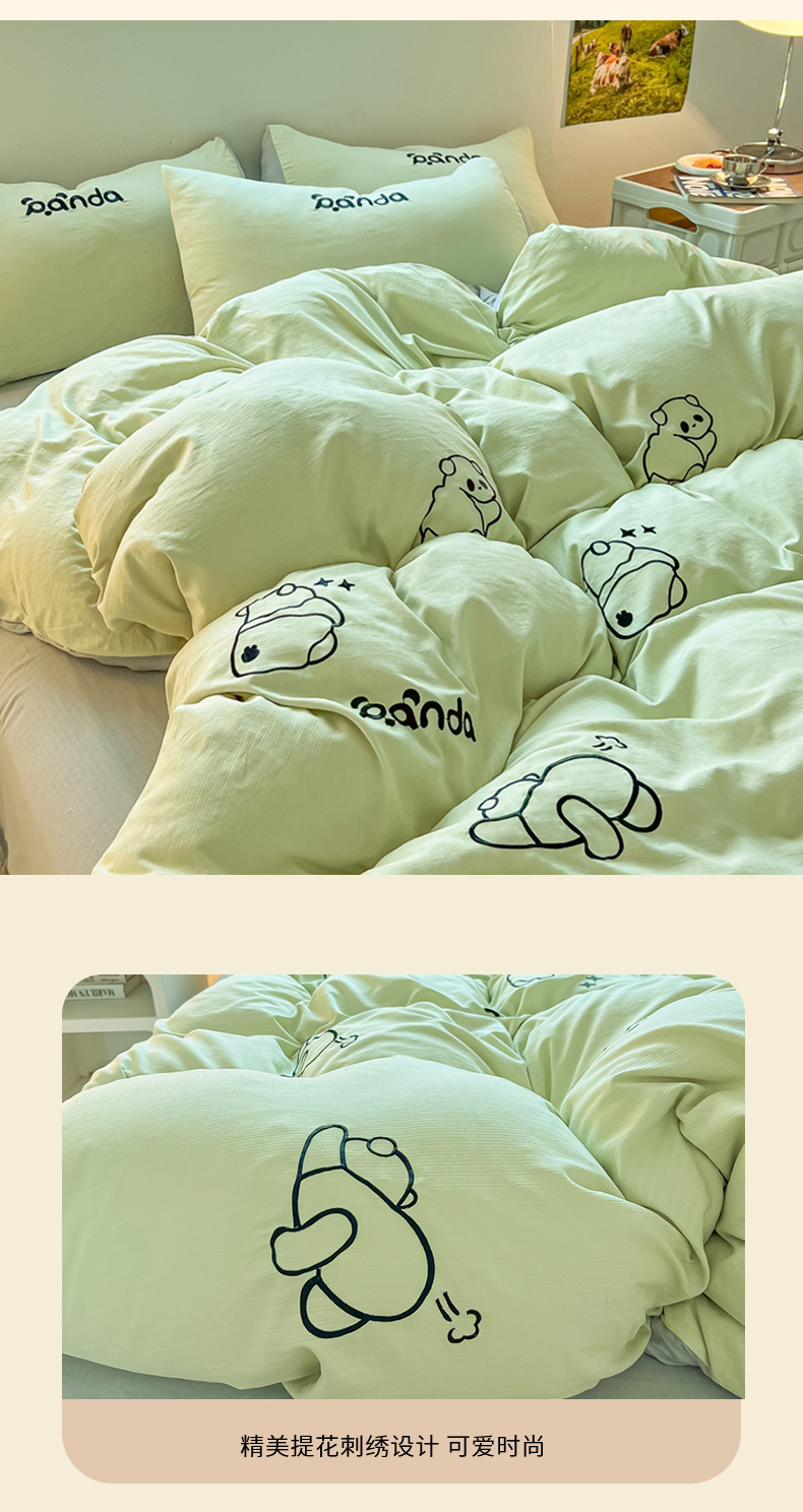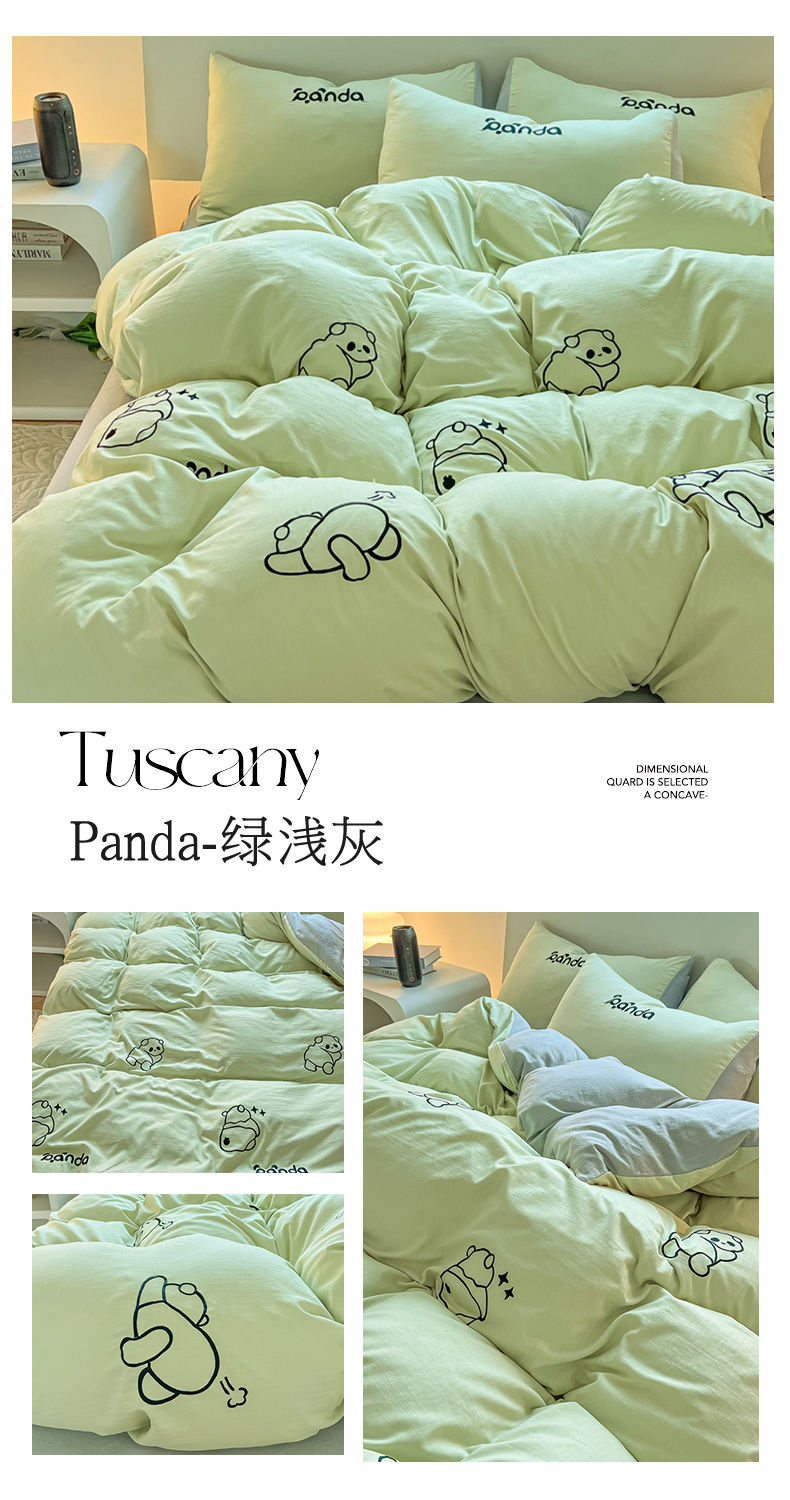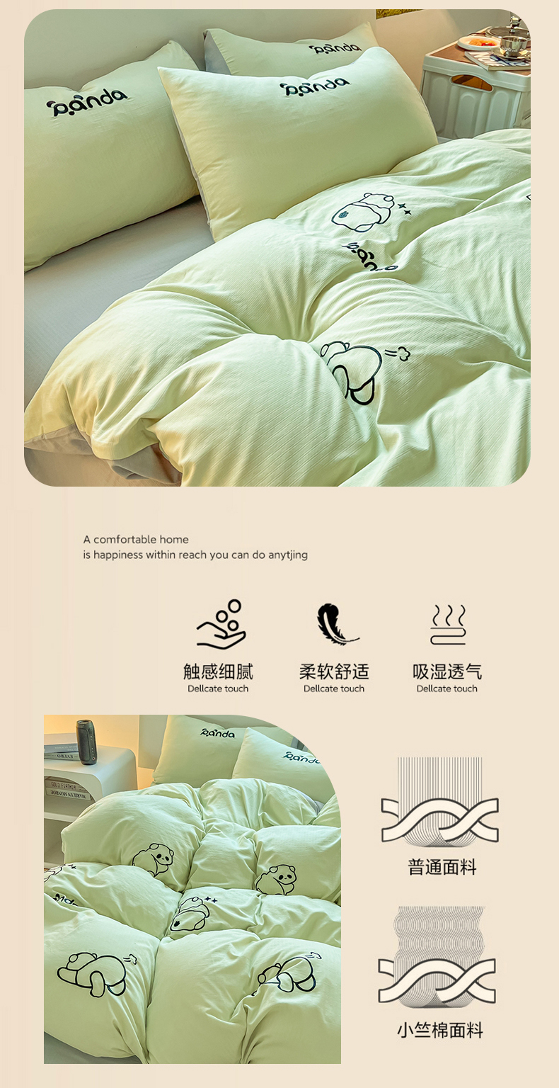 当前位置: 91家纺网 > 商品网购 > 床品套件 > 四件套 > 小竺棉四件套 > 多乐家纺 2025新款超柔加厚有氧提花针织小竺棉绣花四件套(提供买家秀) Panda-绿浅灰