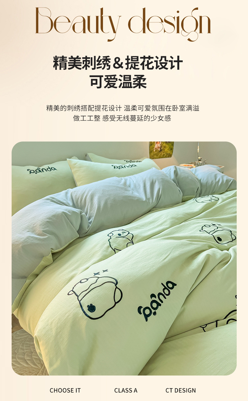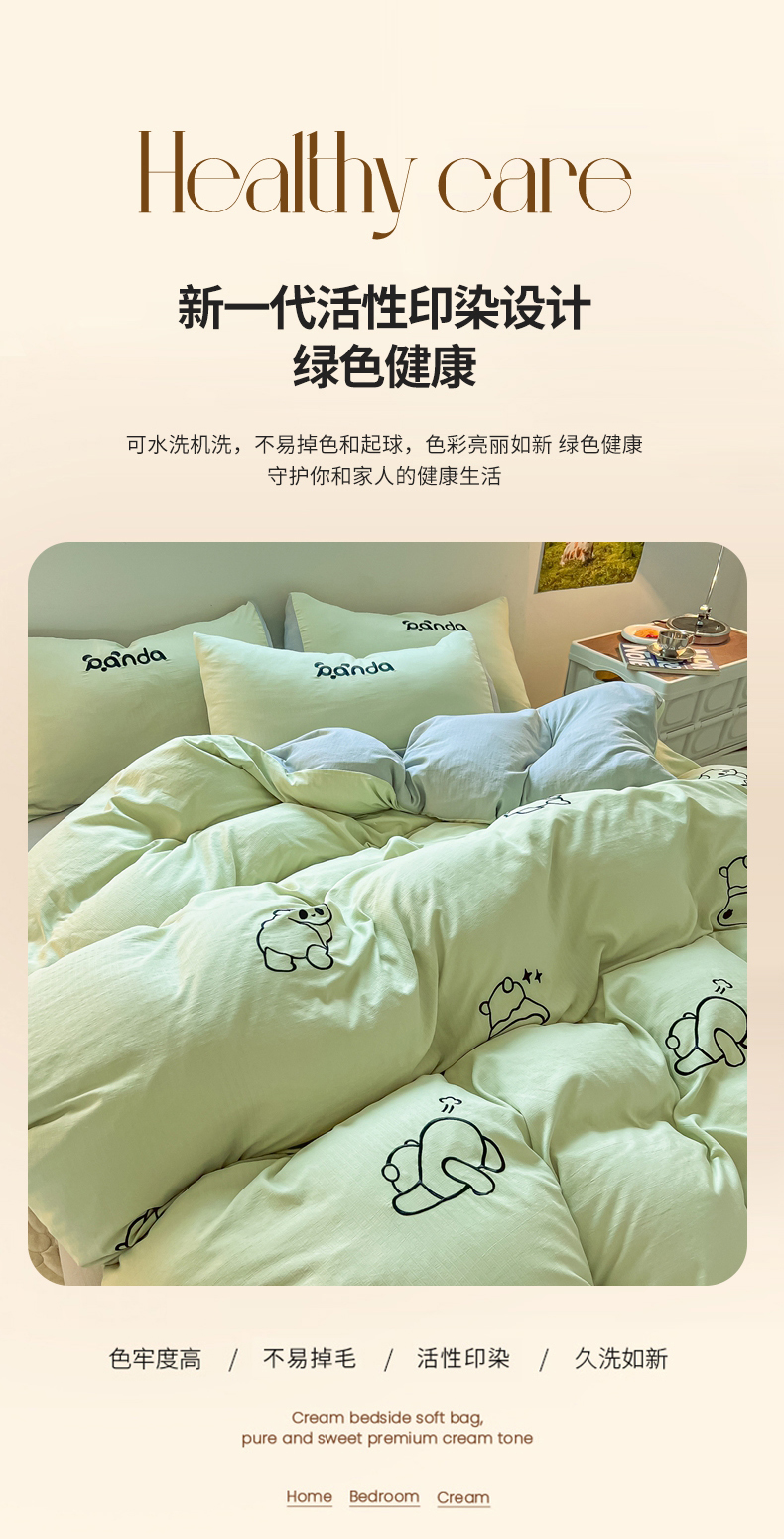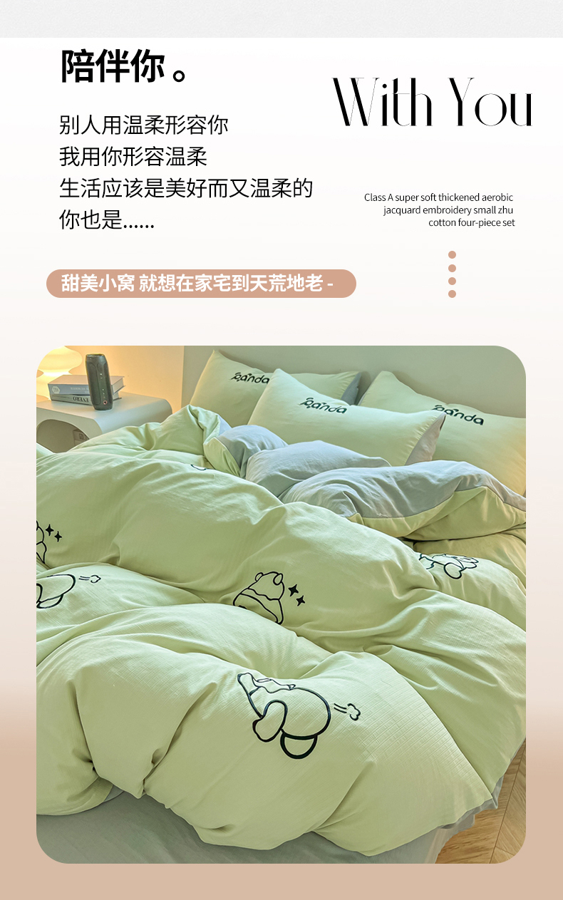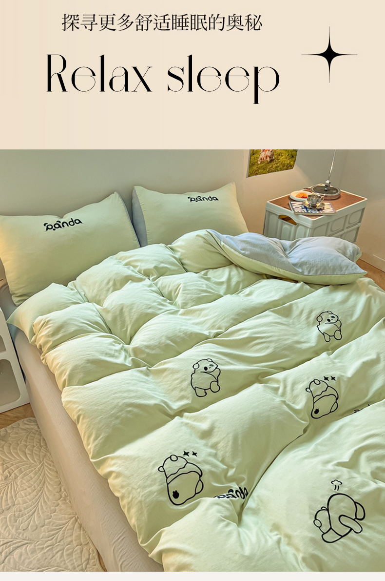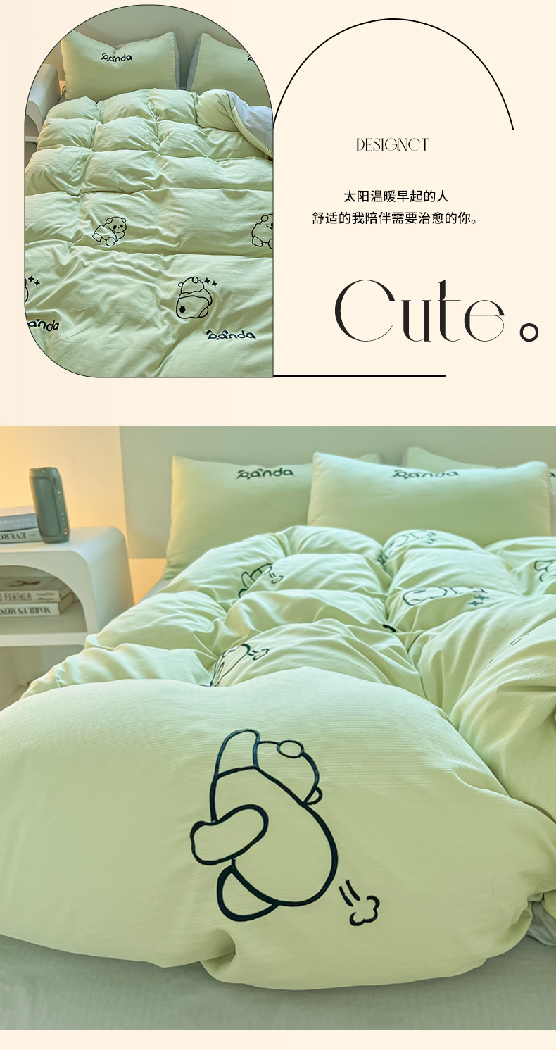 当前位置: 91家纺网 > 商品网购 > 床品套件 > 四件套 > 小竺棉四件套 > 多乐家纺 2025新款超柔加厚有氧提花针织小竺棉绣花四件套(提供买家秀) Panda-绿浅灰