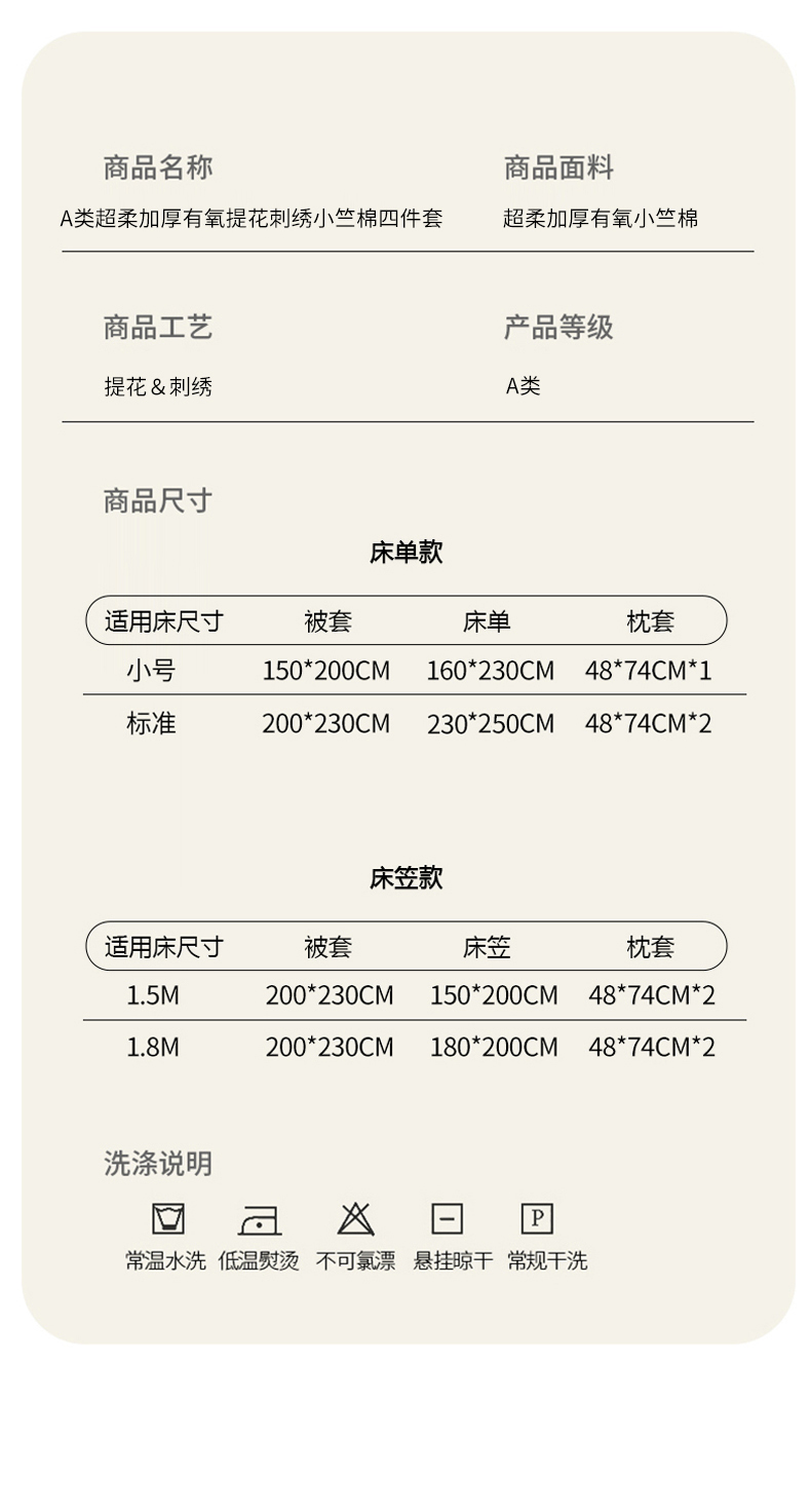 1.8m床笠款四件套(被套200*230) | ¥78.00 |