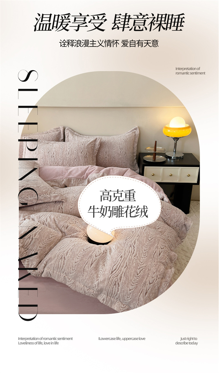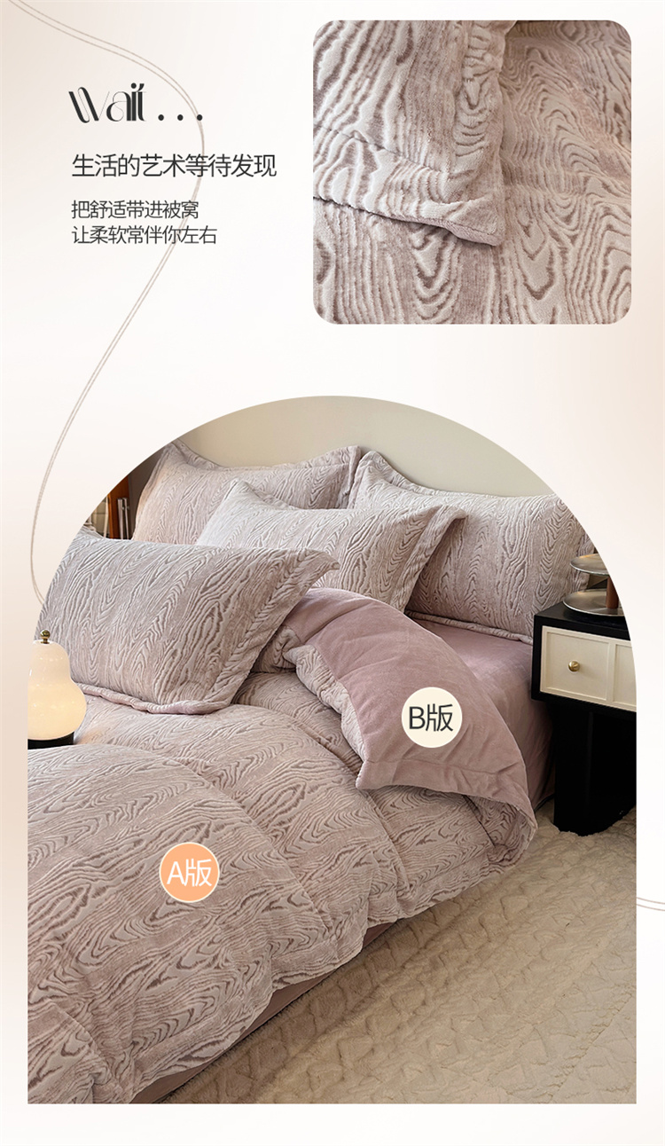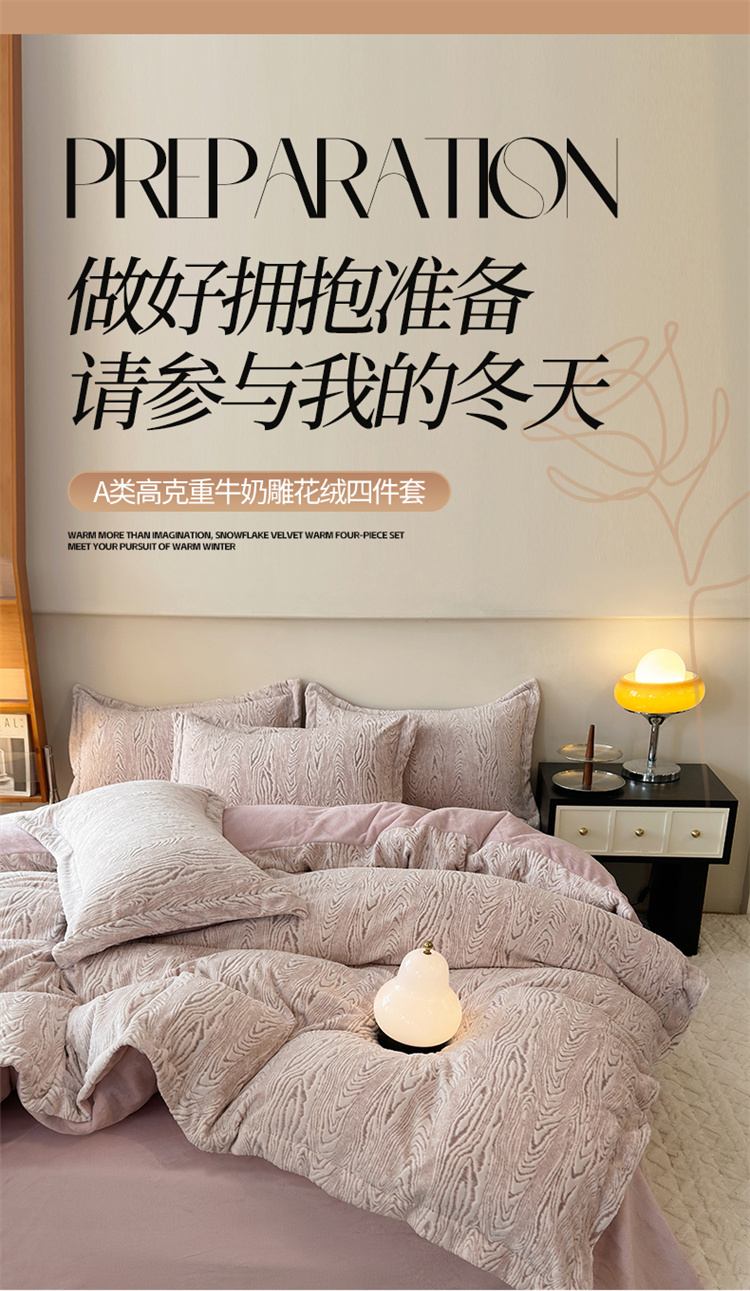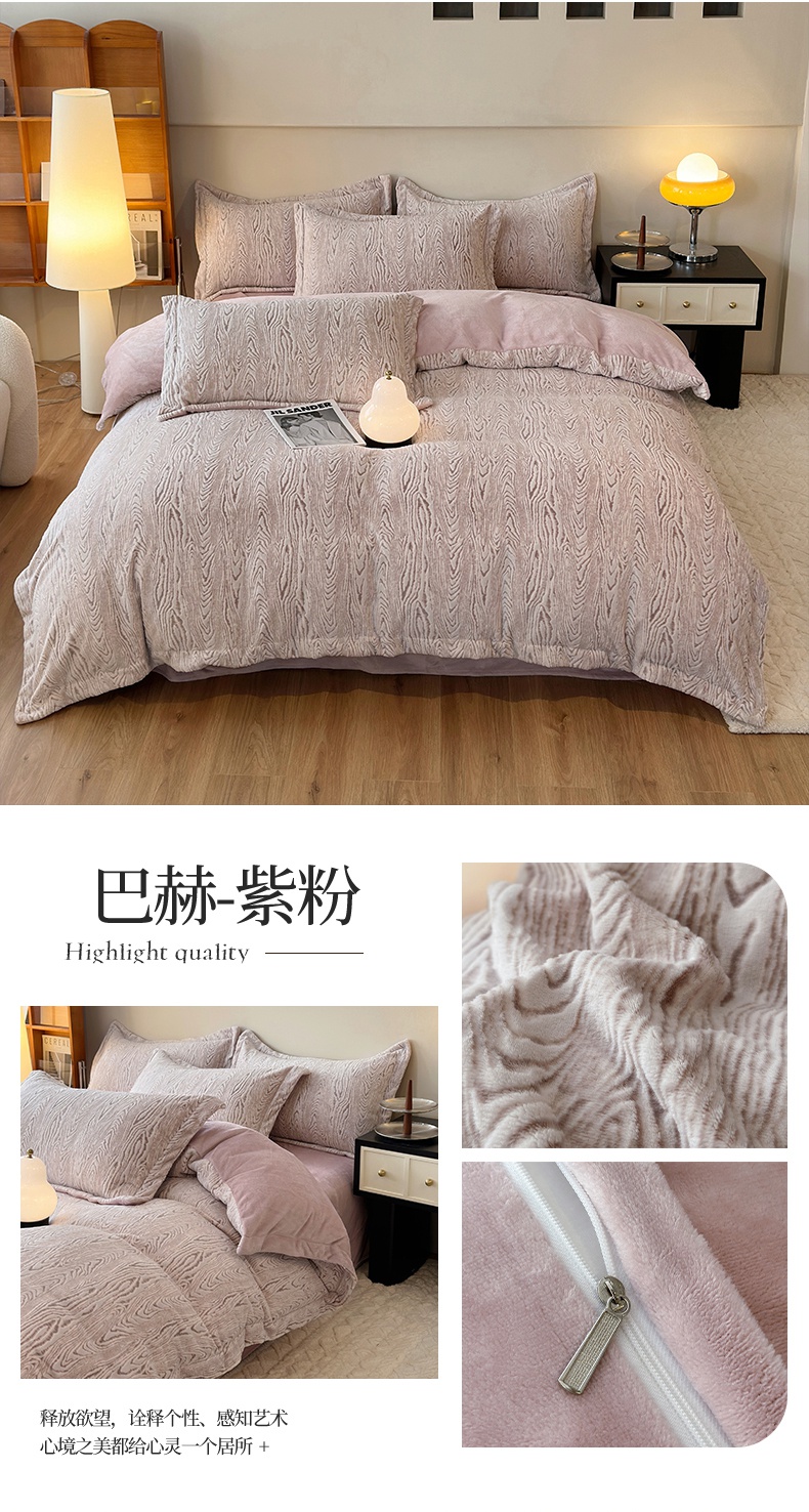 商品名称:(买家秀爆款不断货)A类母婴级牛奶雕花绒四件套珊瑚绒四件套雪花绒四件套舒雕花牛奶绒四件套北欧风牛奶绒 巴赫(紫粉)