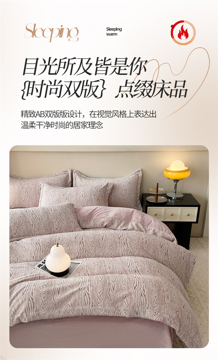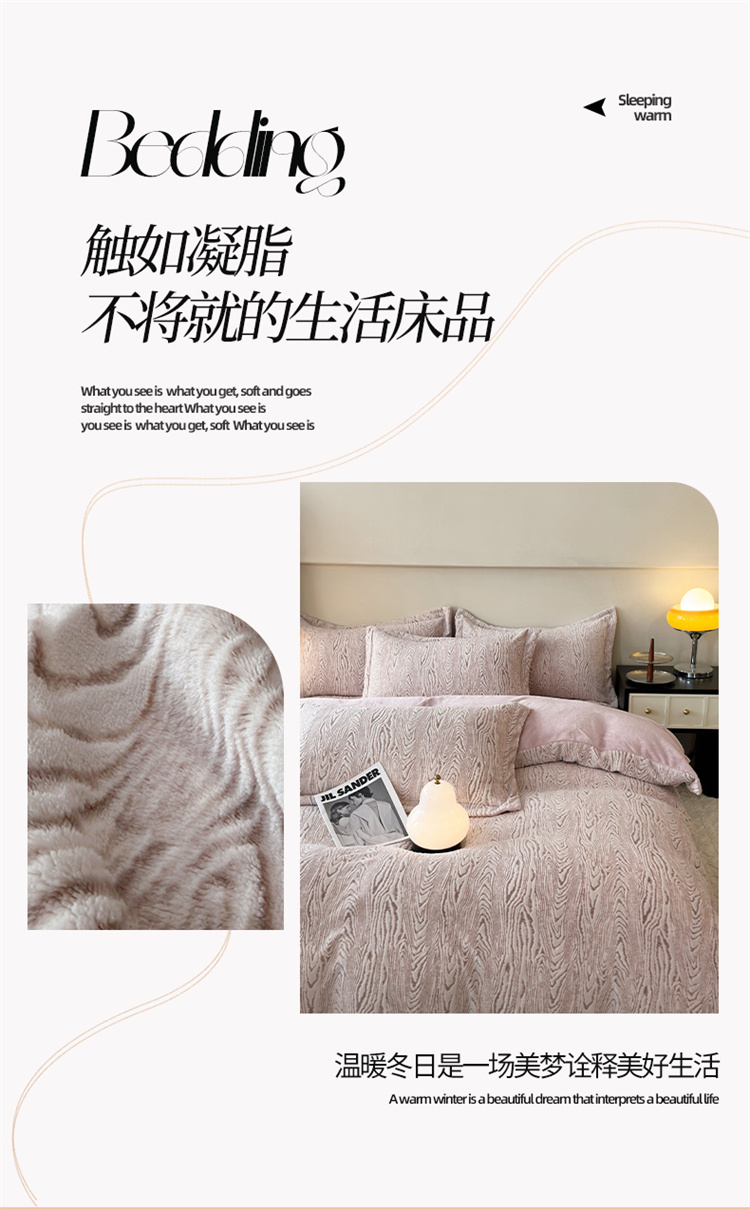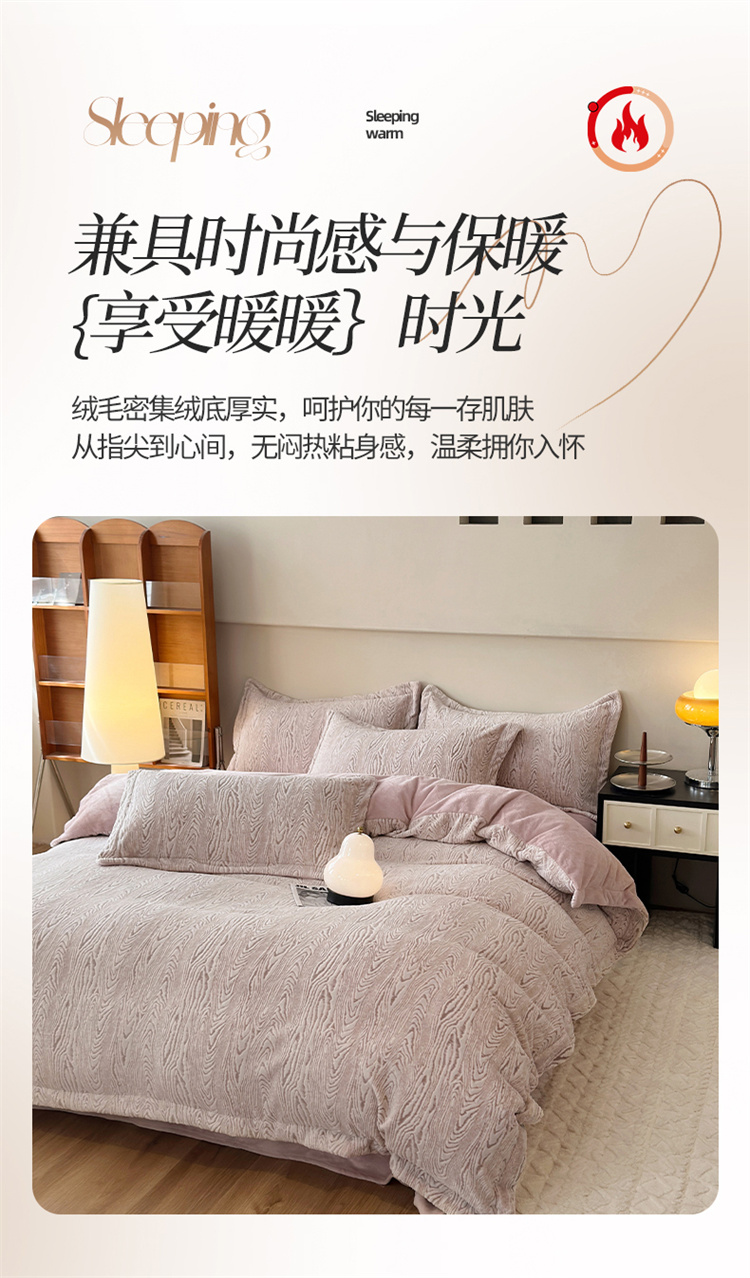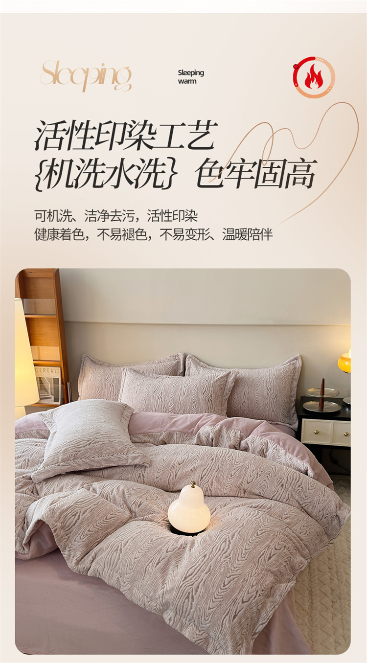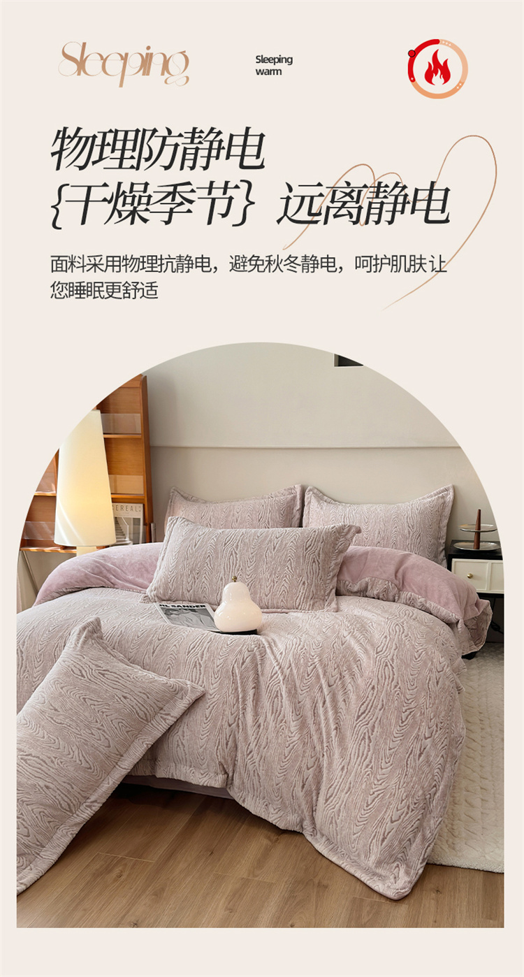 商品名称:(买家秀爆款不断货)A类母婴级牛奶雕花绒四件套珊瑚绒四件套雪花绒四件套舒雕花牛奶绒四件套北欧风牛奶绒 巴赫(紫粉)