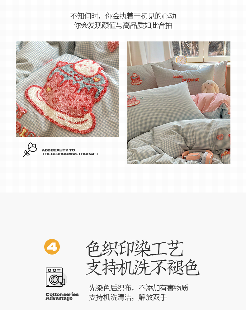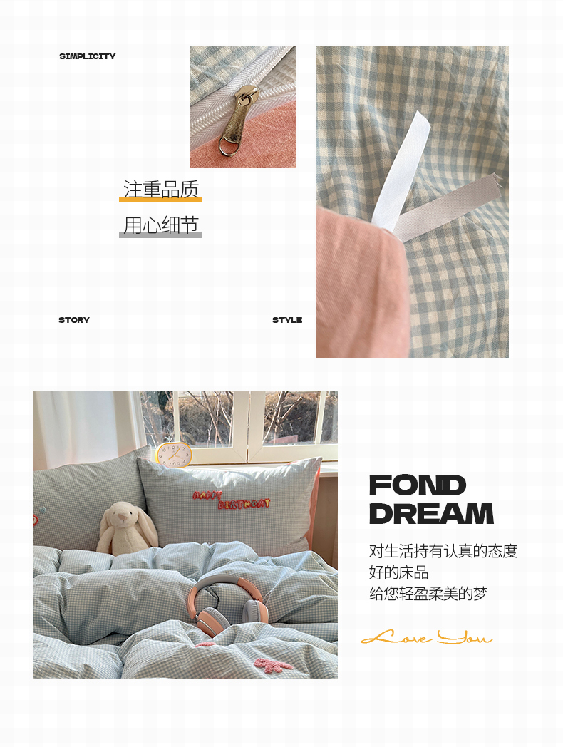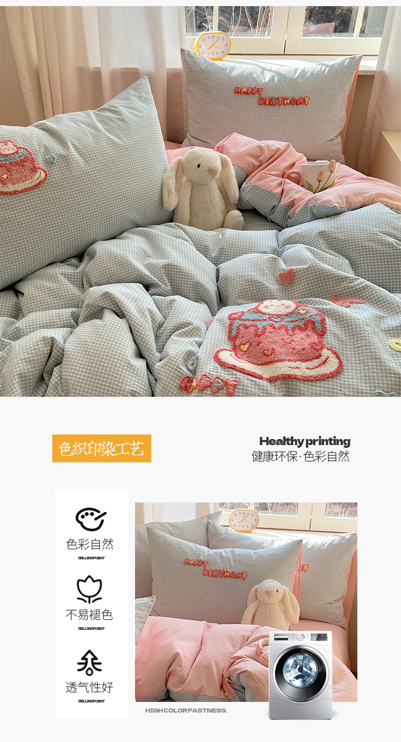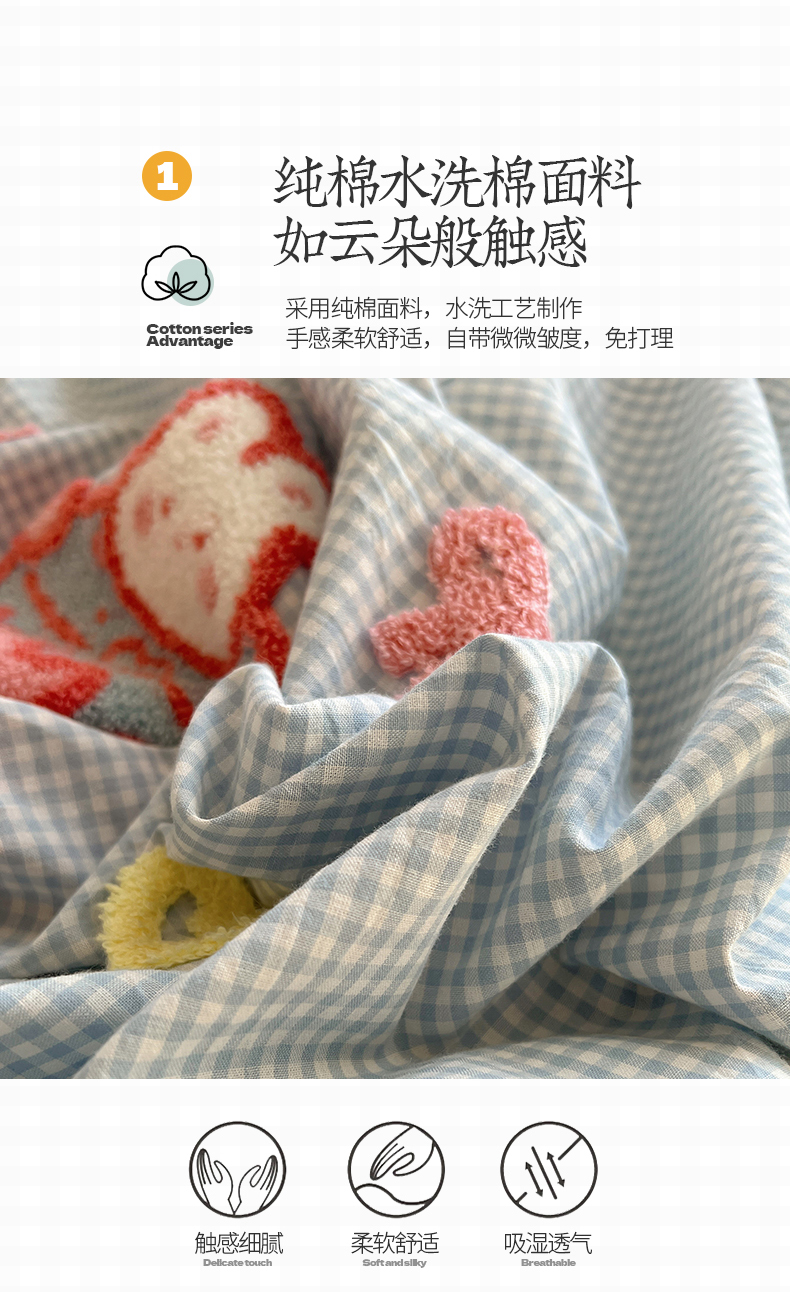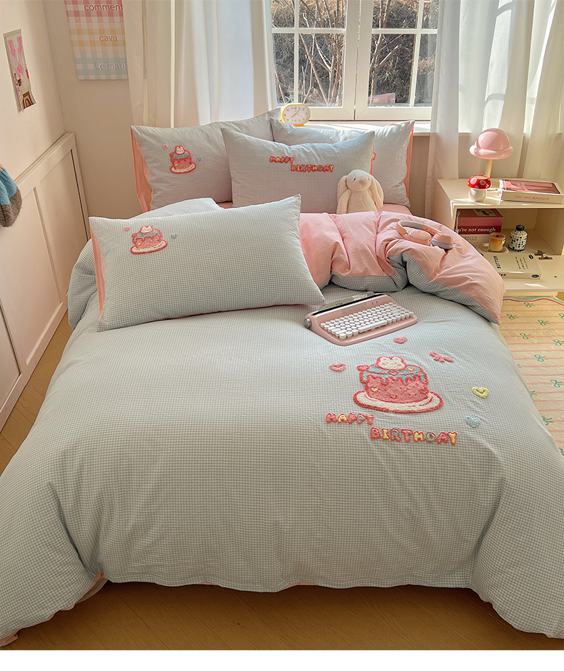 当前位置: 91家纺网 > 商品网购 > 床品套件 > 四件套 > 水洗棉四件套 > 桃子家居 2025新款A类ins纯棉色织水洗棉毛巾绣奶油少女猫咪兔兔混搭系列四件套 色织水洗棉-奶油兔蓝粉