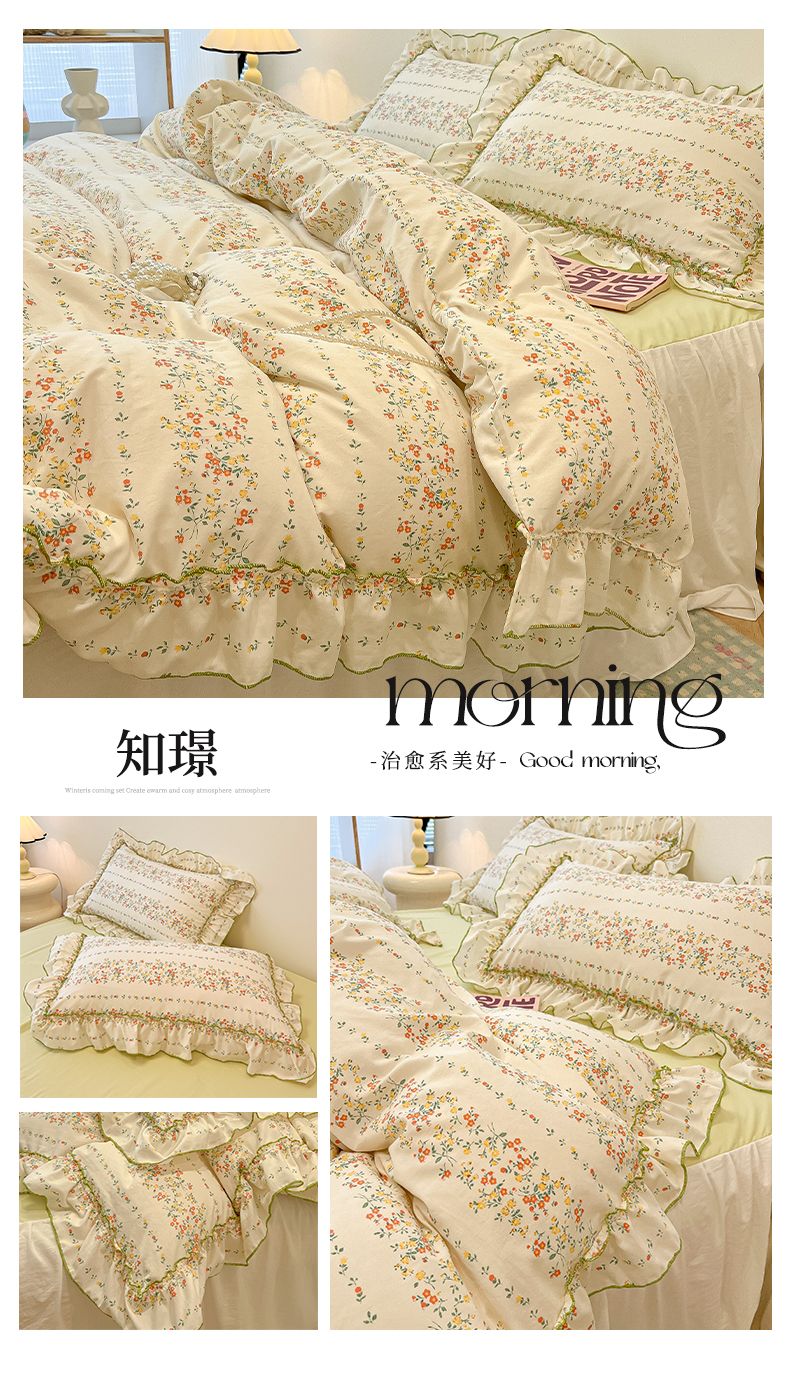 当前位置: 91家纺网 > 商品网购 > 床品套件 > 四件套 > 其它四件套 > 盼季家纺 2025新款公主风花边小清新水洗棉床上四件套床单被套床裙三件套-风格一 知景