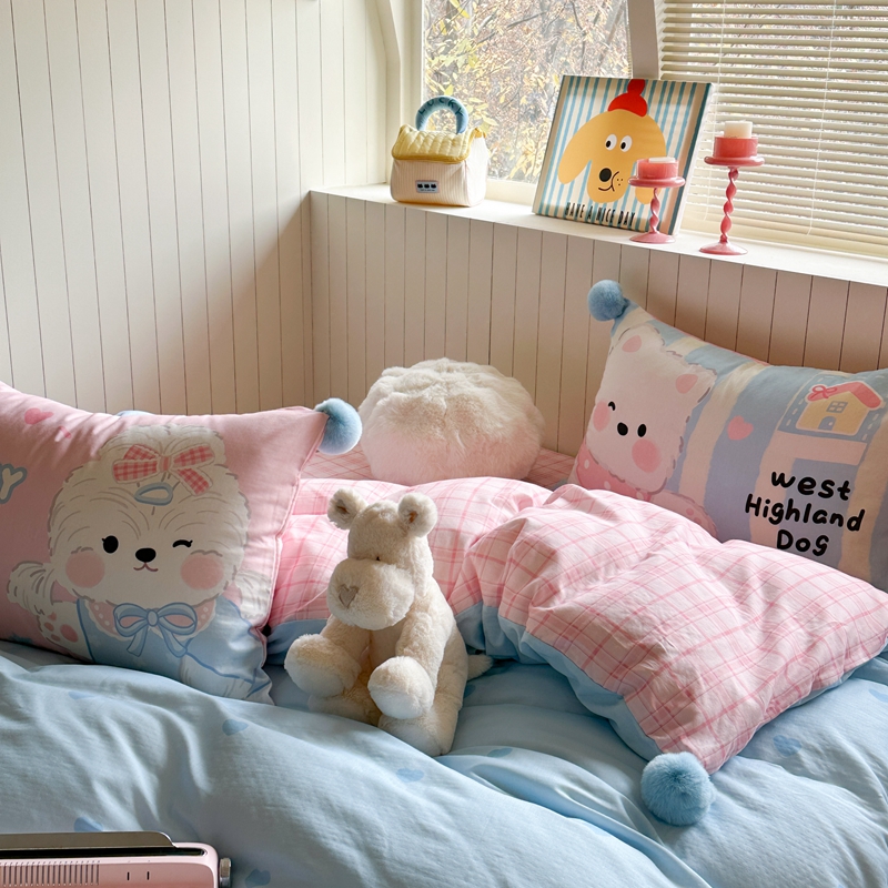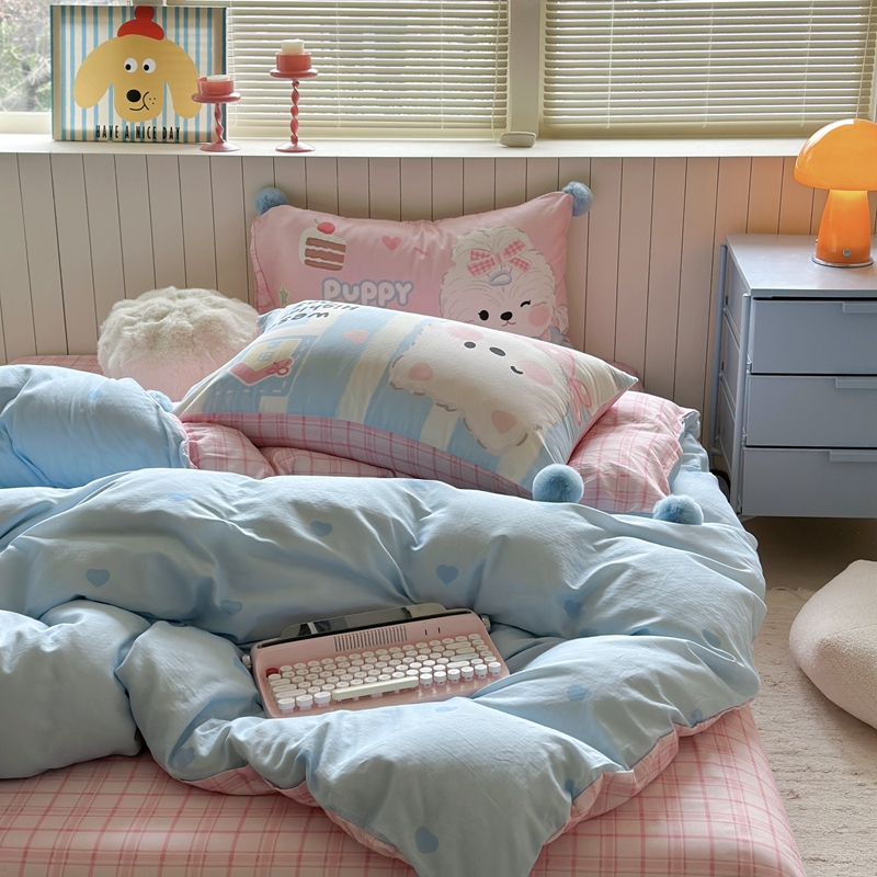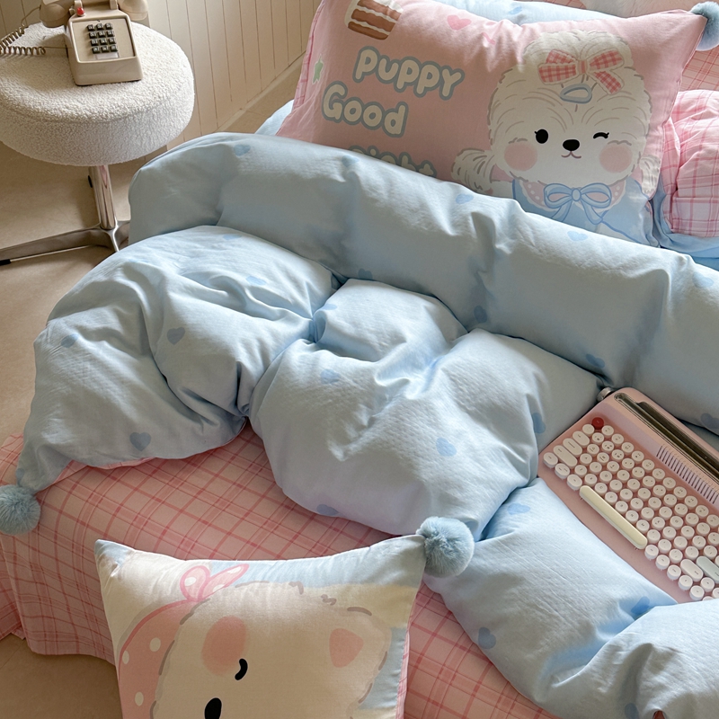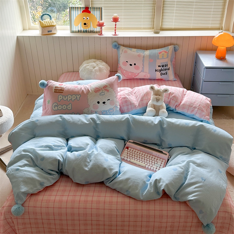 (总)柚子YOUTH 225新款全棉双层纱球球款四件套,薄荷绿条,波点霉霉,波点小丑,蓝心,芊芊结,碎花点点