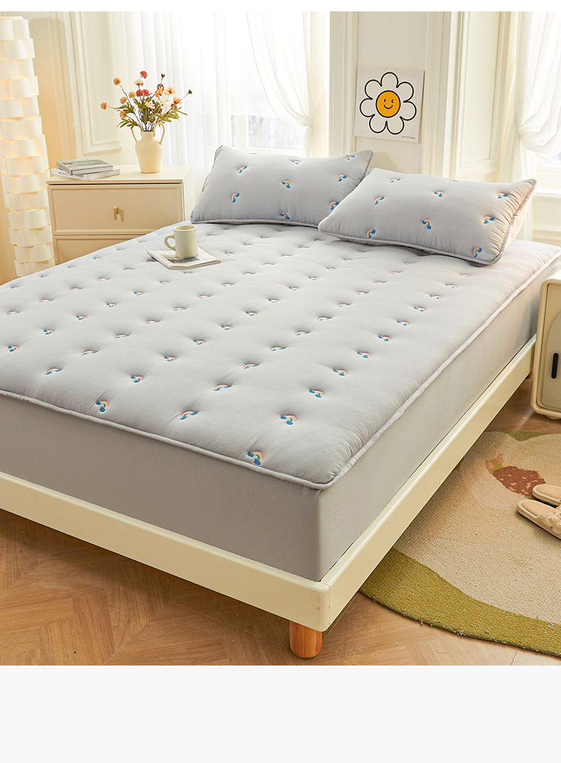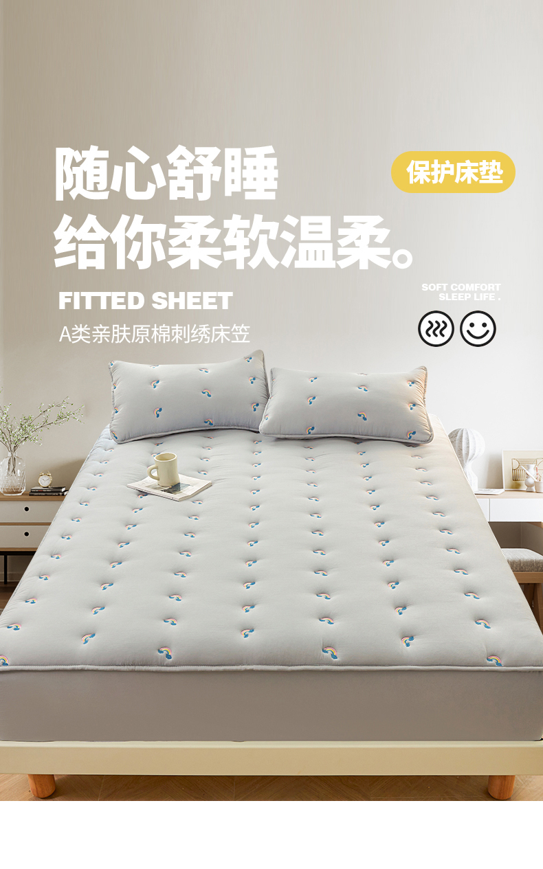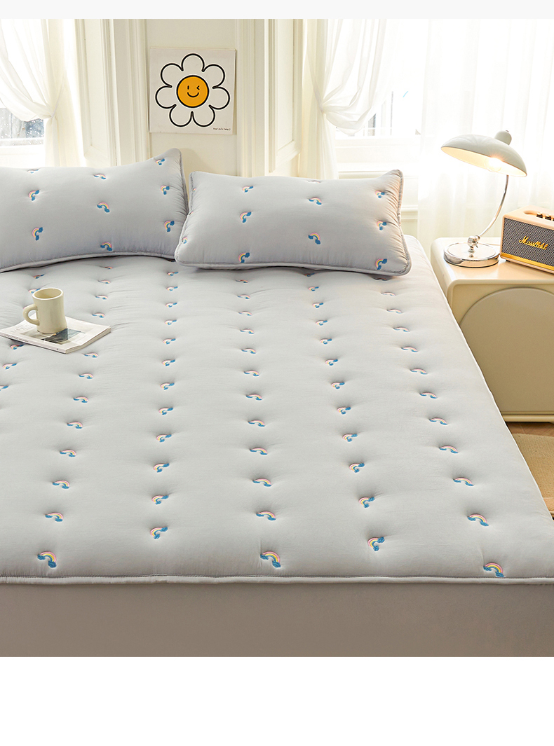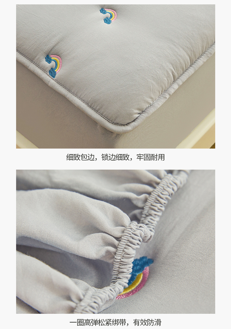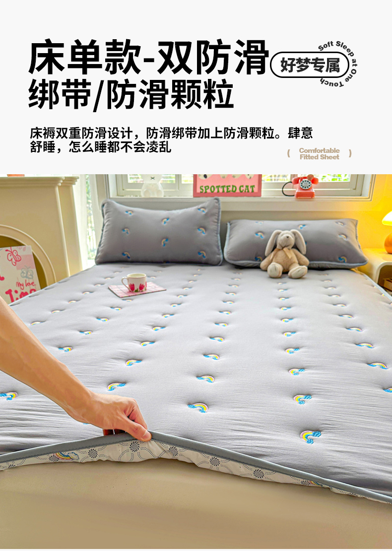商品名称:兄弟坊 2025新款亲肤原棉刺绣床垫床护垫学生床垫床笠 银灰-床单款