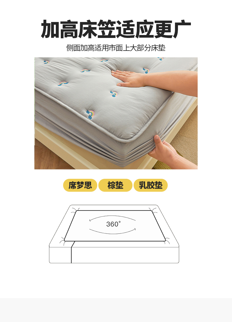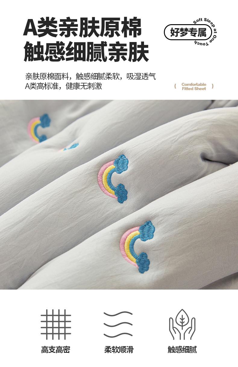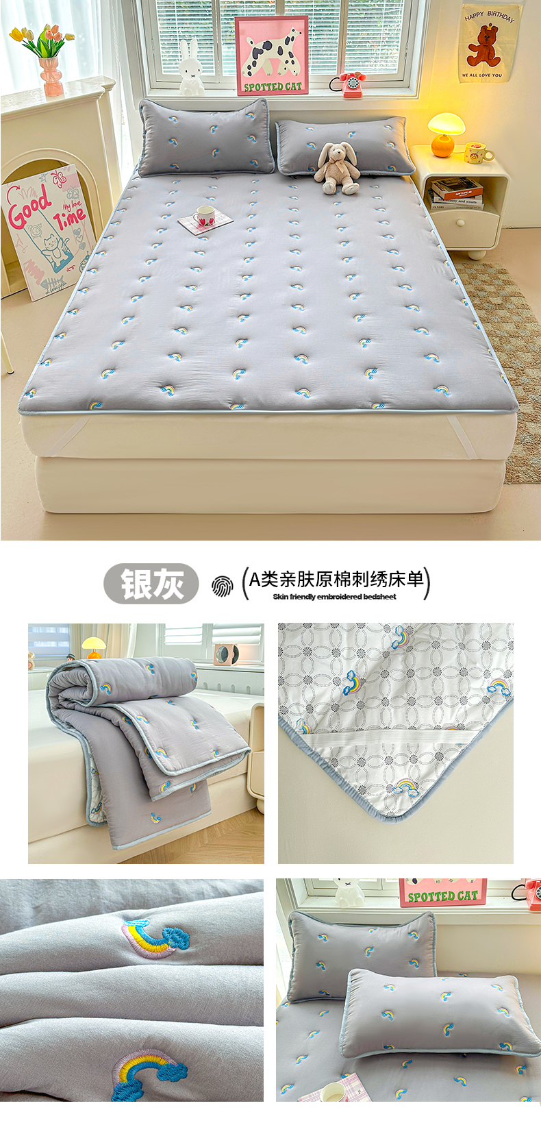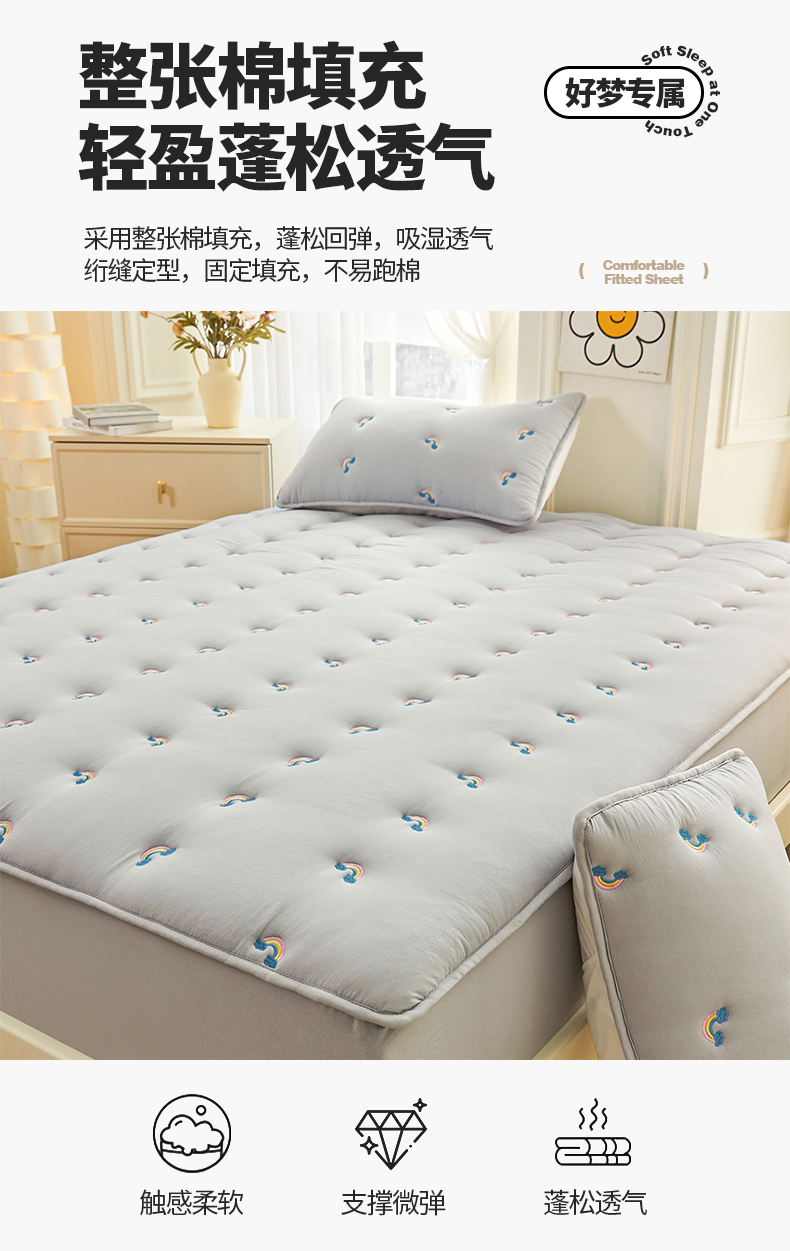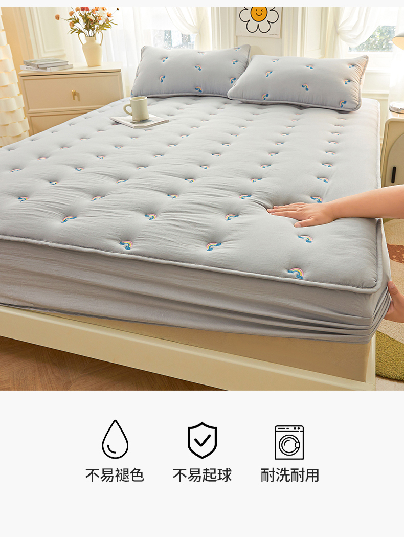 商品名称:兄弟坊 2025新款亲肤原棉刺绣床垫床护垫学生床垫床笠 银灰-床单款