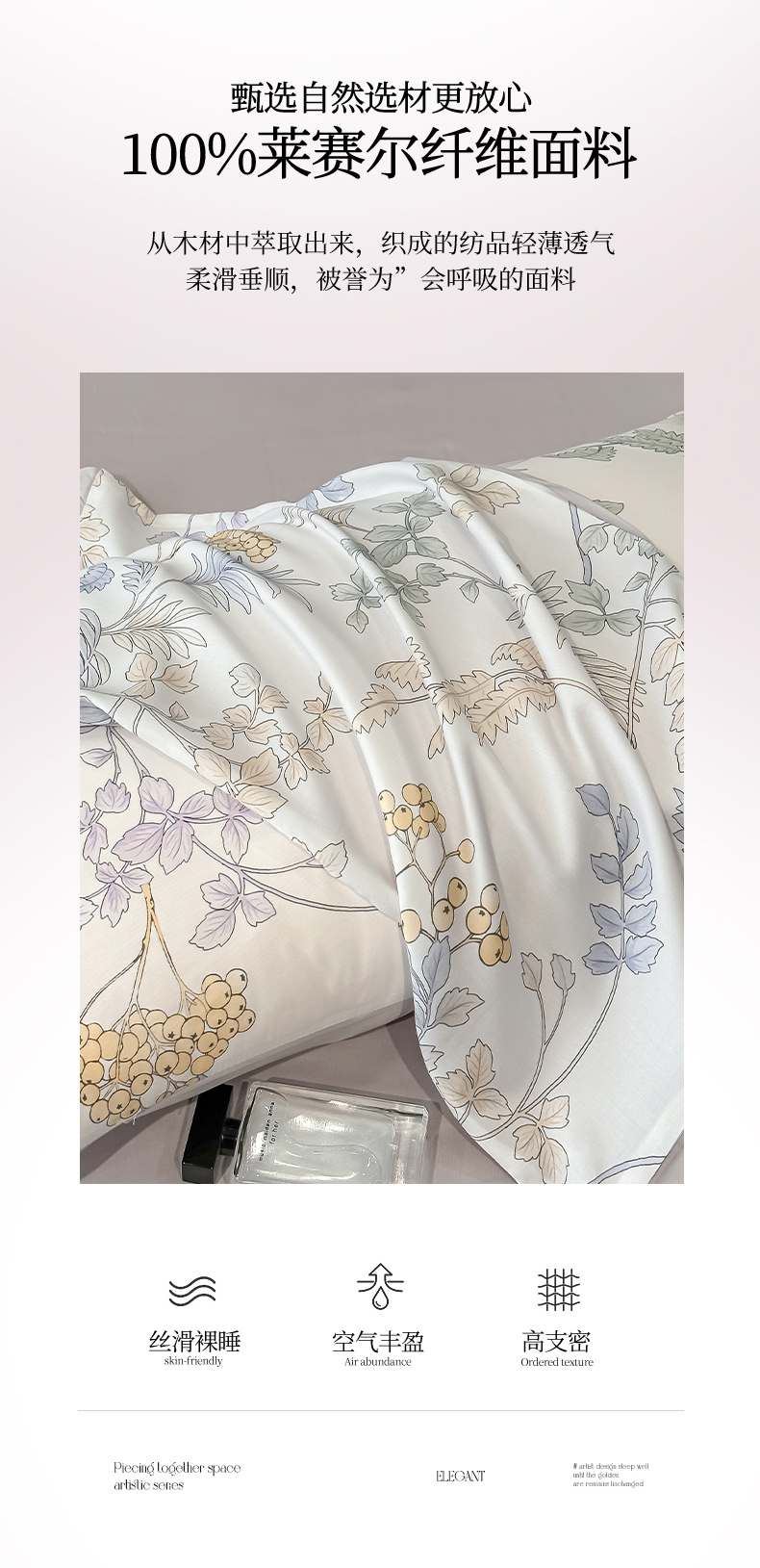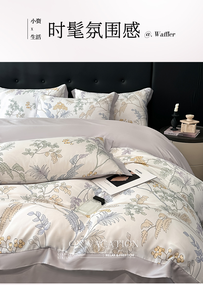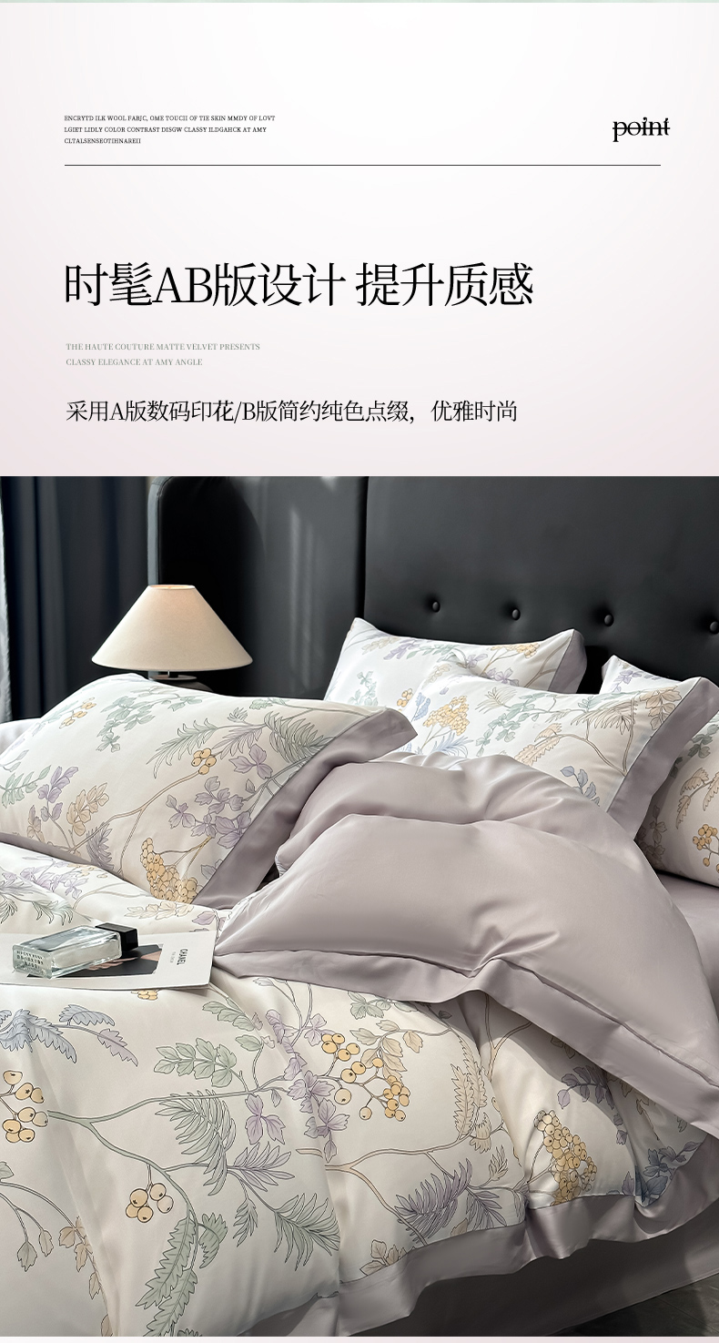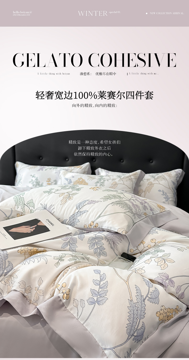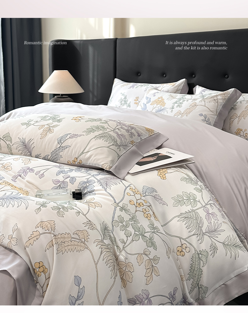 迷尚家居 2025新款100%莱赛尔数码印花四件套 析漫枝