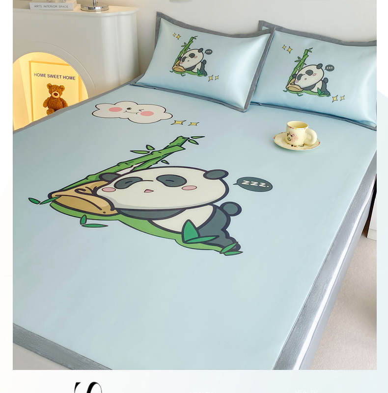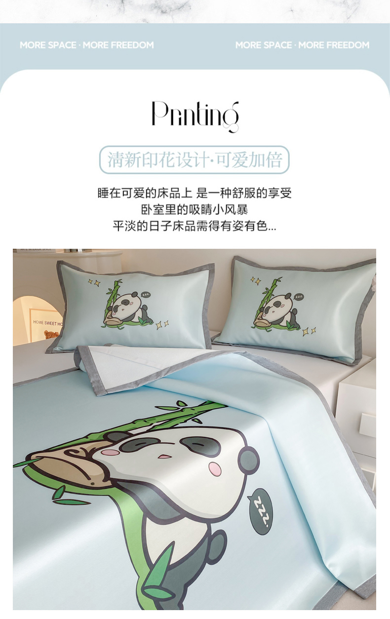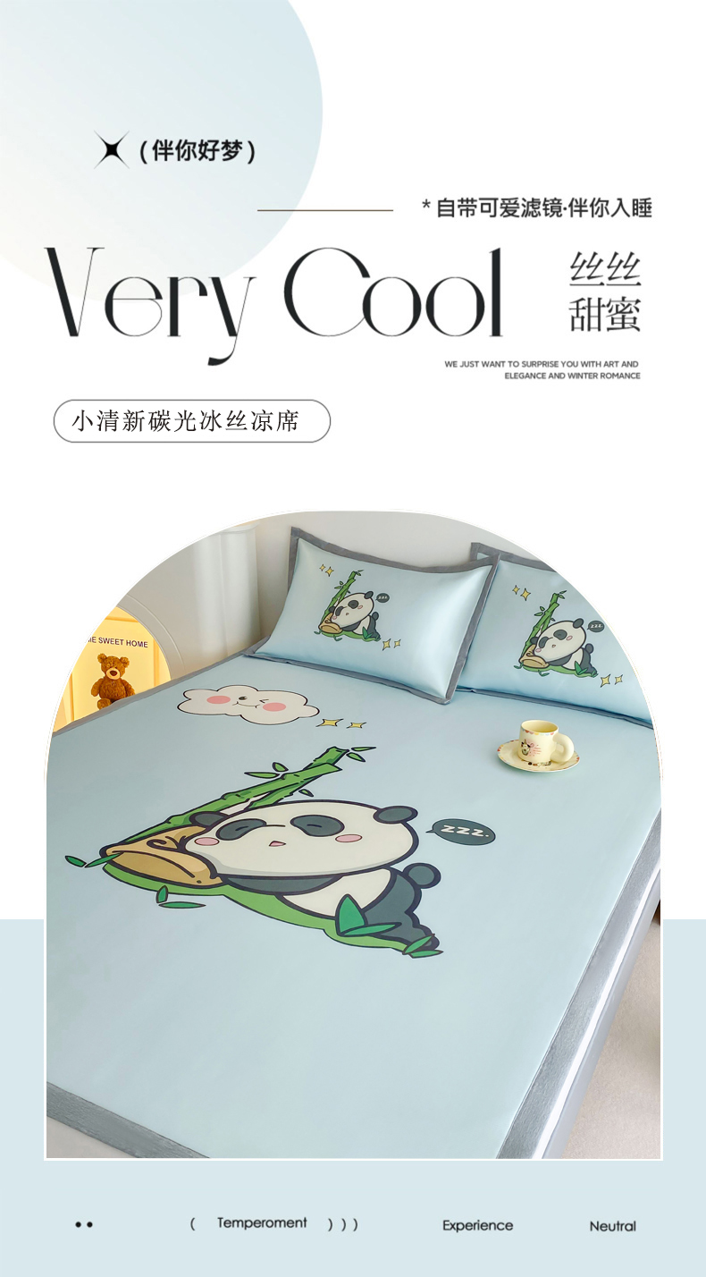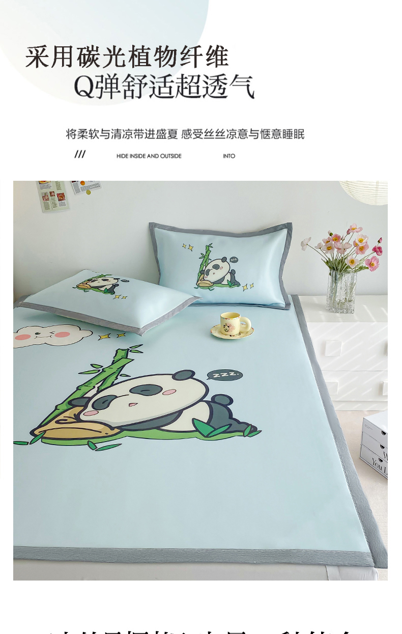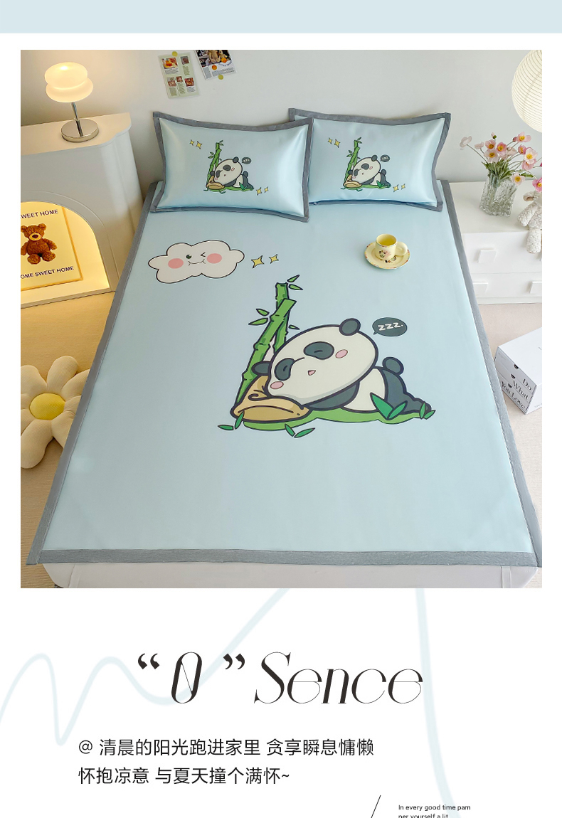 商品名称:邵依 2025新款数码印花烫光冰丝席凉席子藤席 绿竹熊猫