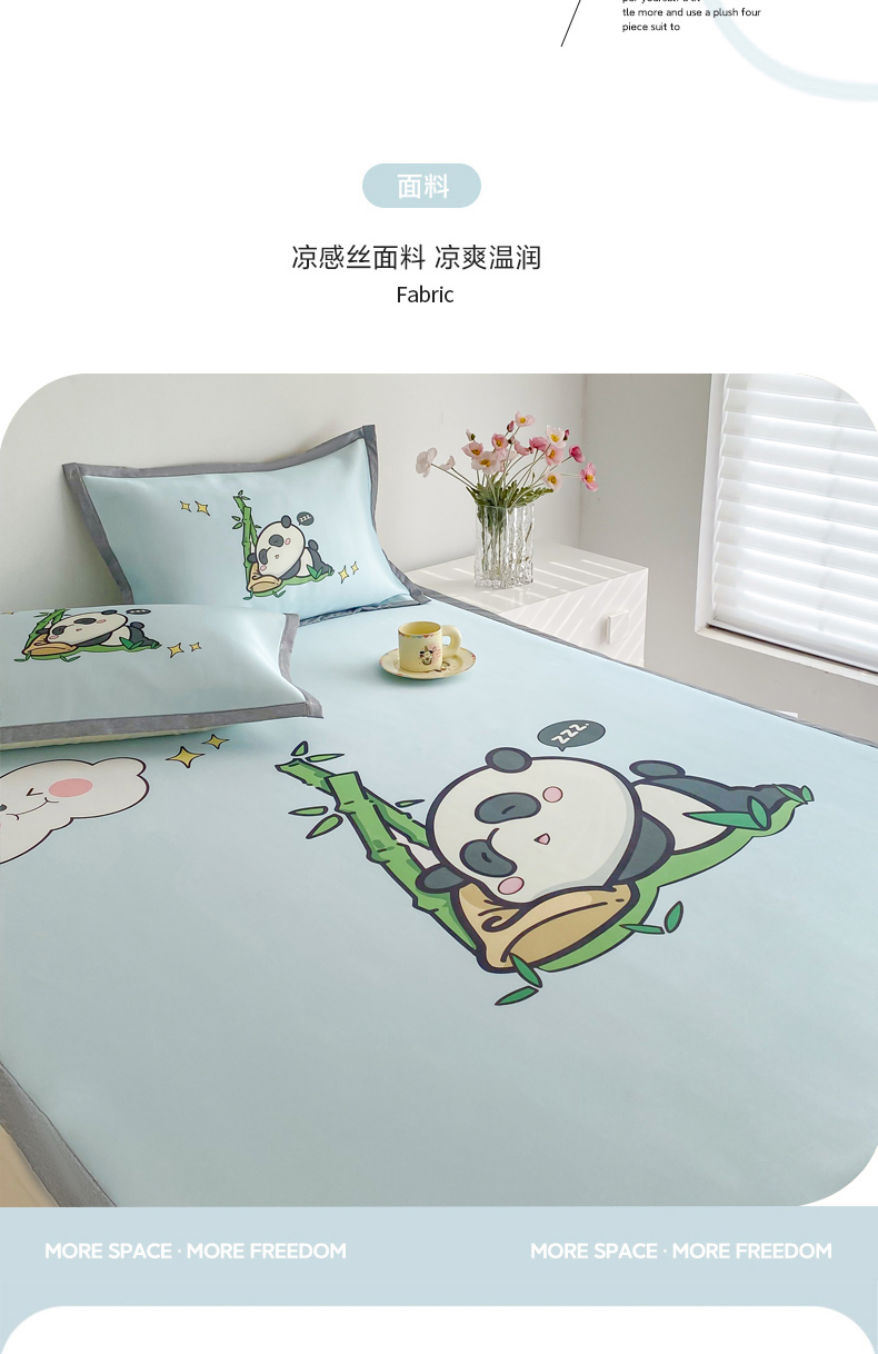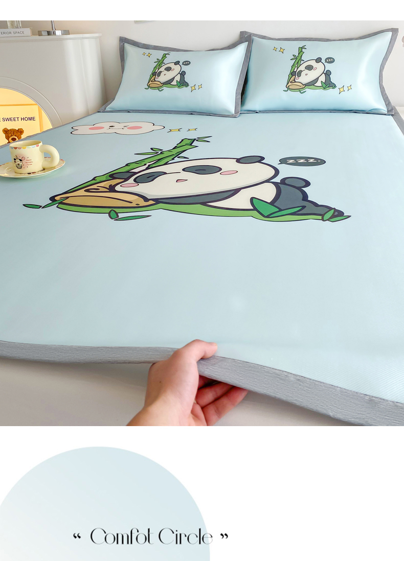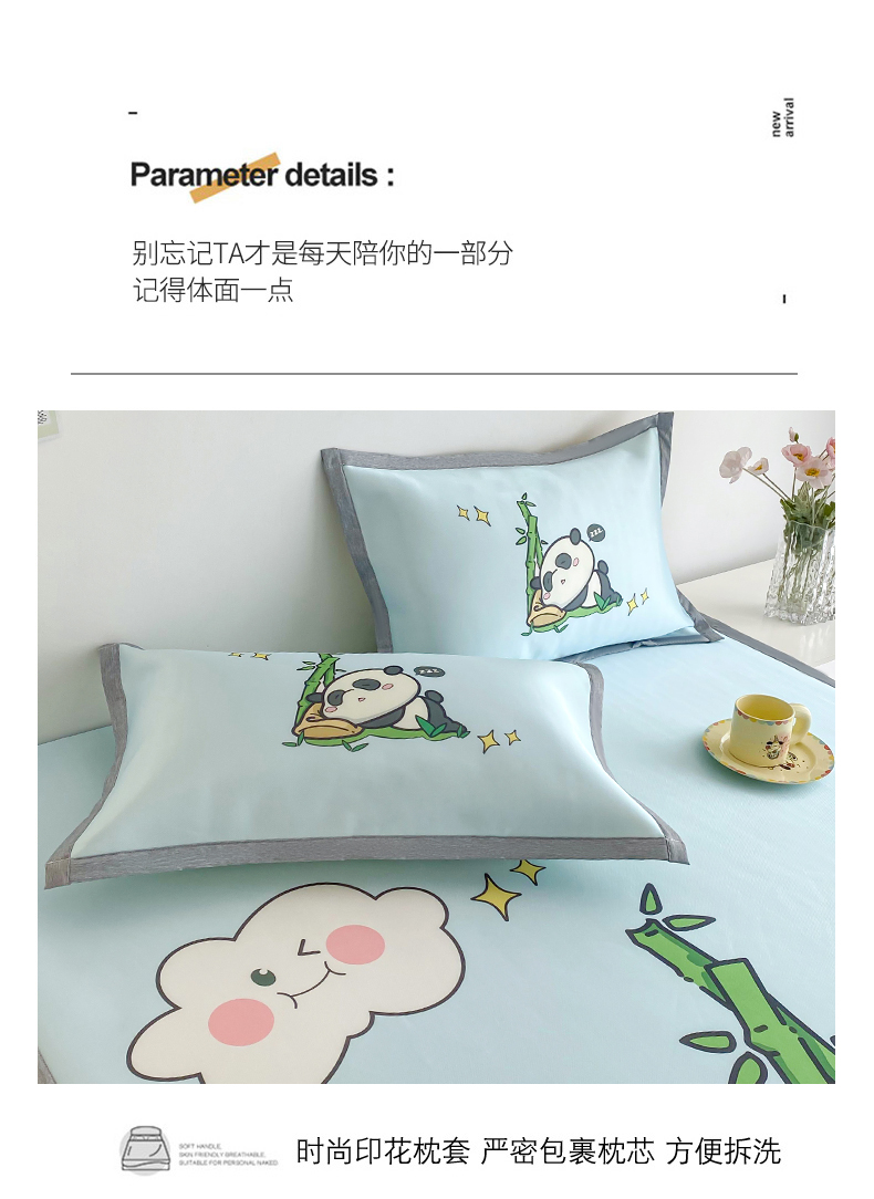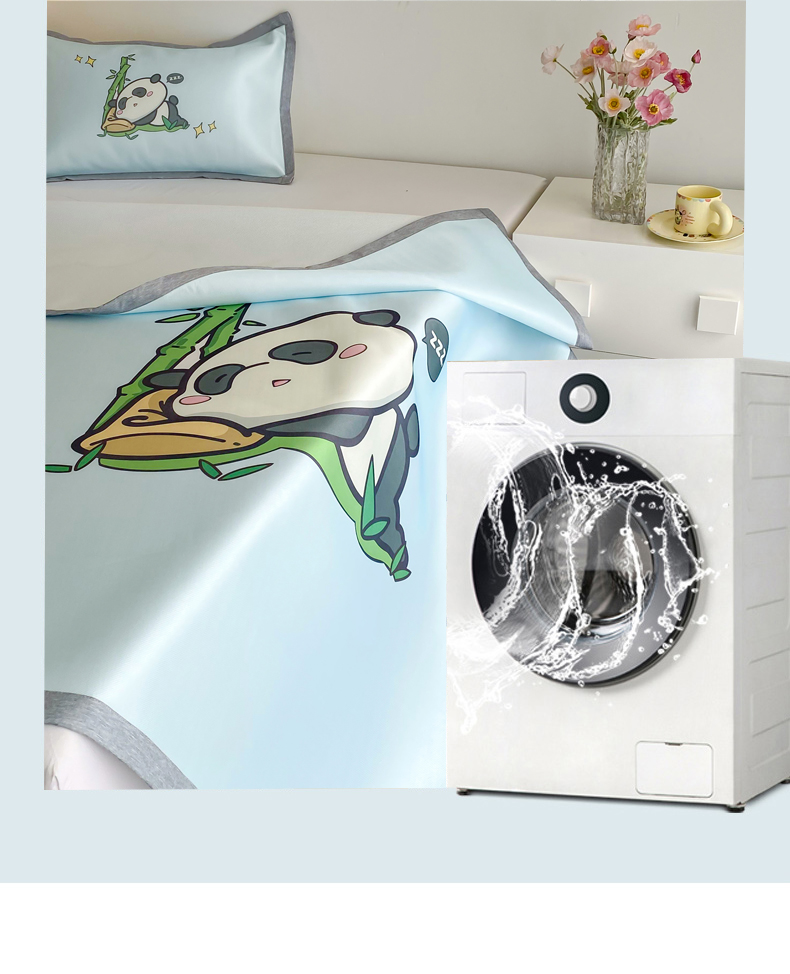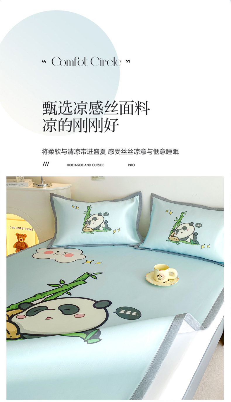商品名称:邵依 2025新款数码印花烫光冰丝席凉席子藤席 绿竹熊猫