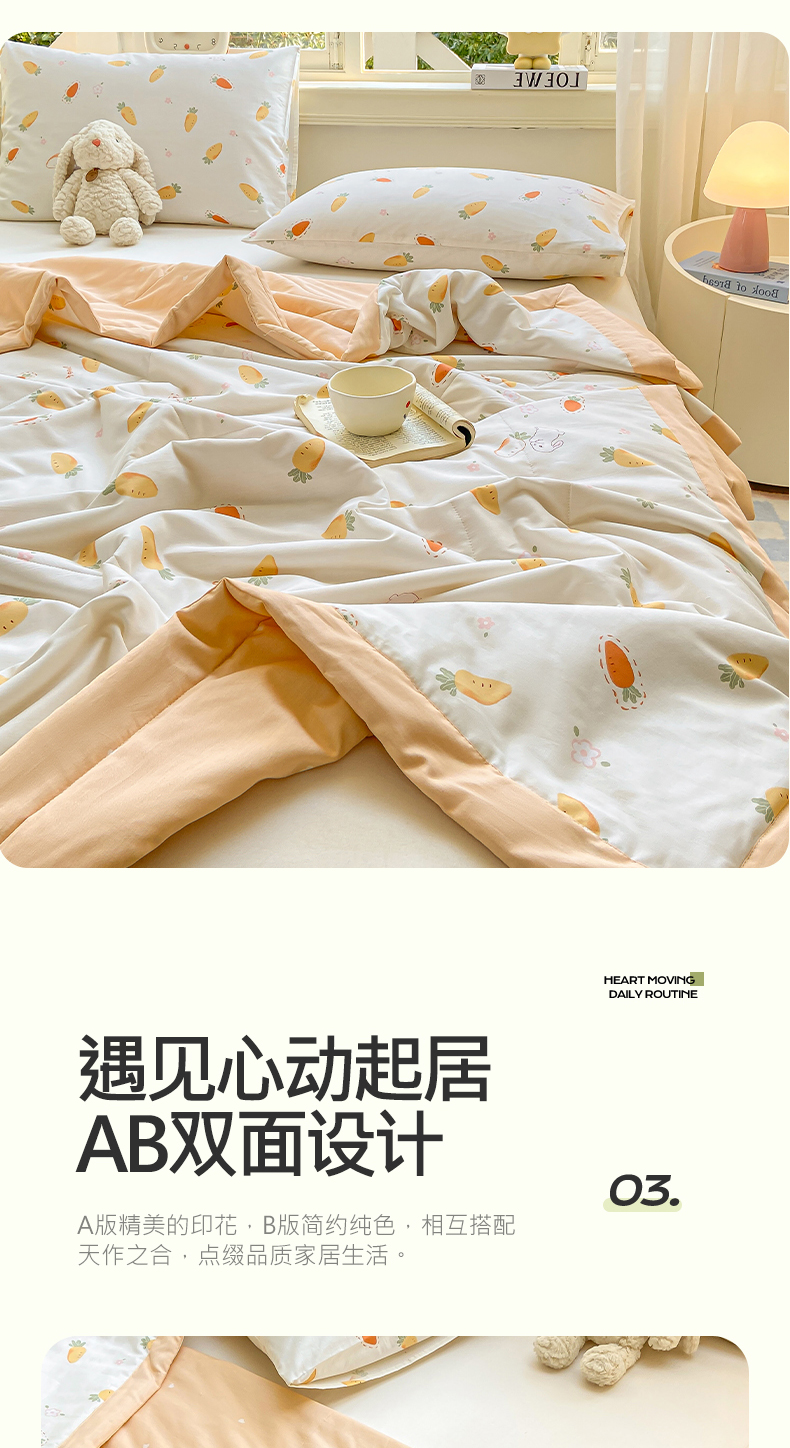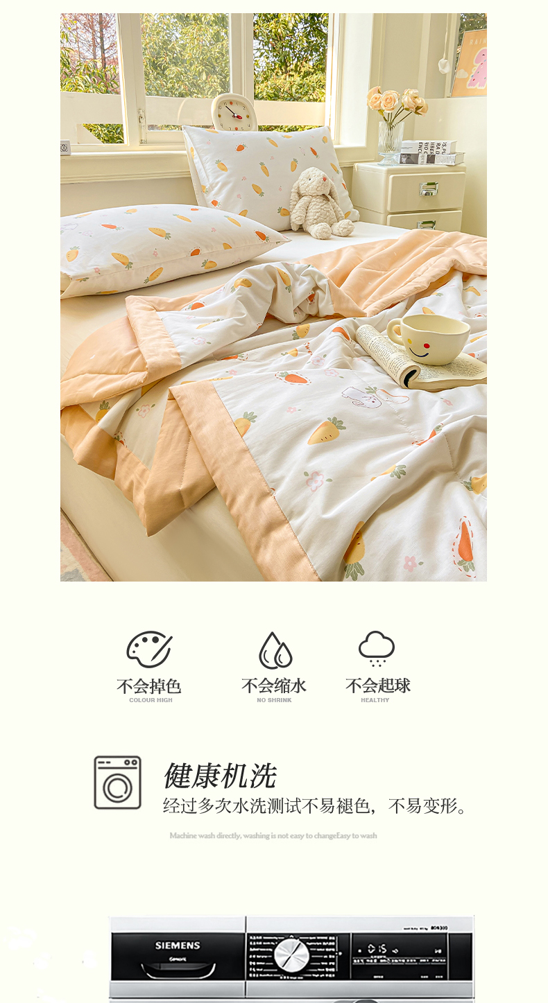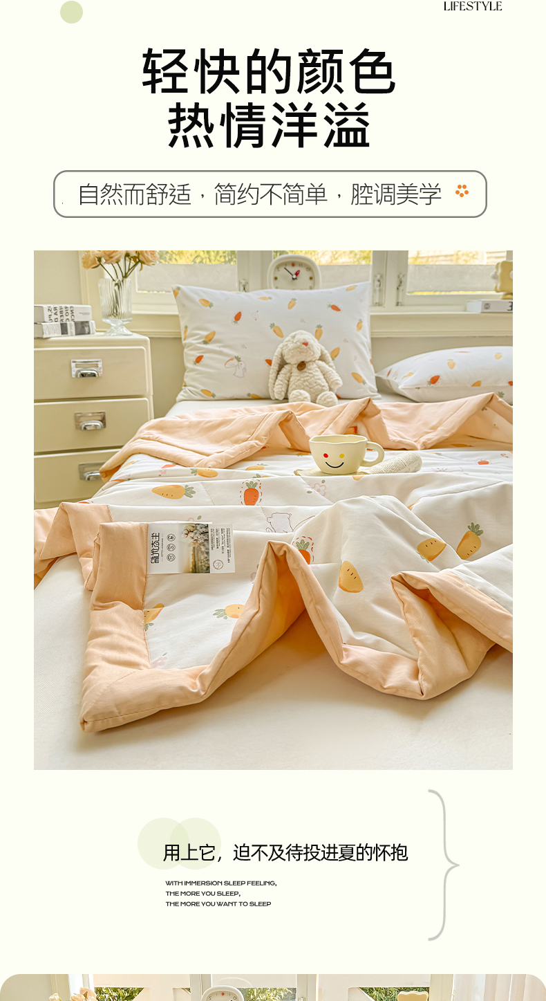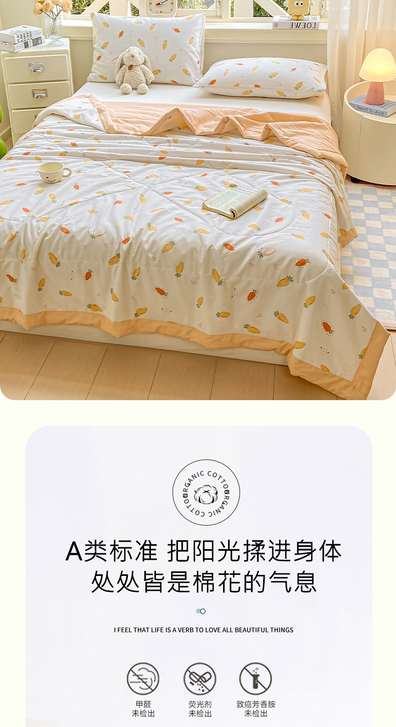 商品名称:憨豆家纺 2025新款双面全棉夏被可机洗小清新纯棉夏被薄被芯空调被子夏凉被 胡萝卜
