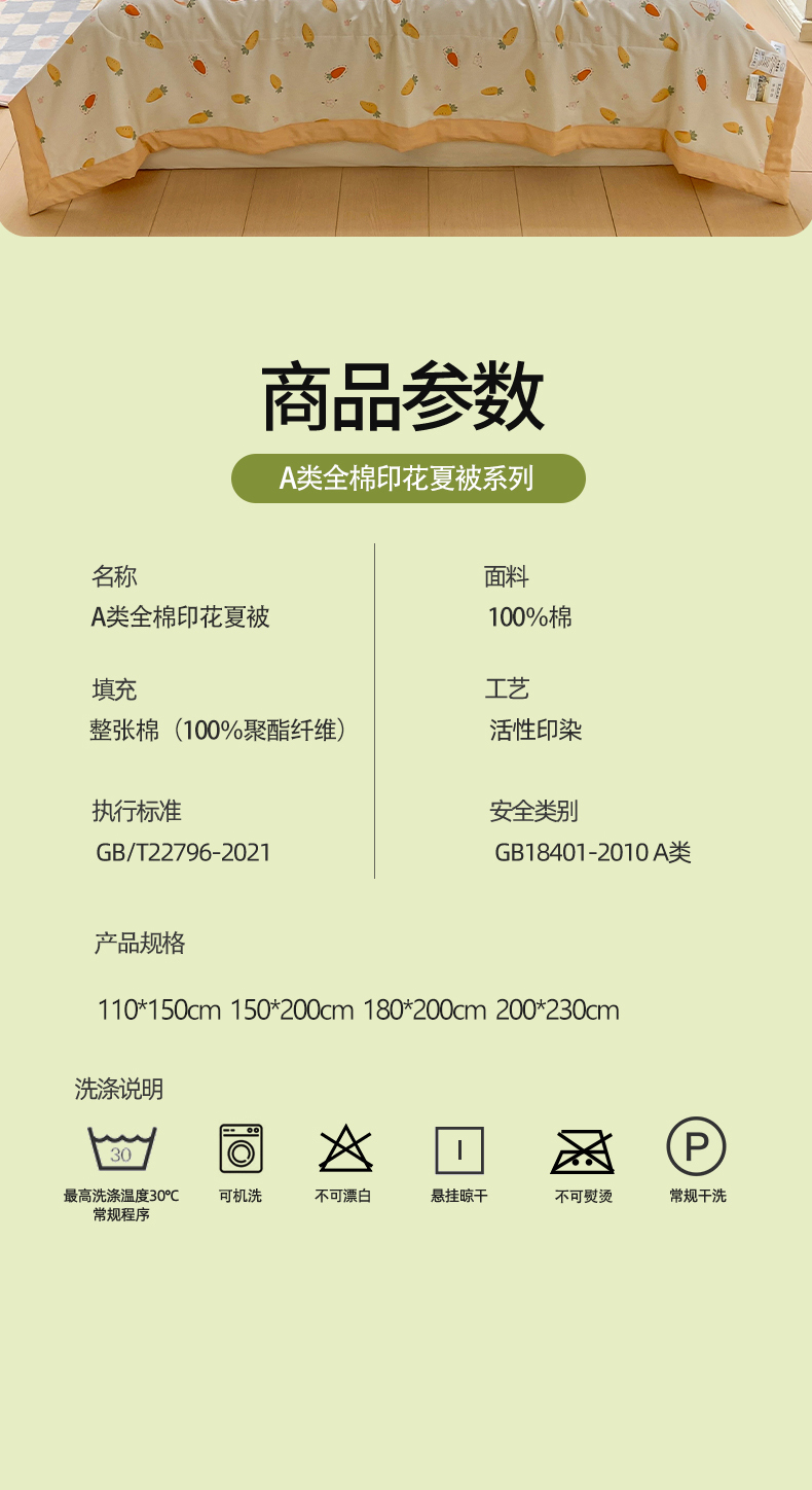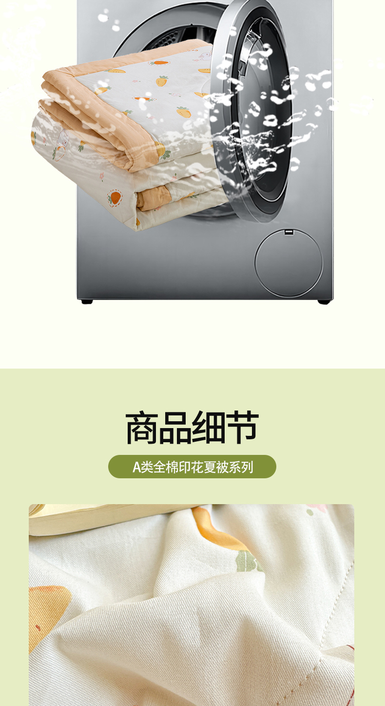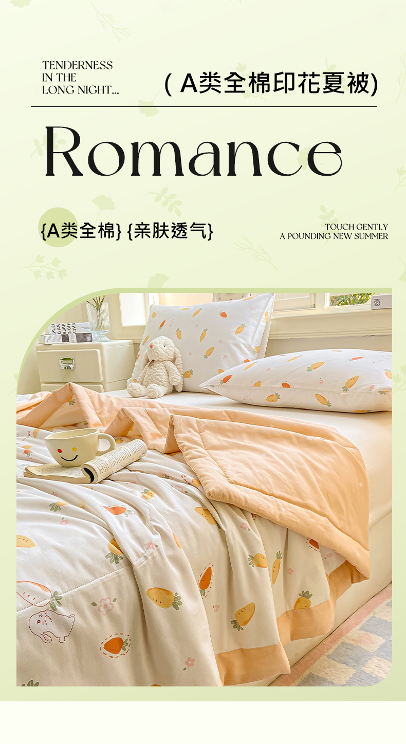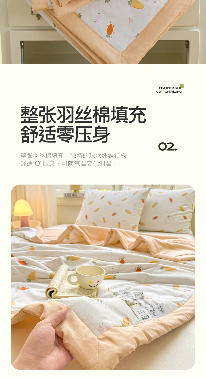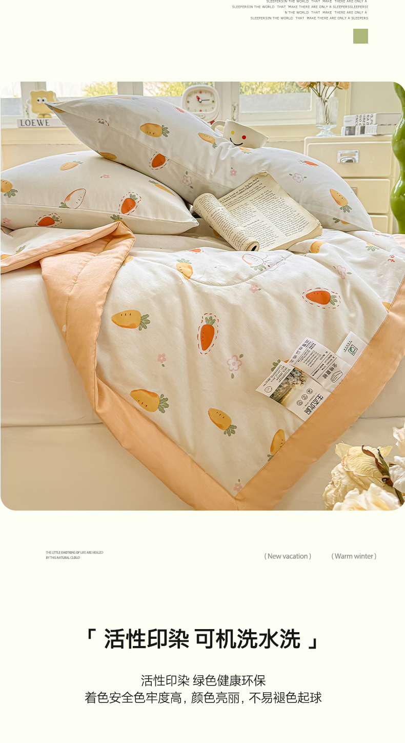 商品名称:憨豆家纺 2025新款双面全棉夏被可机洗小清新纯棉夏被薄被芯空调被子夏凉被 胡萝卜