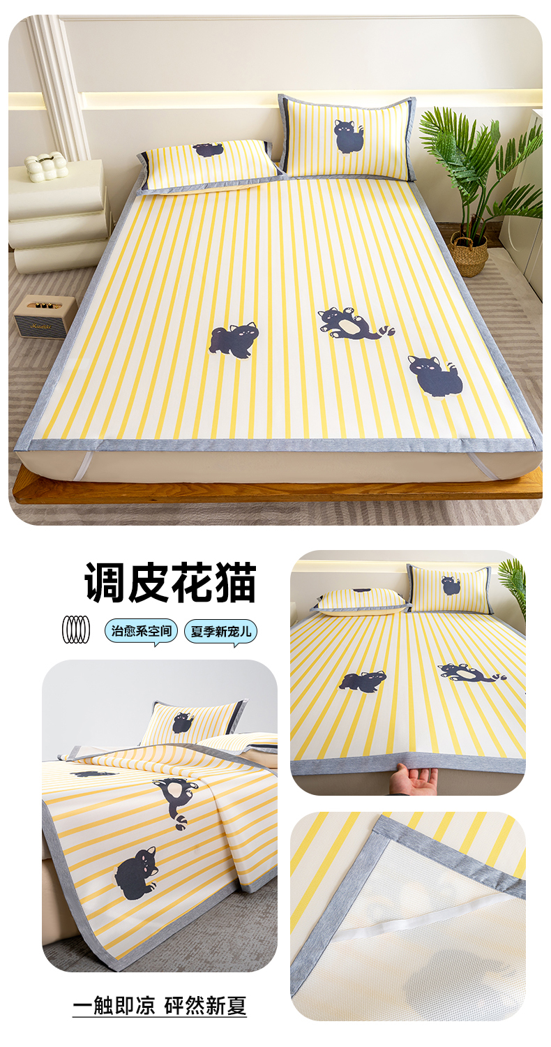 商品名称:邵依家纺 2025新款数码印花烫光冰丝席凉席子藤席场景二 调皮花猫