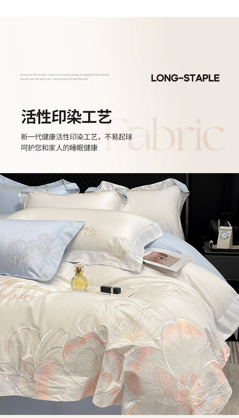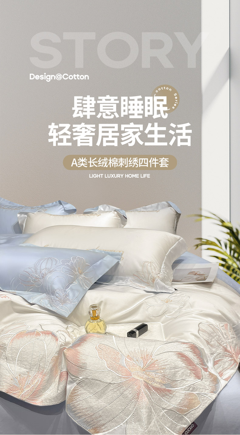 (总) 2025春夏长绒棉四件套纯棉全棉轻奢风床单被套重工刺绣床上用品,芊羽梦-白粉,芊羽梦-茶绿,芊羽梦-黛紫,芊羽梦-慕蓝,芊羽梦-颜粉