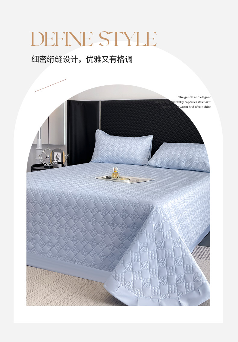 (总)2025新款A类100支长绒棉夹棉床盖三件套全棉纯棉加厚绗绣床单四季款床上用品,茶绿,黛紫,慕蓝,奶玉,颜粉