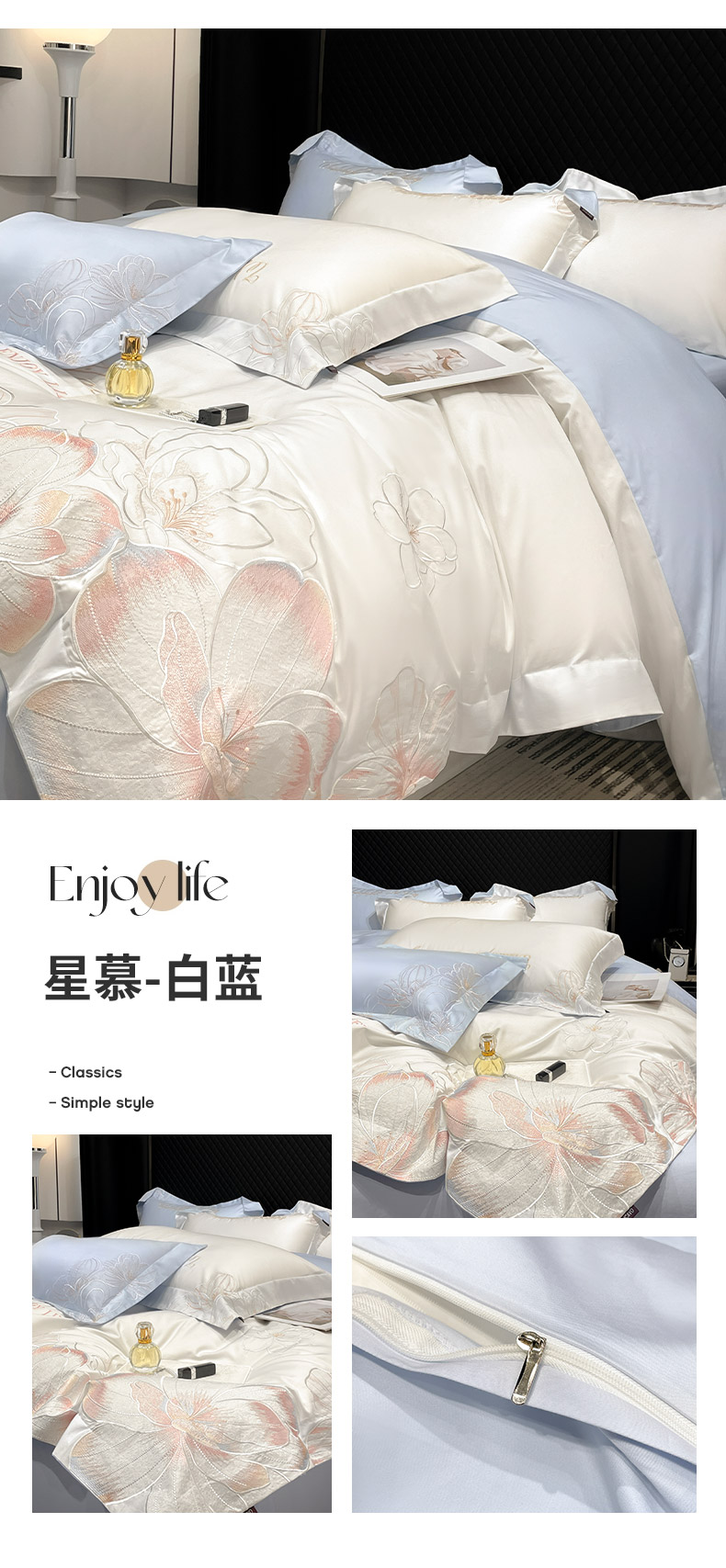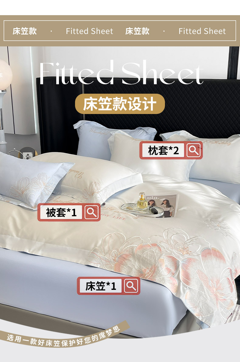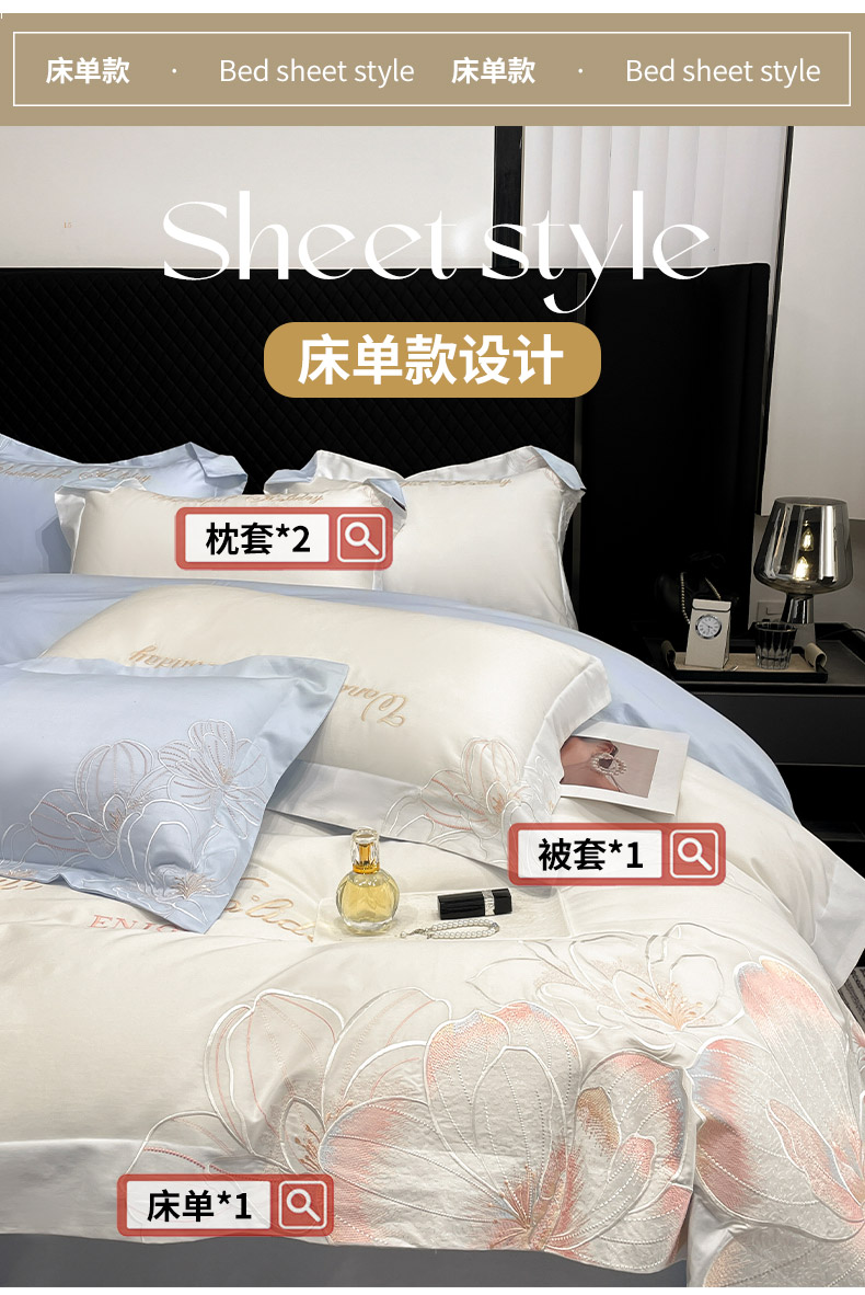 (总)2025新款轻奢风A类100支长绒棉四件套全棉纯棉重工刺绣床单床笠夹棉床笠床盖款高端床上用品-星慕,白粉,白蓝,茶绿,黛紫,慕蓝,奶玉,颜粉