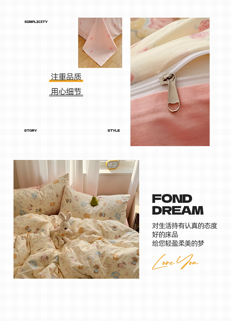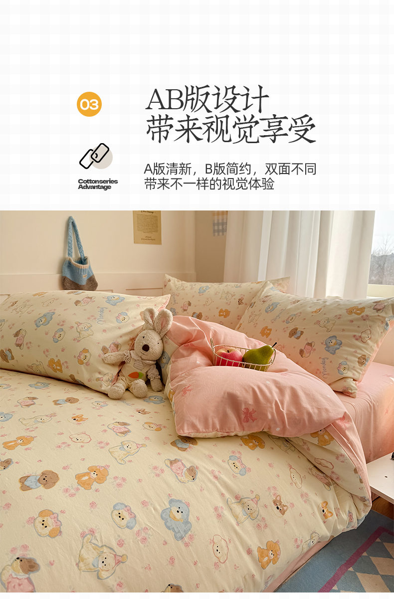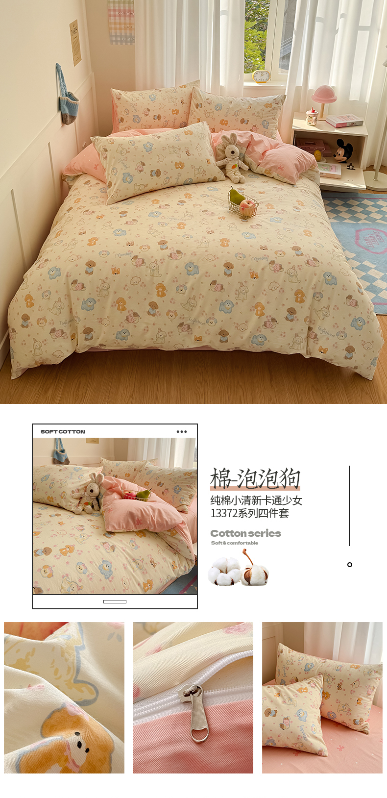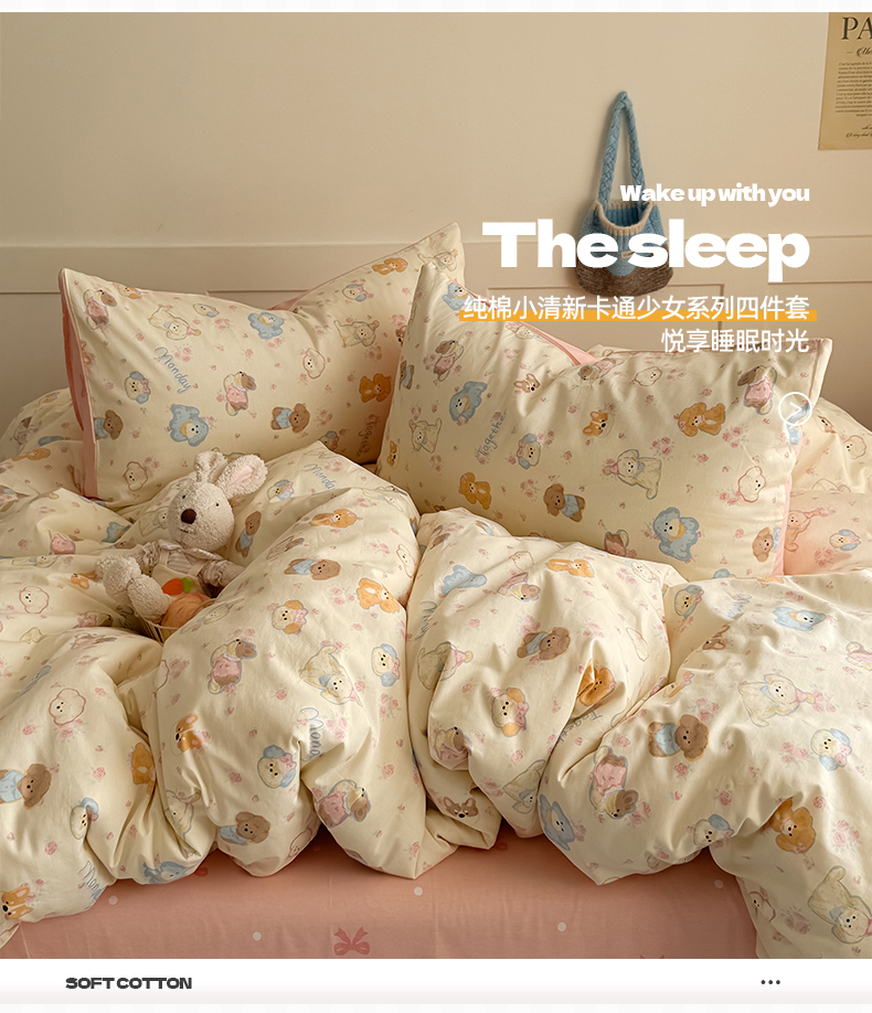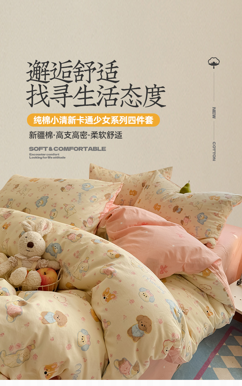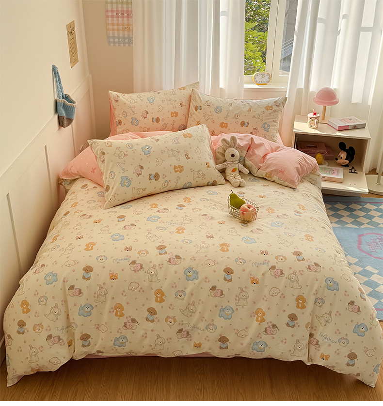 当前位置: 91家纺网 > 商品网购 > 床品套件 > 四件套 > 全棉普通四件套 > 桃子家居 2025新款纯棉小清新13372卡通可爱少女系列四件套 棉-泡泡狗
