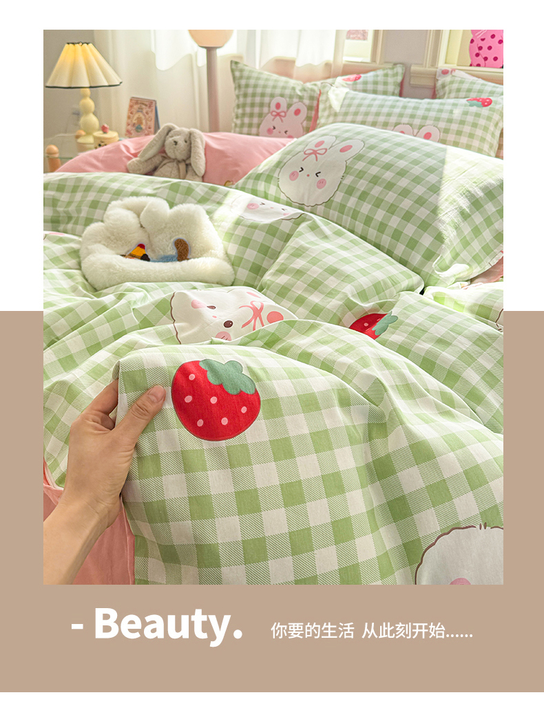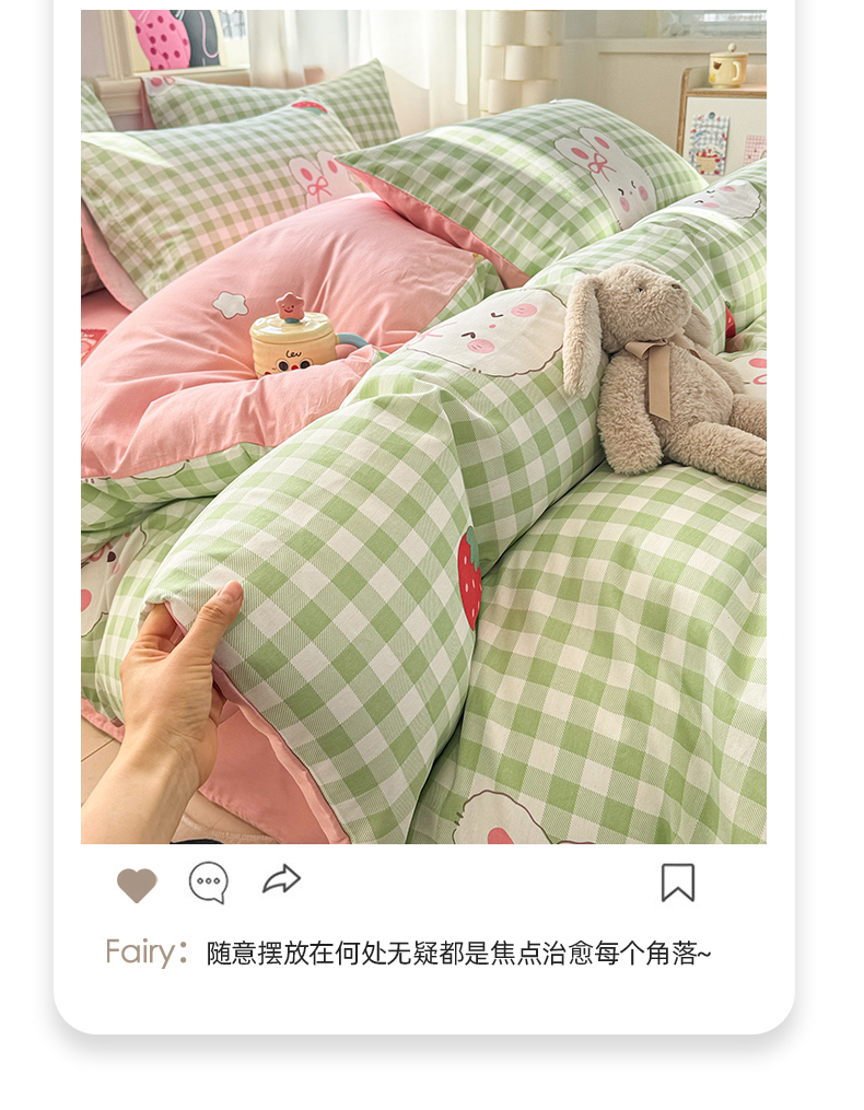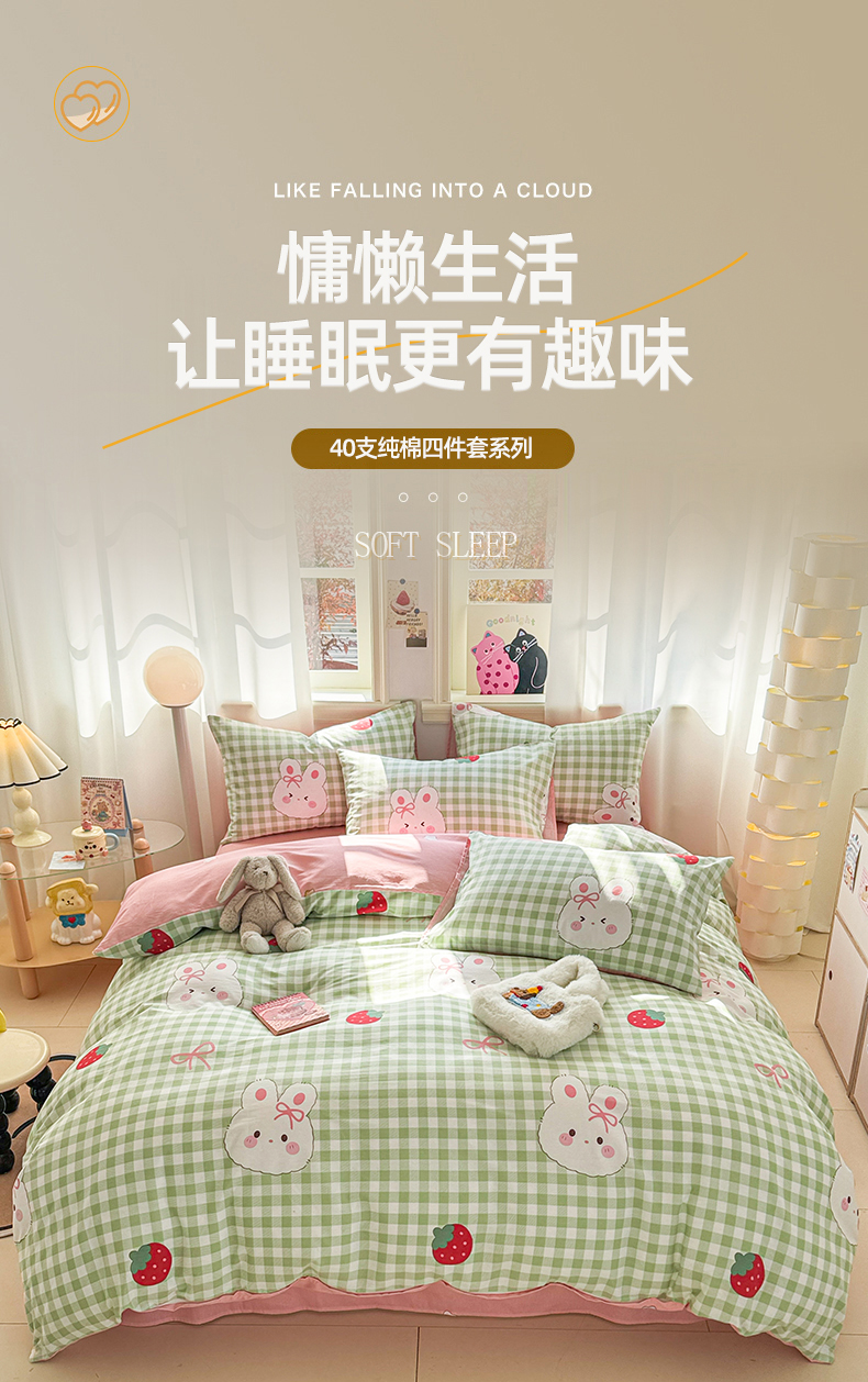 简宜家居(朝初家纺) 2025新款40支13070纯棉四件套 格子兔-绿