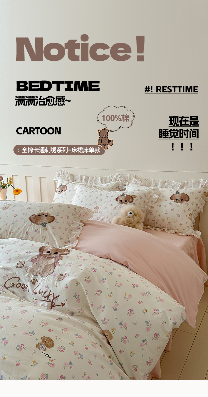 商品名称:卡巴伦家纺 2025新款床裙款卡通刺绣款四件套【全网控价(折后券后)不低于标准218元】 花涧梦